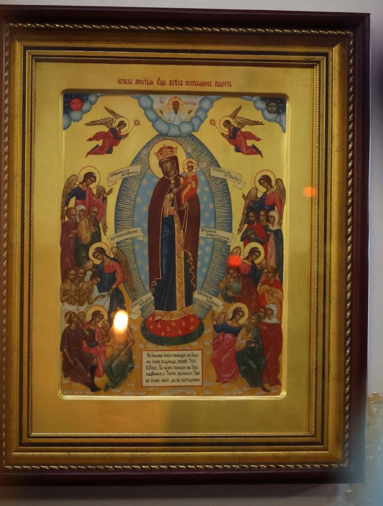 «На иконе «Всех скорбящих Радость» Матерь Божия изображается в полный рост, иногда с Богомладенцем, как на московском Ее образе, иногда же без Богомладенца, как на питерском образе. Но рядом с Пречистой Богородицей всегда изображены люди, находящиеся в болезнях, скорбях, в отчаянии, взывающие к Ней. Рядом же с людьми изображаются ангелы, указующие на стоящую на Небесах Владычицу, Которая является Заступницей усердной рода христианского, – отметил владыка. – Мы с вами, дорогие братья и сестры, ежедневно взывая к Пречистой Божией Матери, не оставим надежду на милость Божию, которая будет явлена нам – каждому в отдельности и в целом для нашей страны – во избавление от горя и скорбей, от болезней. Мы надеемся, что Господь дарует, по молитвам Пресвятой Богородицы, мир в нашей стране, мир во всем мире, а нам всем ниспошлет Свою милость, прощение, укрепление на духовном пути, чистоту сердца, украсит наши души добродетелями и благодатью Всесвятого и Животворящего Духа и дарует нам возможность достойно пройти этот жизненный путь и наследовать вечное блаженство со всеми святыми в Царствии Небесном».