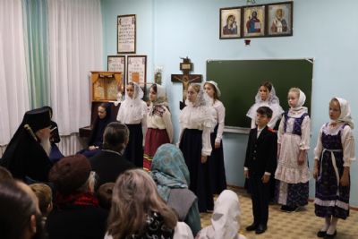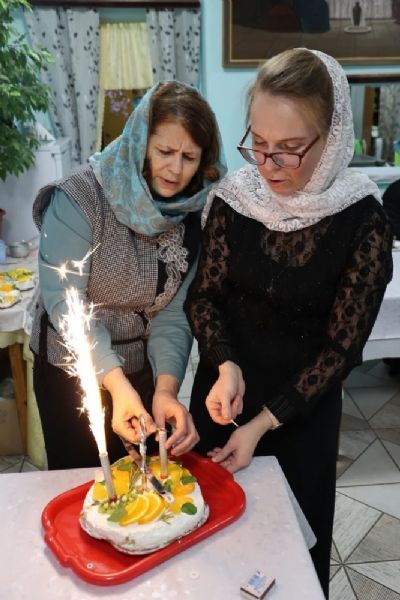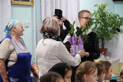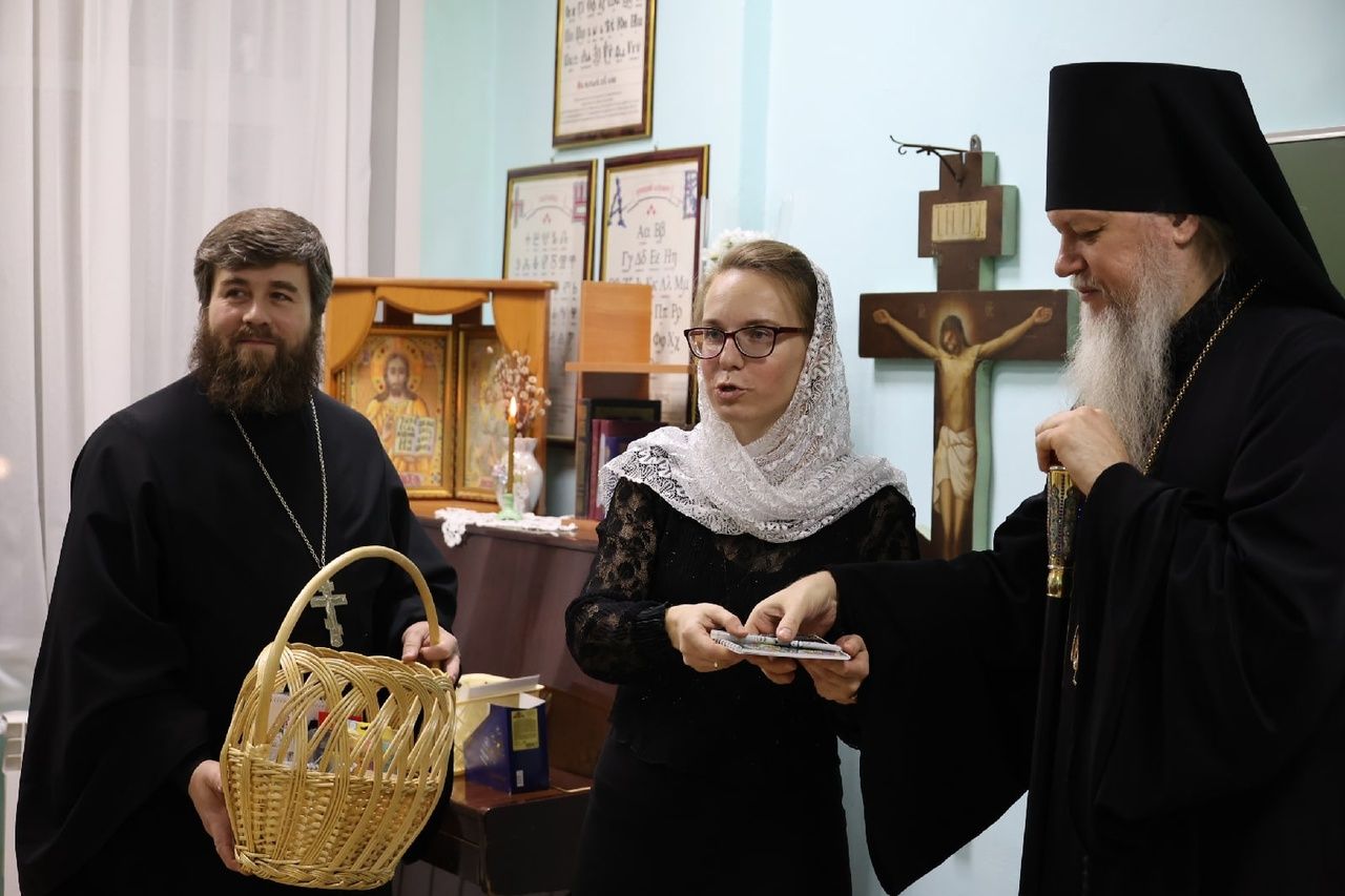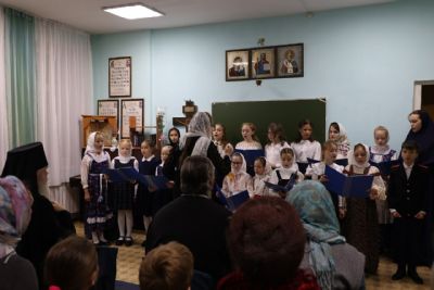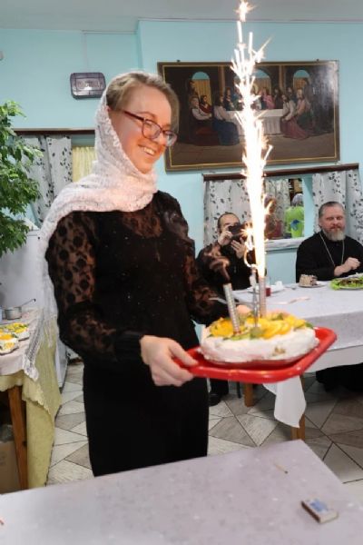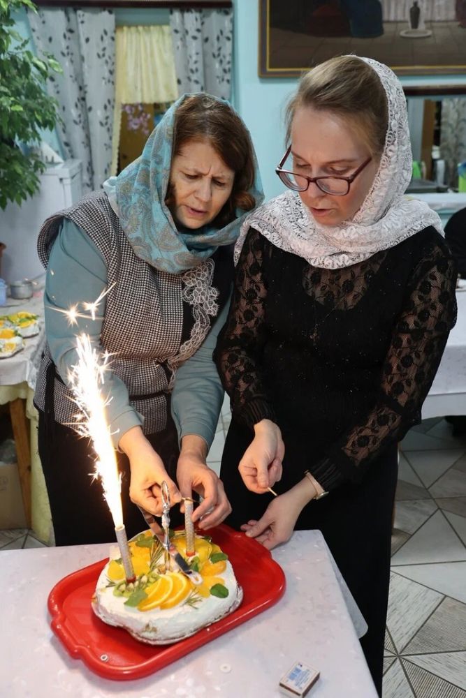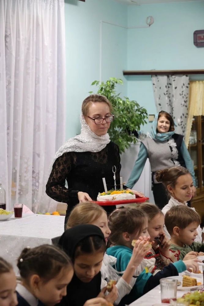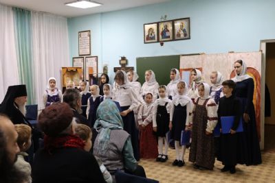 Затем владыка Феофан благословил новых певчих на пение в детском хоре и вручил памятные подарки всем участникам концерта. Завершился праздник совместным чаепитием с именинным тортом. Дружеская атмосфера радости, единения и любви царила на протяжении всего вечера.