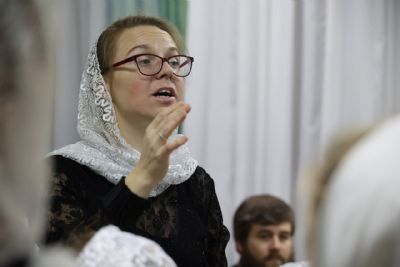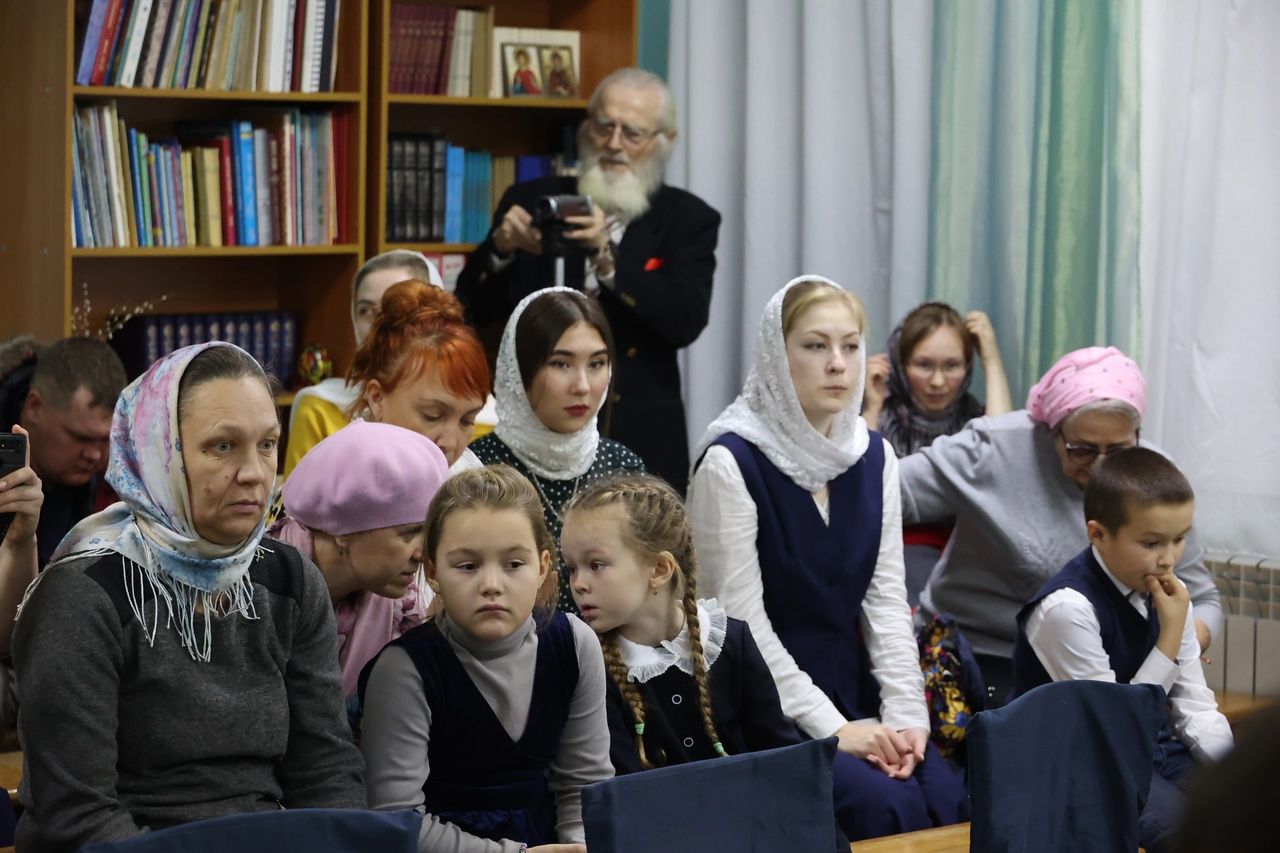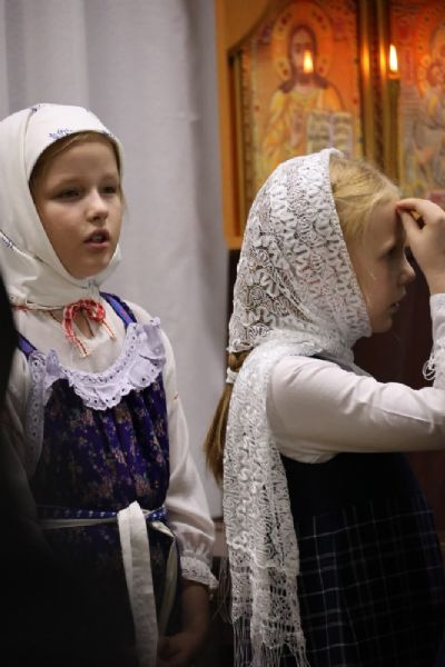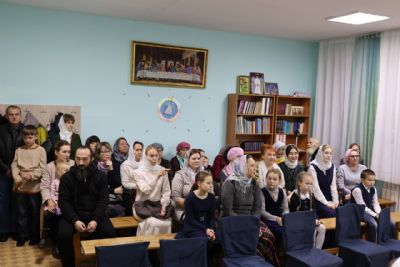 Вечер был посвящен житию преподобного Серафима Саровского, на эту тему дети подготовили выставку рисунков и стенгазету о поездке хора в Дивеево этим летом.