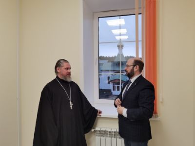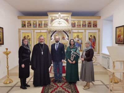 Затем была проведена экскурсия по Никольскому кафедральному собору г. Волжска, после чего участники семинара посетили новое здание Волжского епархиального управления. В этом здании расположены помещения епархиальных структур и домовый храм в честь иконы Божией Матери «Скоропослушница», освящение которого совершили 10 ноября митрополит Йошкар-Олинский и Марийский Иоанн и епископ Волжский и Сернурский Феофан.