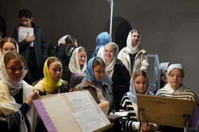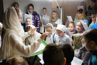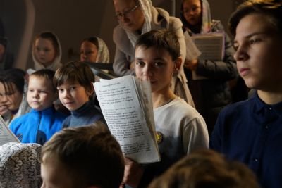 Песнопения исполняли старший и младший составы детско-юношеского хора «Благовест» под управлением регентов Татьяны Черновой и Софии Андреевой. Часть богослужебных песнопений исполнял хор духовенства Йошкар-Олинской епархии под управлением иерея Евгения Самойлова.