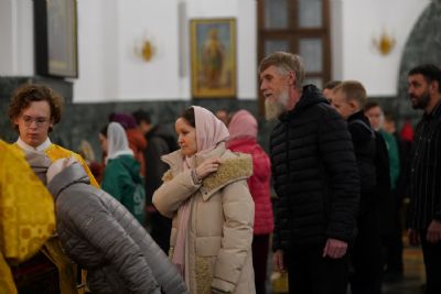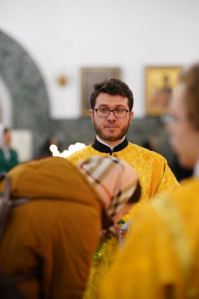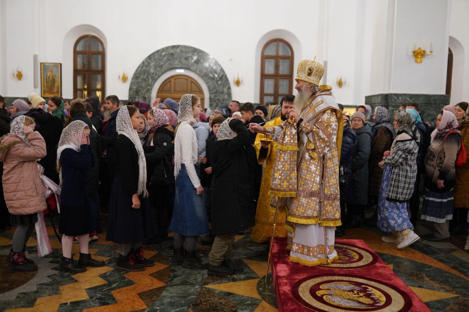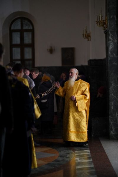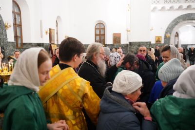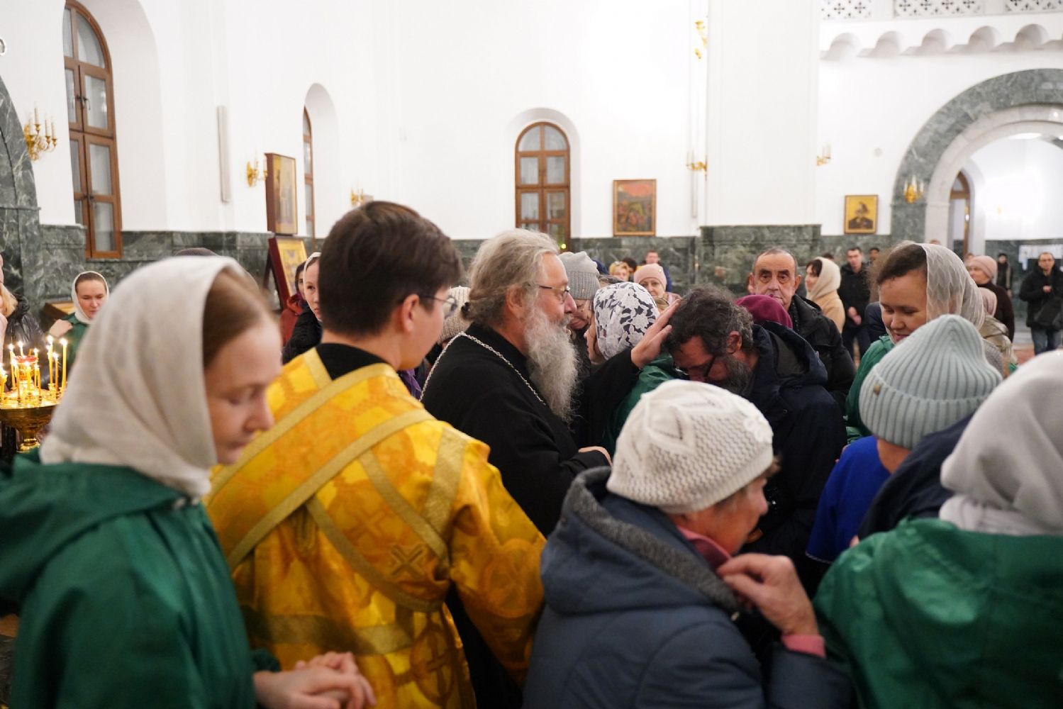 На утрени после чтения Евангелия митрополит Иоанн и иеромонах Серафим помазывали верующих освященным елеем.