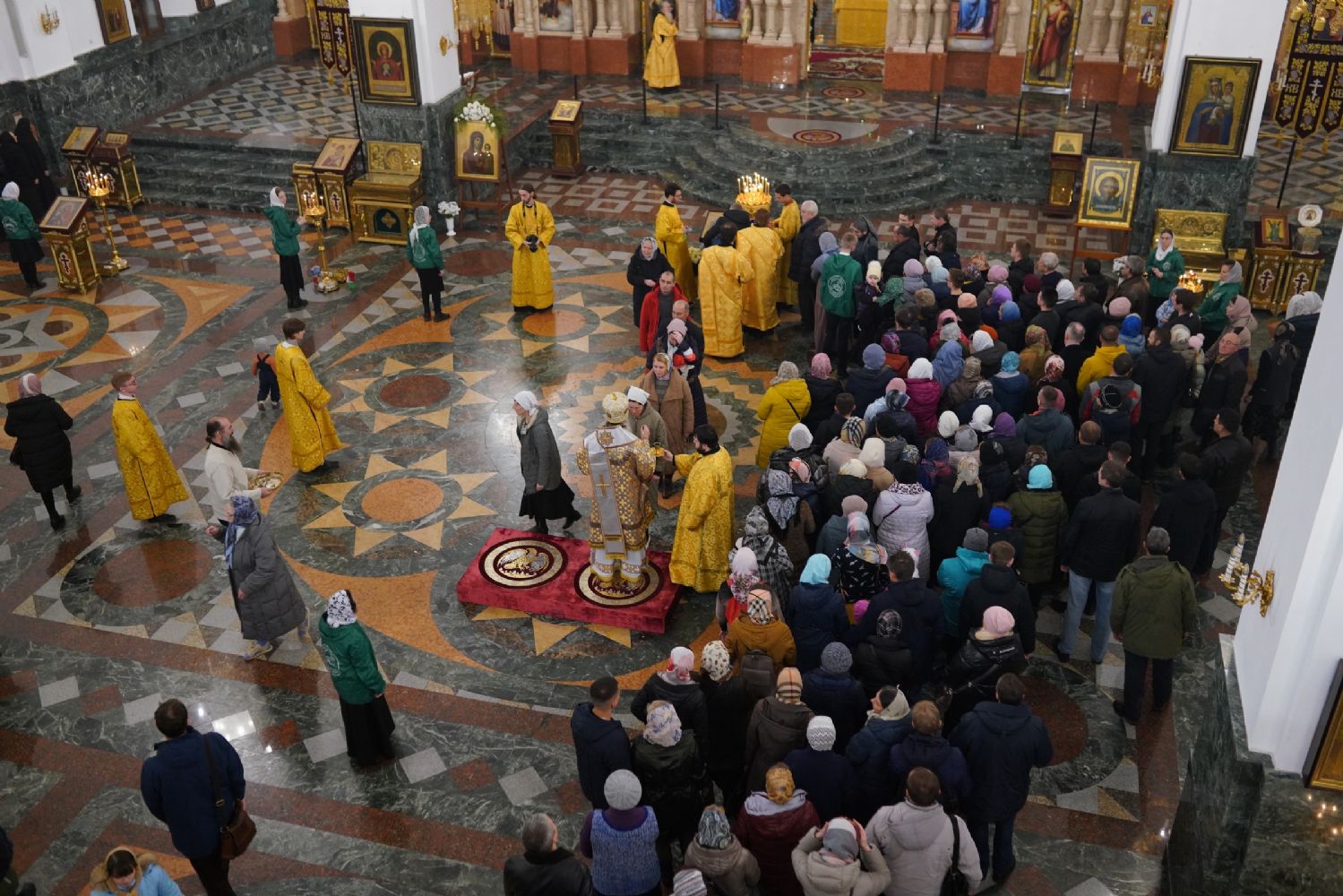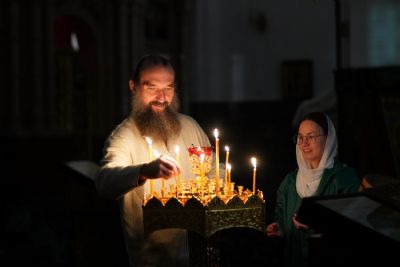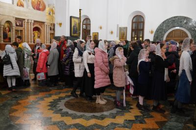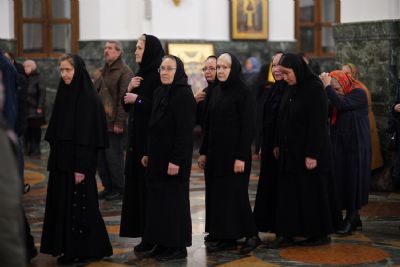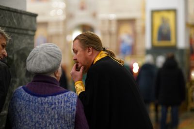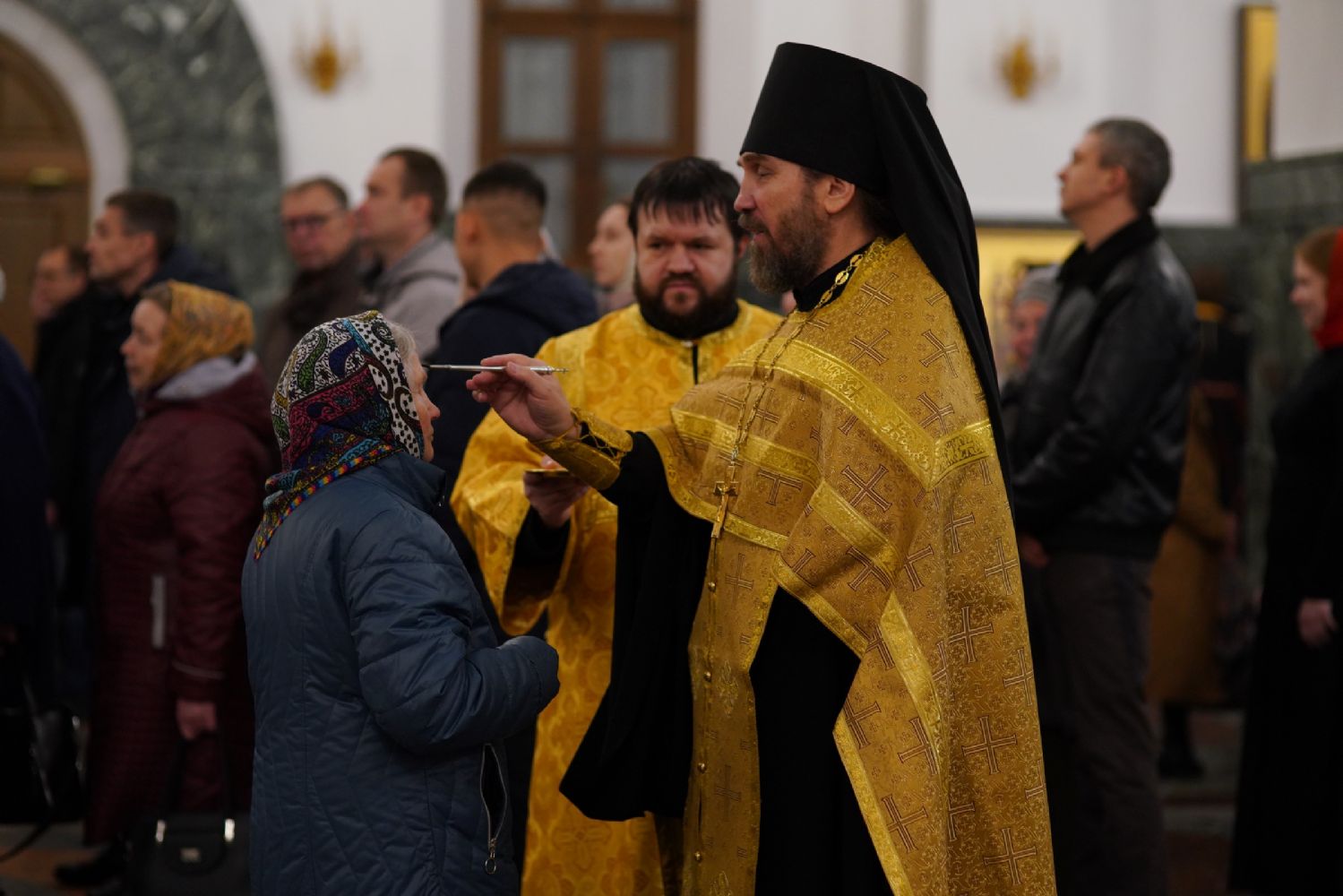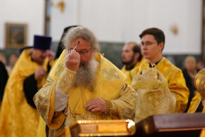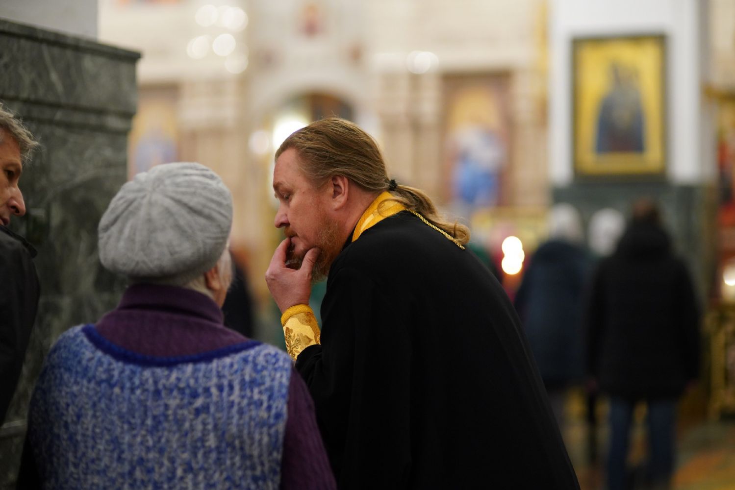 На утрени после чтения Евангелия митрополит Иоанн и иеромонах Серафим помазывали верующих освященным елеем.