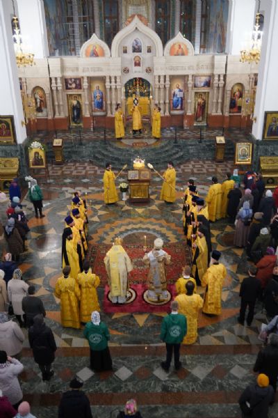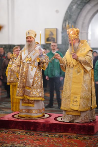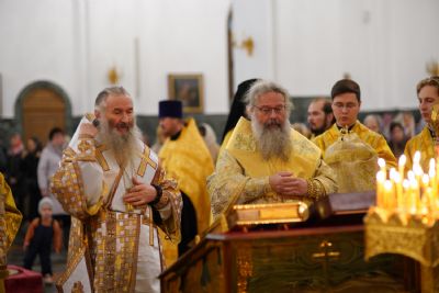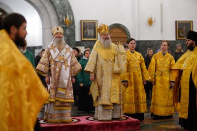 12 ноября вечером, накануне Недели 22-й по Пятидесятнице, всенощное бдение в Благовещенском кафедральном соборе г. Йошкар-Олы возглавили митрополит Йошкар-Олинский и Марийский Иоанн и митрополит Казанский и Татарстанский Кирилл.