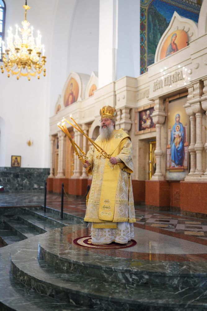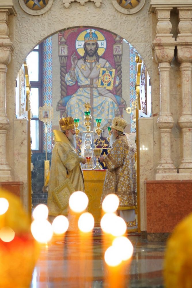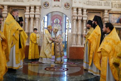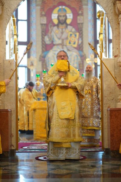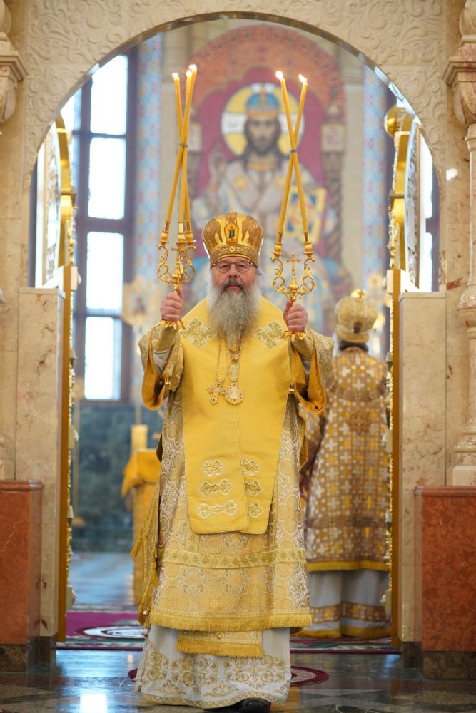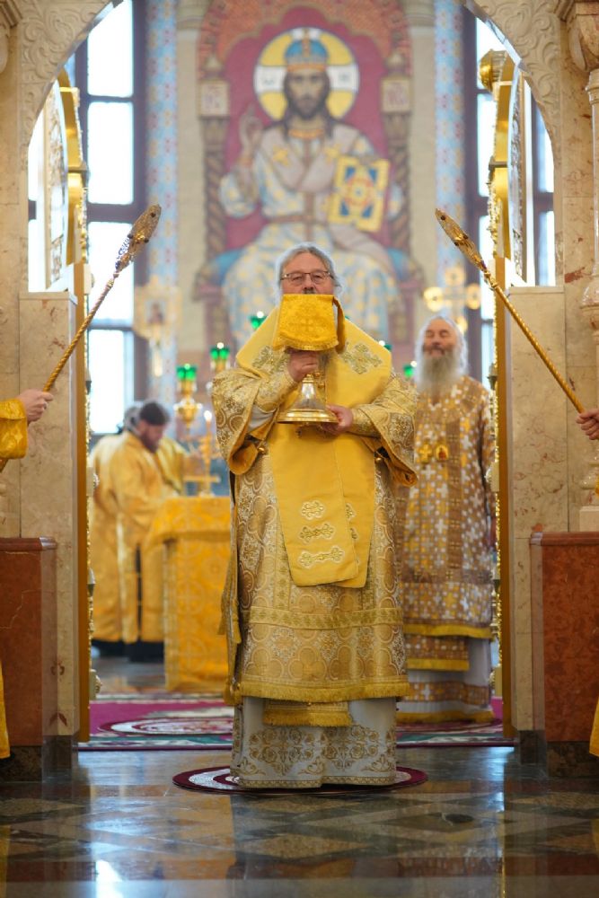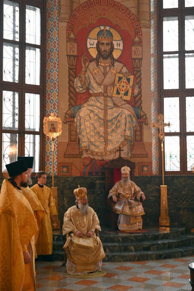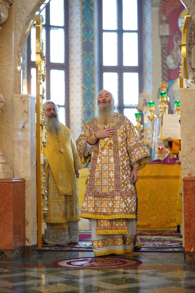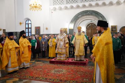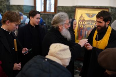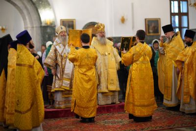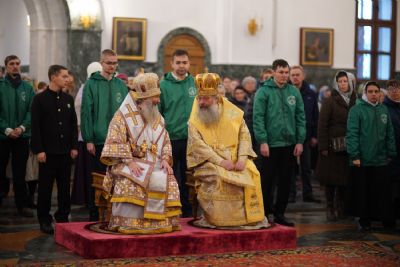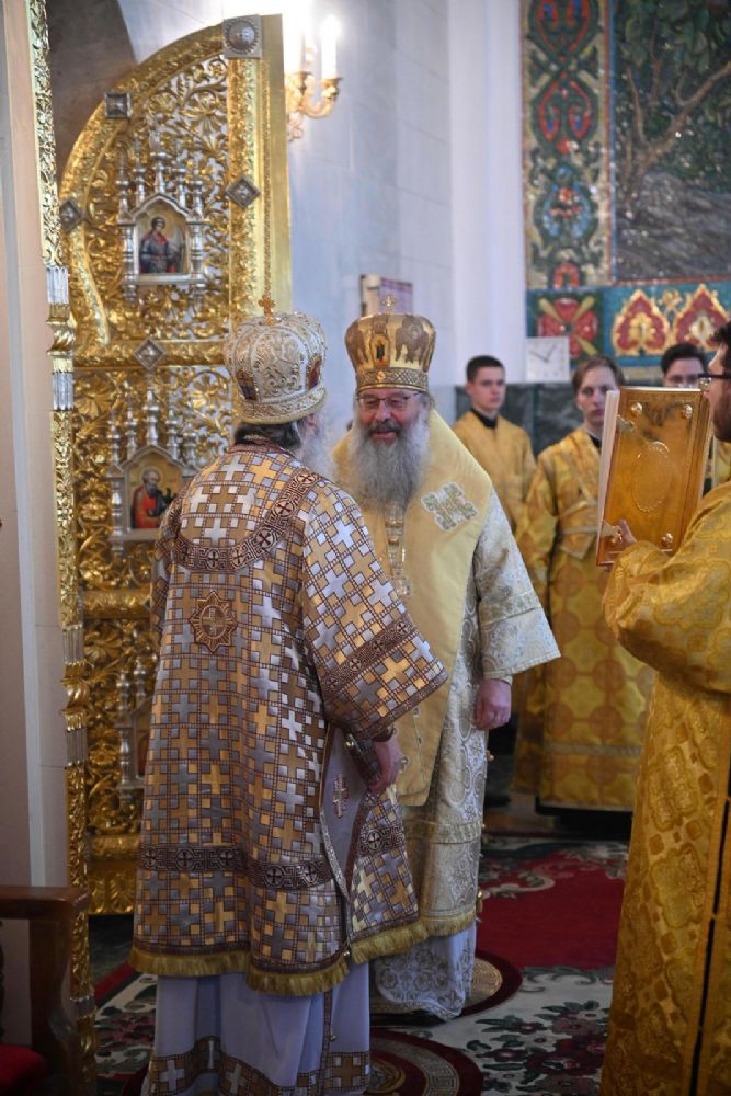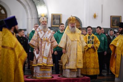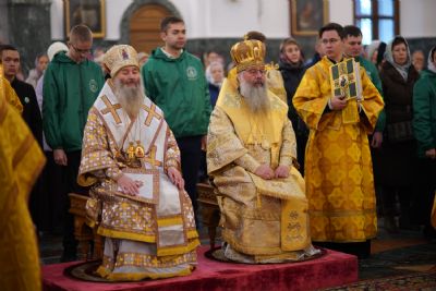 В завершение богослужения митрополит Иоанн и митрополит Кирилл преподали верующим благословение.
