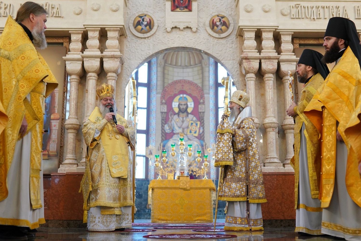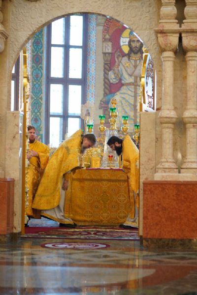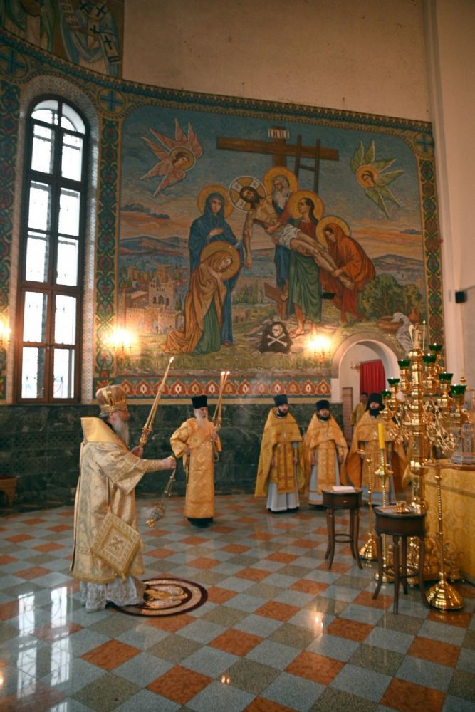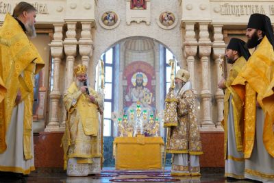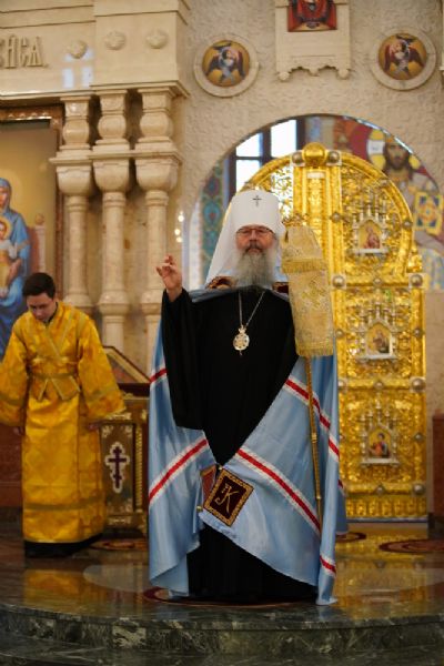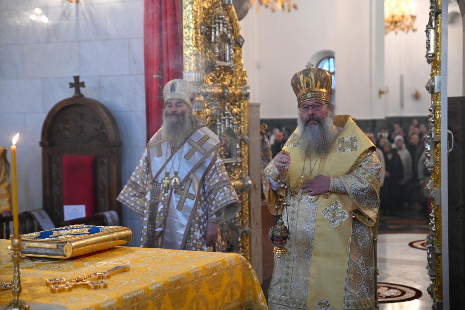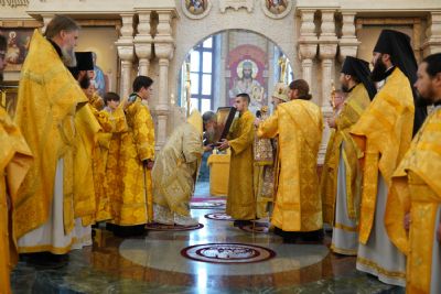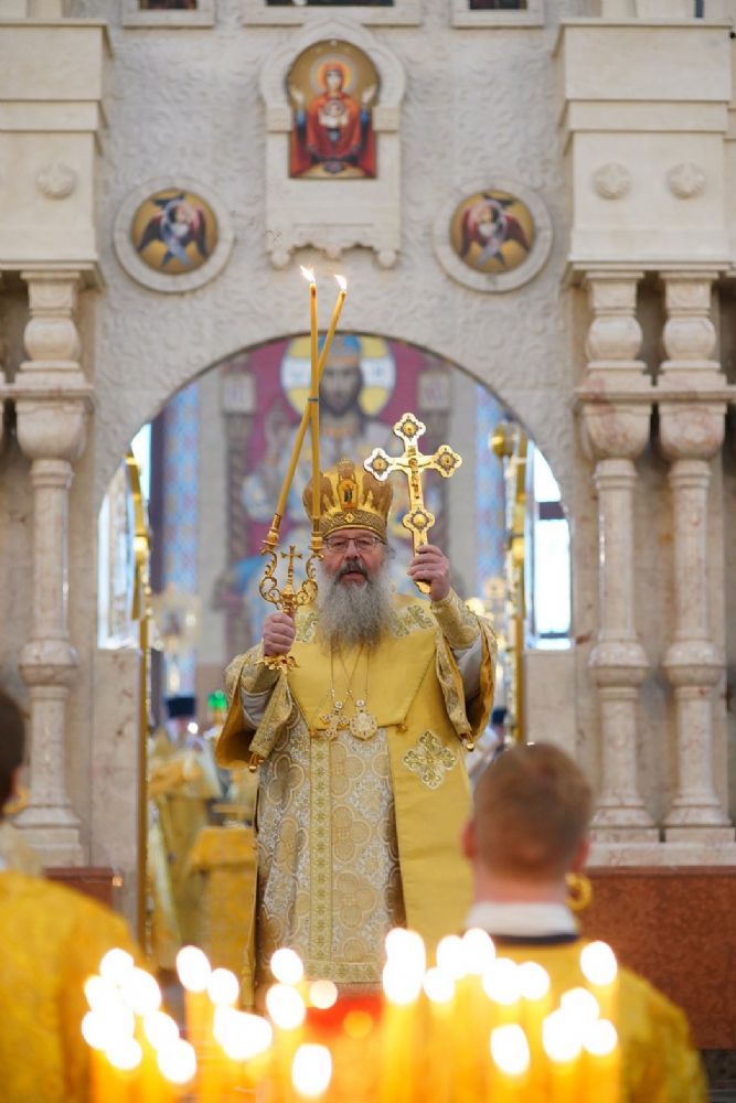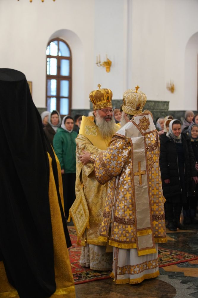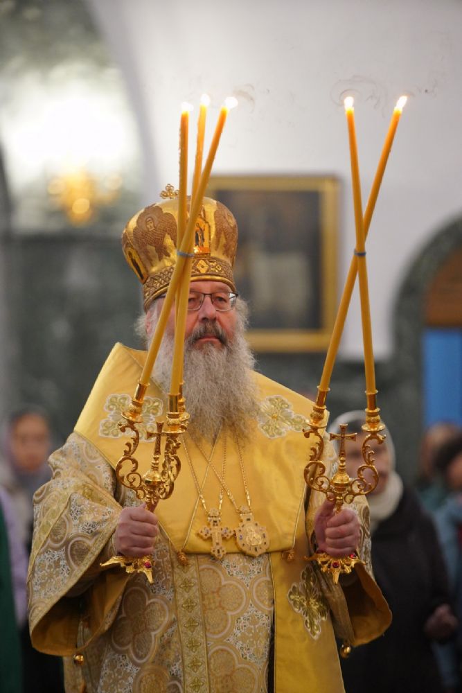 В завершение богослужения митрополит Иоанн и митрополит Кирилл преподали верующим благословение.