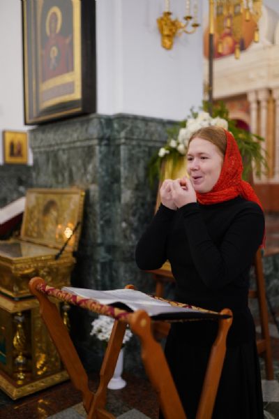 Песнопения исполняли старший и младший составы детско-юношеского хора «Благовест» под управлением регентов Татьяны Черновой и Софии Андреевой. Часть богослужебных песнопений исполнял хор духовенства Йошкар-Олинской епархии под управлением иерея Евгения Самойлова.