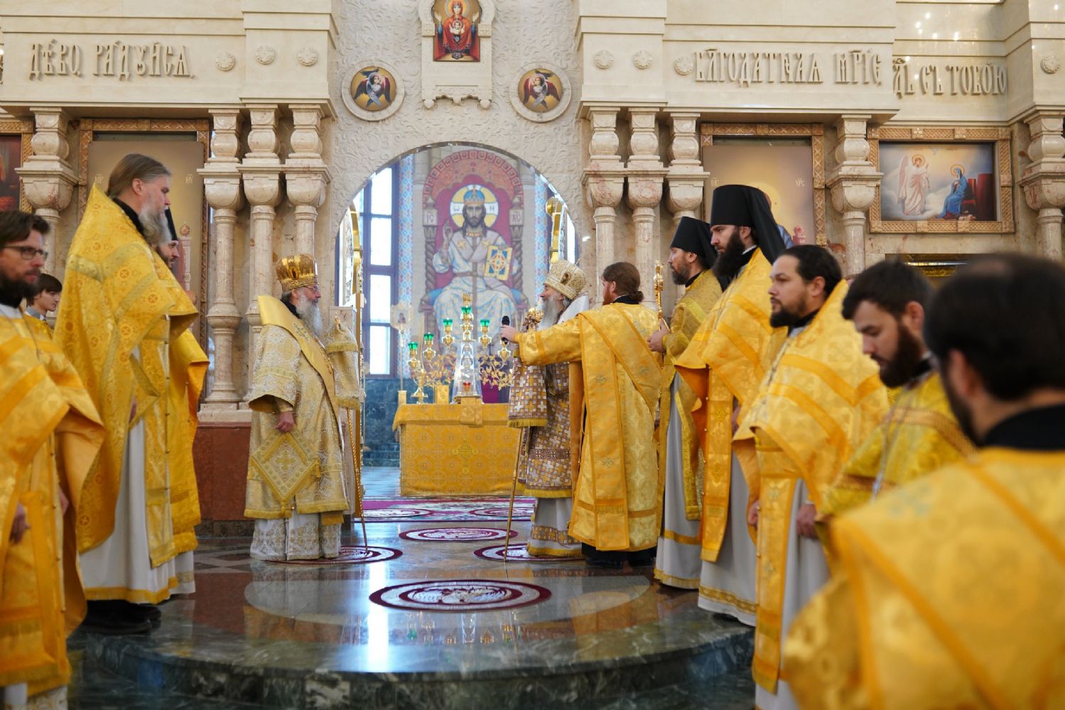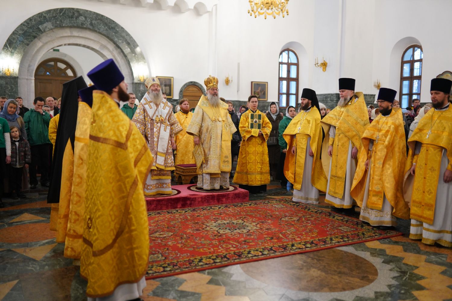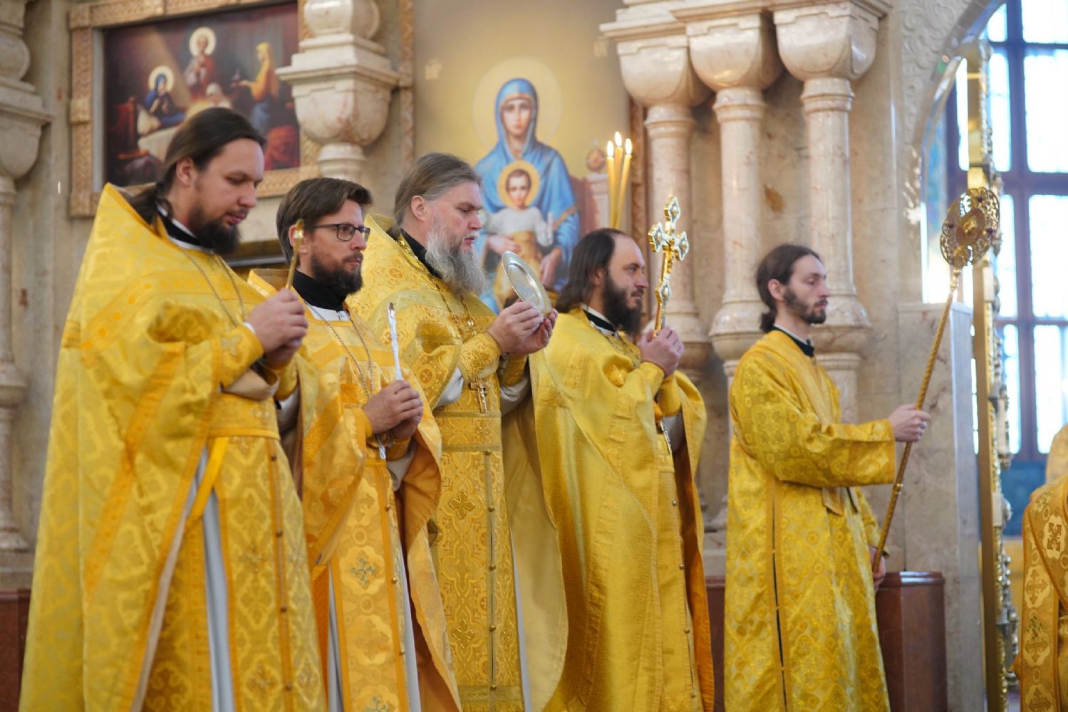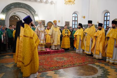 13 ноября, в Неделю 22-ю по Пятидесятнице, Божественную литургию в Благовещенском кафедральном соборе г. Йошкар-Олы возглавили митрополит Йошкар-Олинский и Марийский Иоанн и митрополит Казанский и Татарстанский Кирилл.