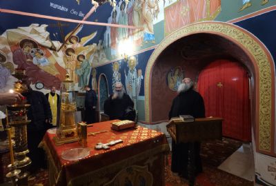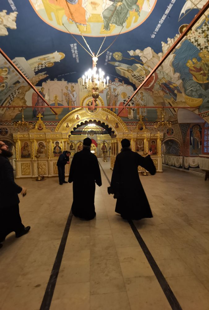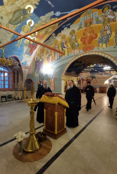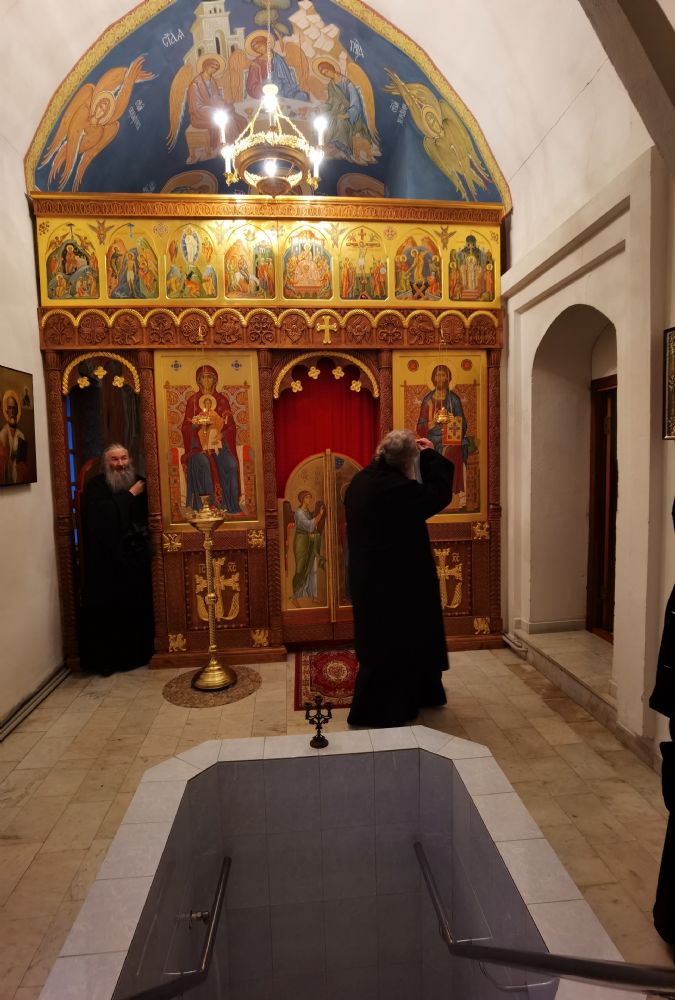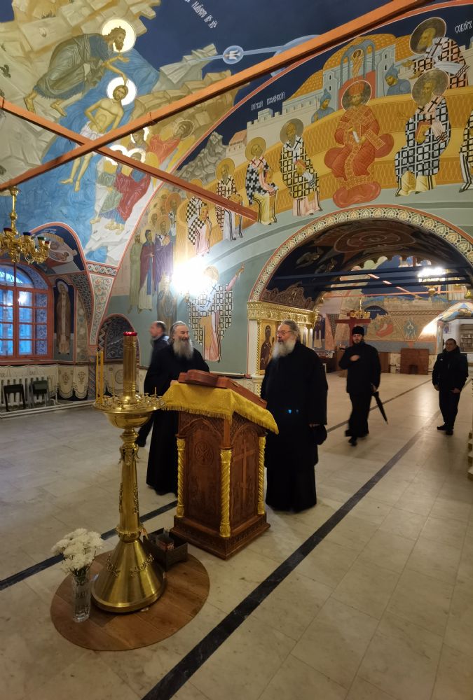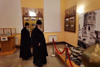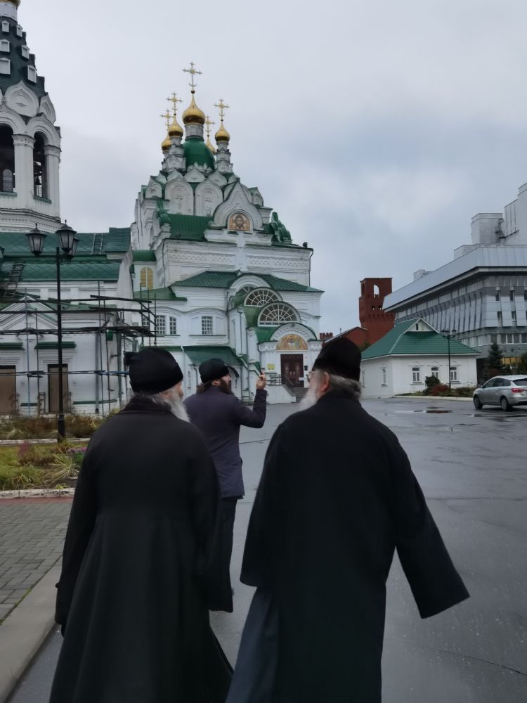 Перед началом экскурсии по достопримечательностям центра Йошкар-Олы митрополит Кирилл встретился в Йошкар-Олинском епархиальном управлении с митрополитом Йошкар-Олинским и Марийским Иоанном.