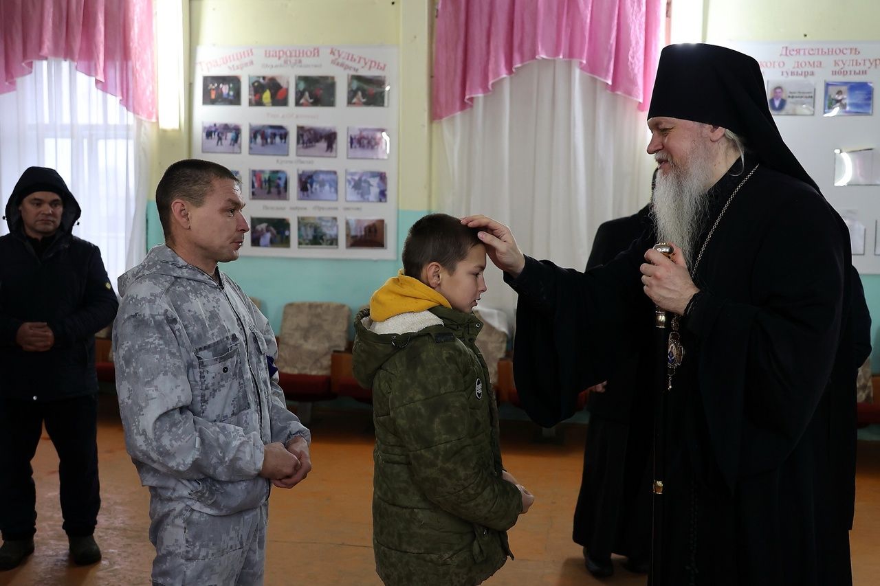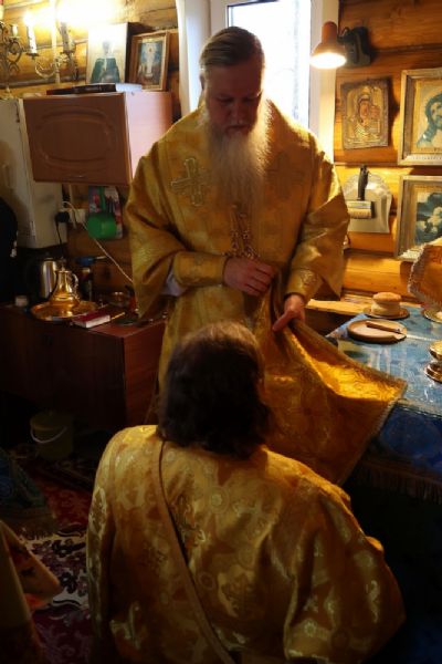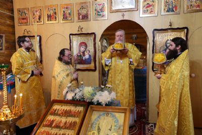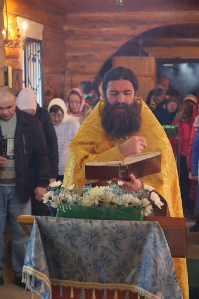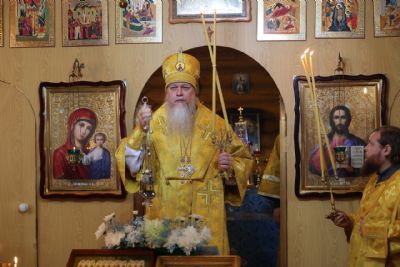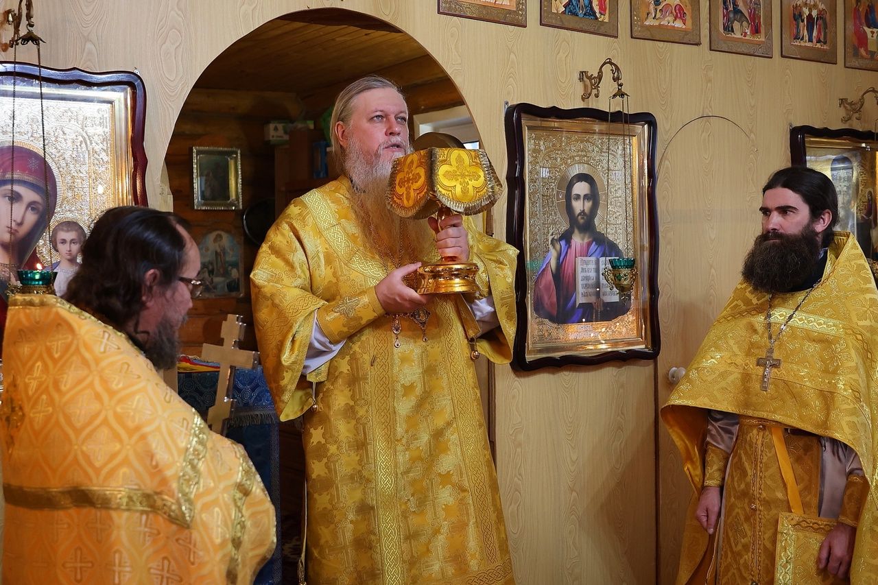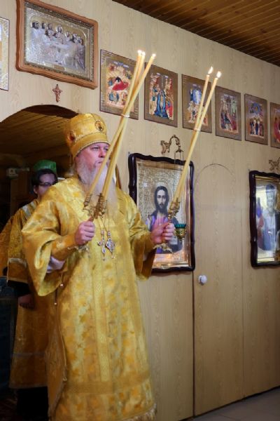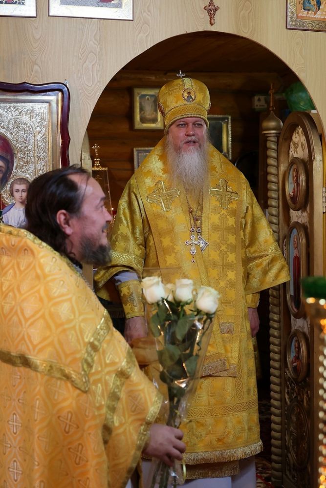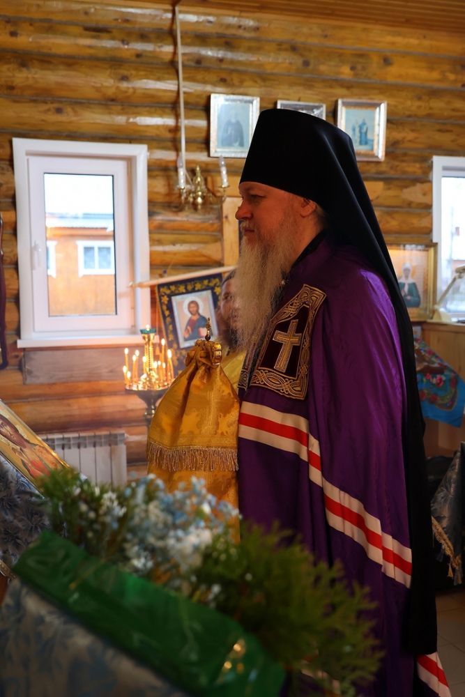 Его Преосвященству сослужили настоятель храма иерей Евгений Шамаев, клирики Никольского кафедрального собора г. Волжска протоиерей Иоанн Белинский и диакон Иоанн Захаров.