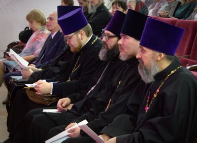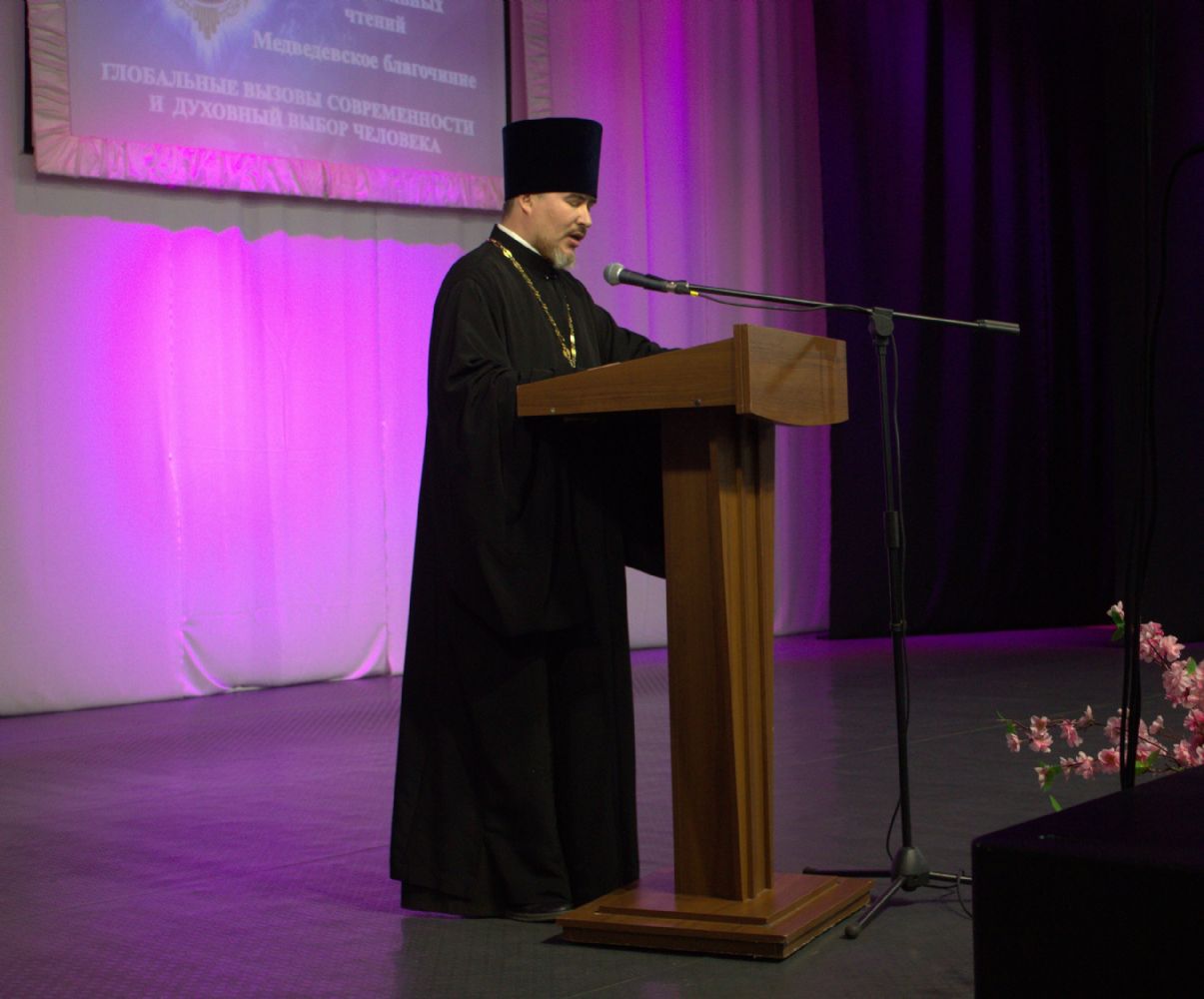 На пленарной части выступили: Елена Николаевна Трифонова, начальник методического отдела Отдела образования и по делам молодежи администрации Медведевского района с докладом «Духовно-нравственное воспитание в образовательных учреждениях Медведевского района»; Надежда Евгеньевна Костылева, заведующая абонементом Районной центральной библиотеки с докладом «Через книгу к нравственности: опыт работы Медведевской центральной библиотеки»; иерей Артемий Промович, настоятель храма Сретения Господня с. Азаново с докладом «Глобальные вызовы современности и духовный выбор человека».