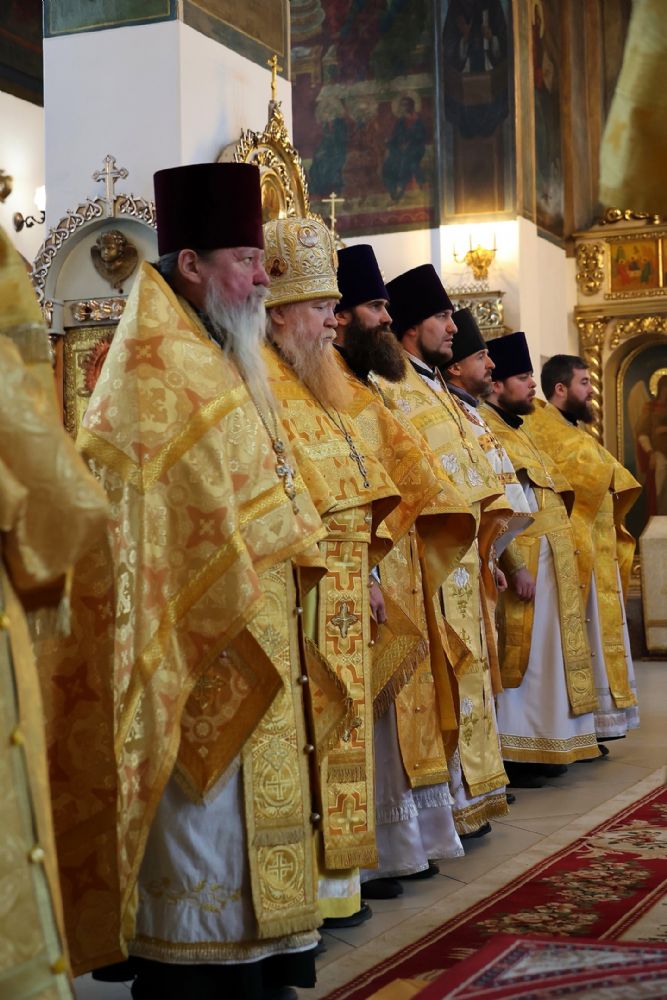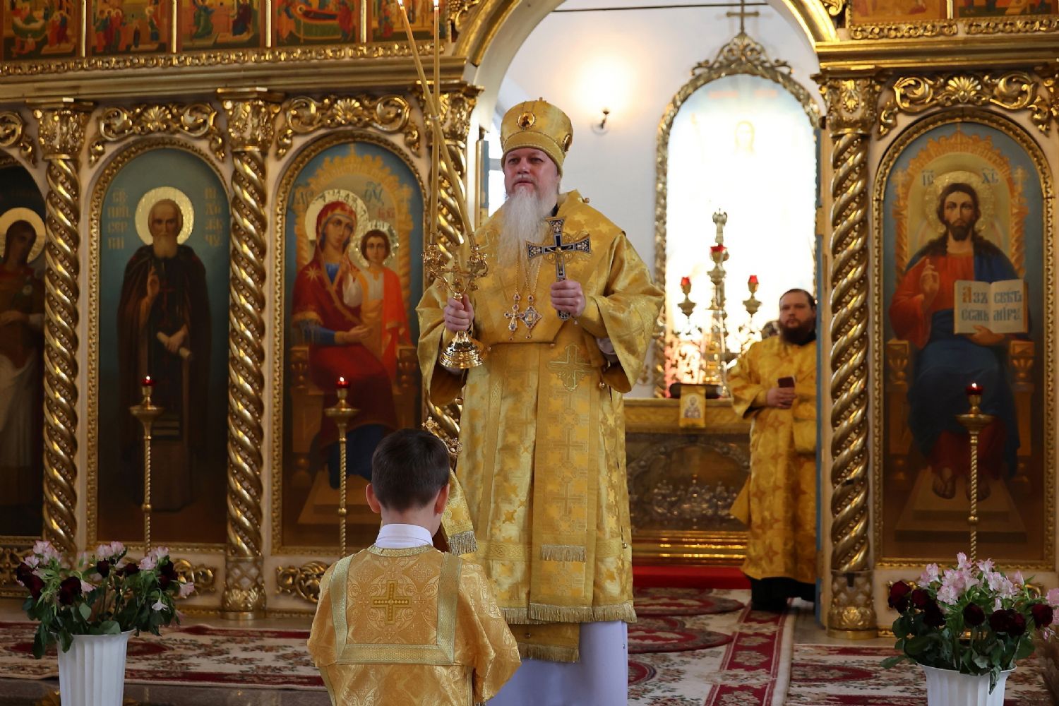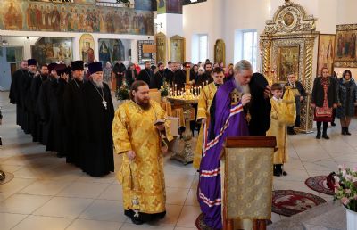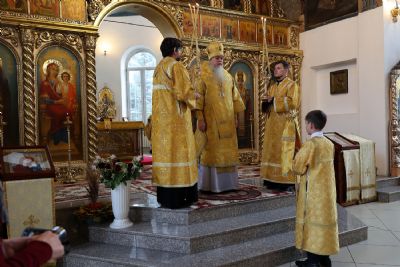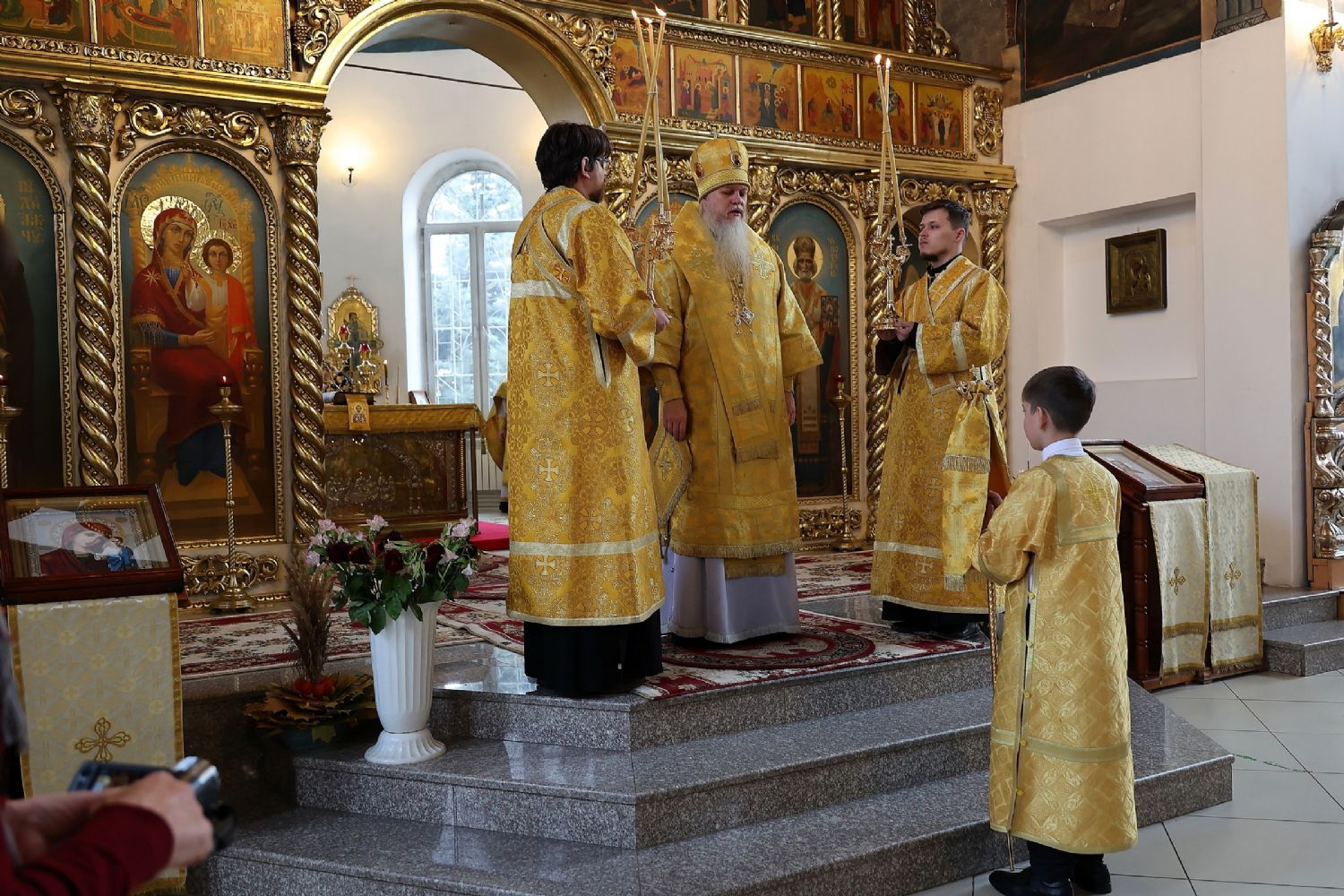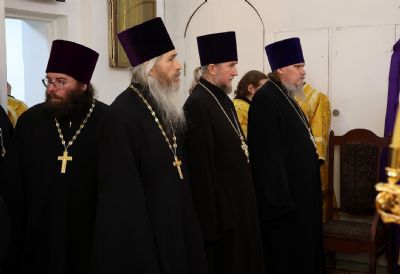 Его Преосвященству сослужило духовенство епархии. Песнопения исполнял архиерейский хор под управлением Любови Михеевой.