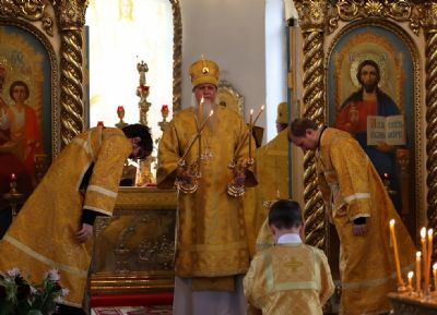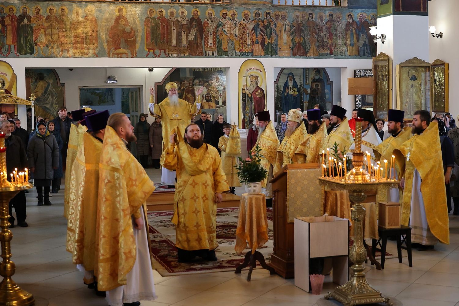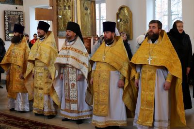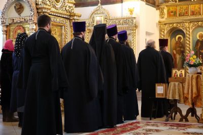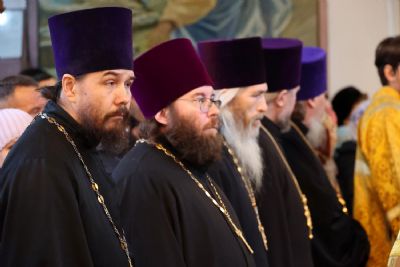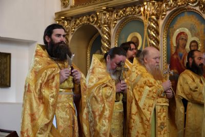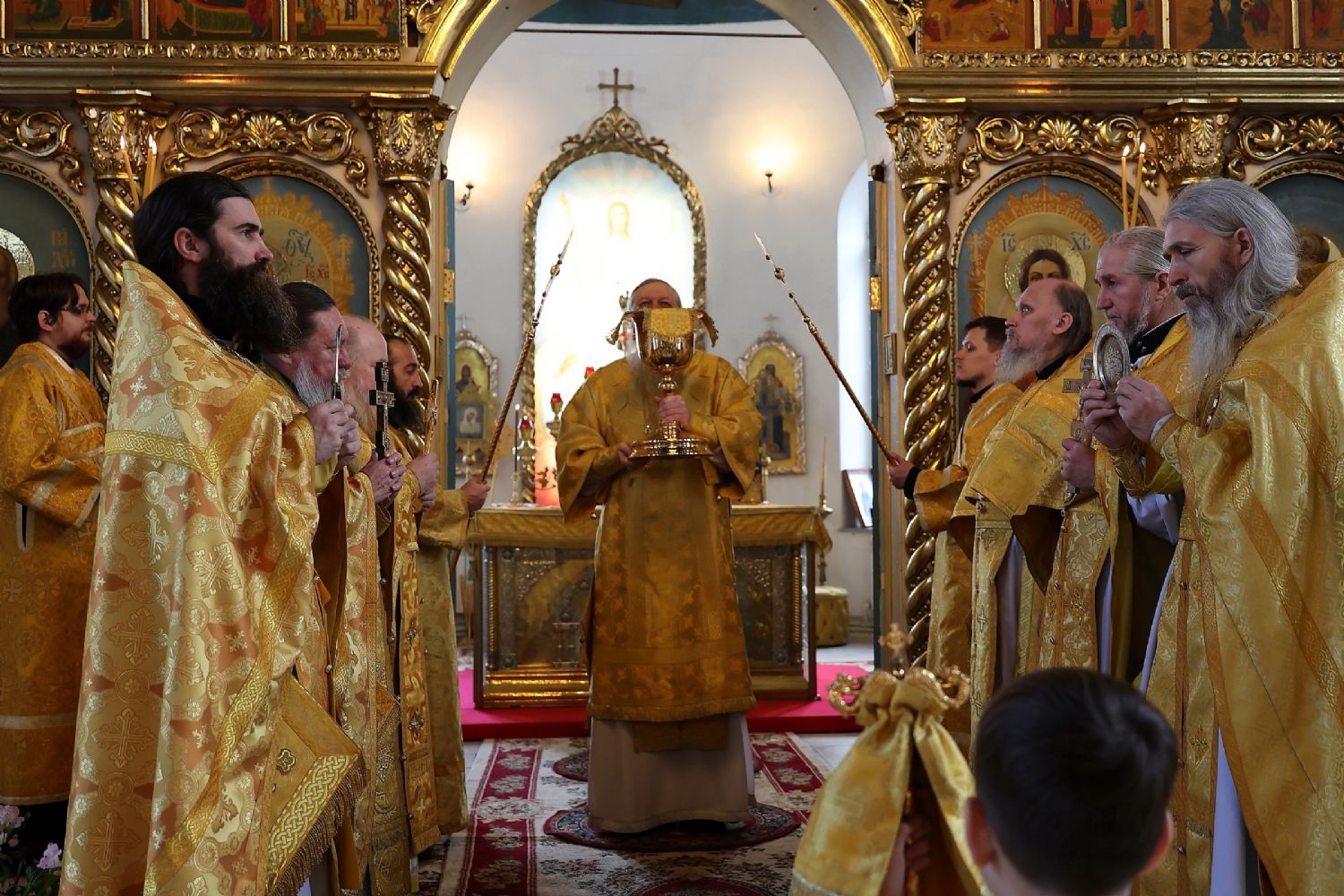 Его Преосвященству сослужило духовенство епархии. Песнопения исполнял архиерейский хор под управлением Любови Михеевой.