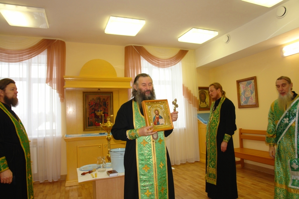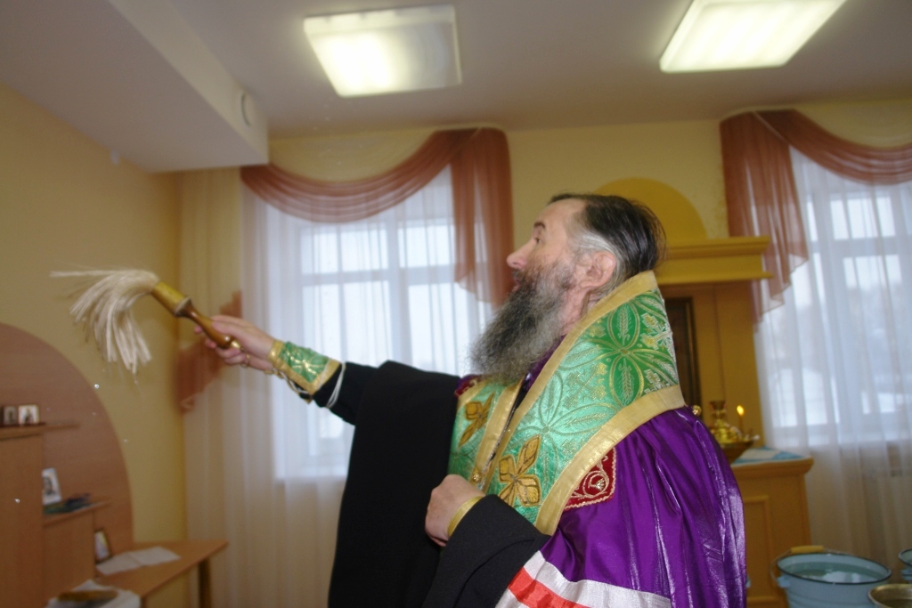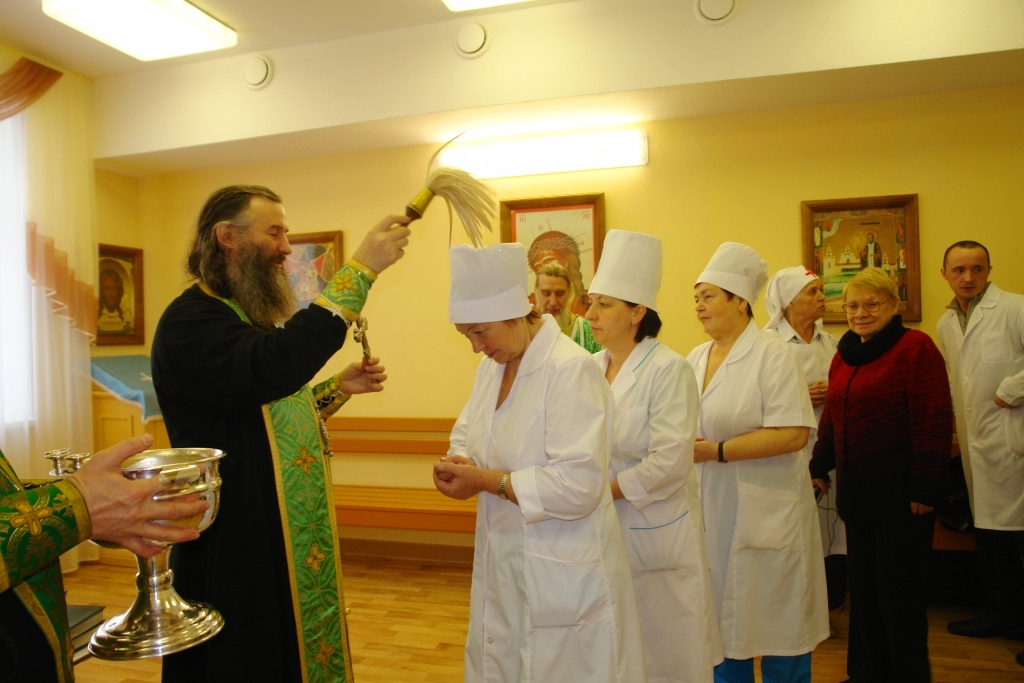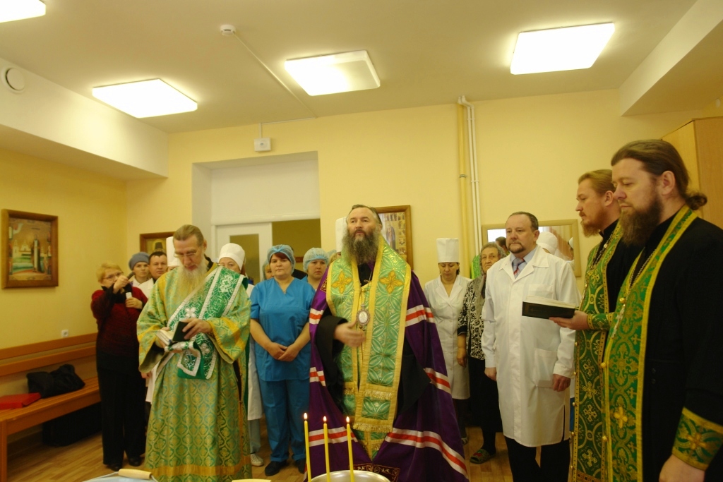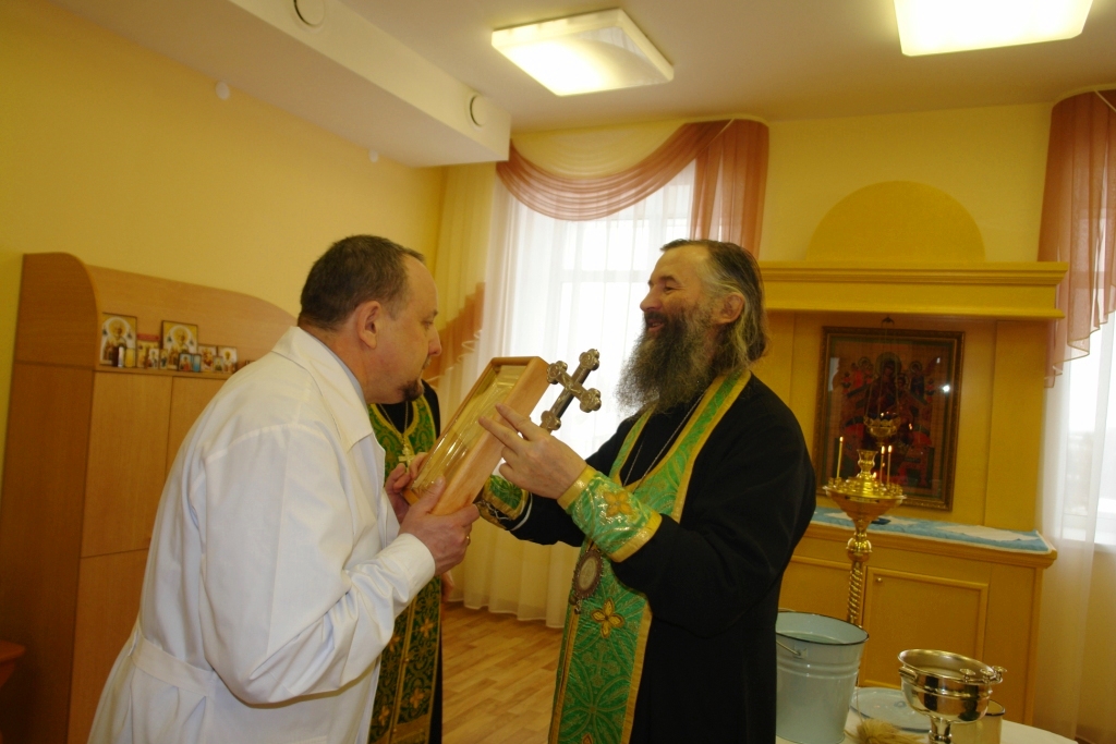 Теперь милостью Божией комната эта освящена. И сестра милосердия Галина Ивановна Королева сможет принимать здесь требы за здравие, а священник Михаил Петунин раз в две недели совершать богослужения. Но основное предназначение молельной комнаты: под покровом Царицы небесной дать больным людям утешение и надежду. Ведь болезни являются следствием грехов человеческих и лечение недугов телесных начинается с уврачевания души.
