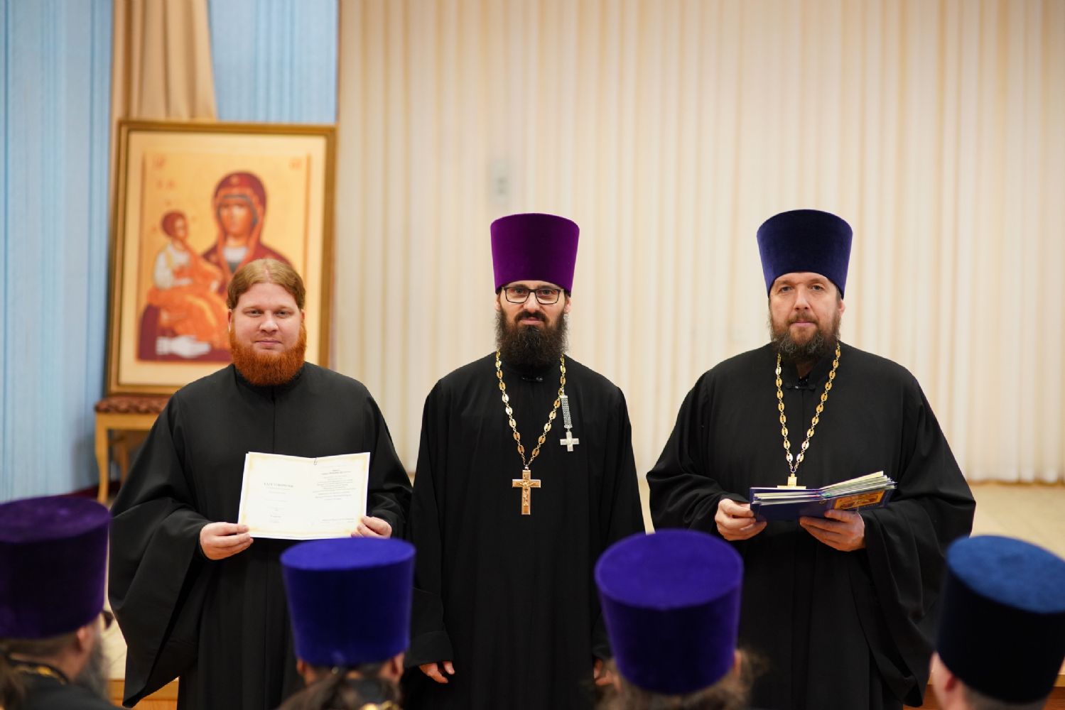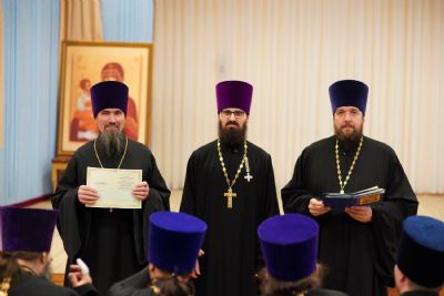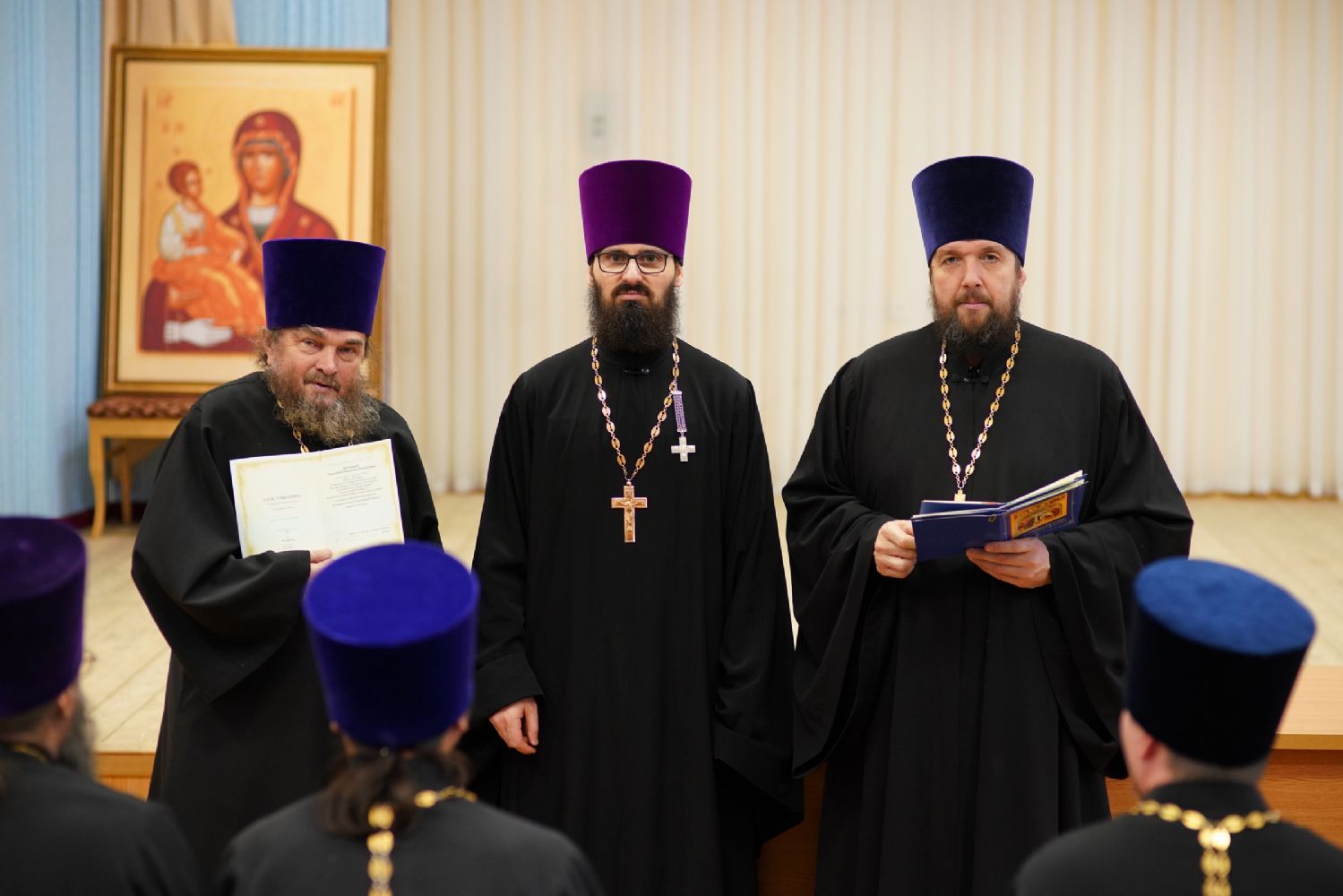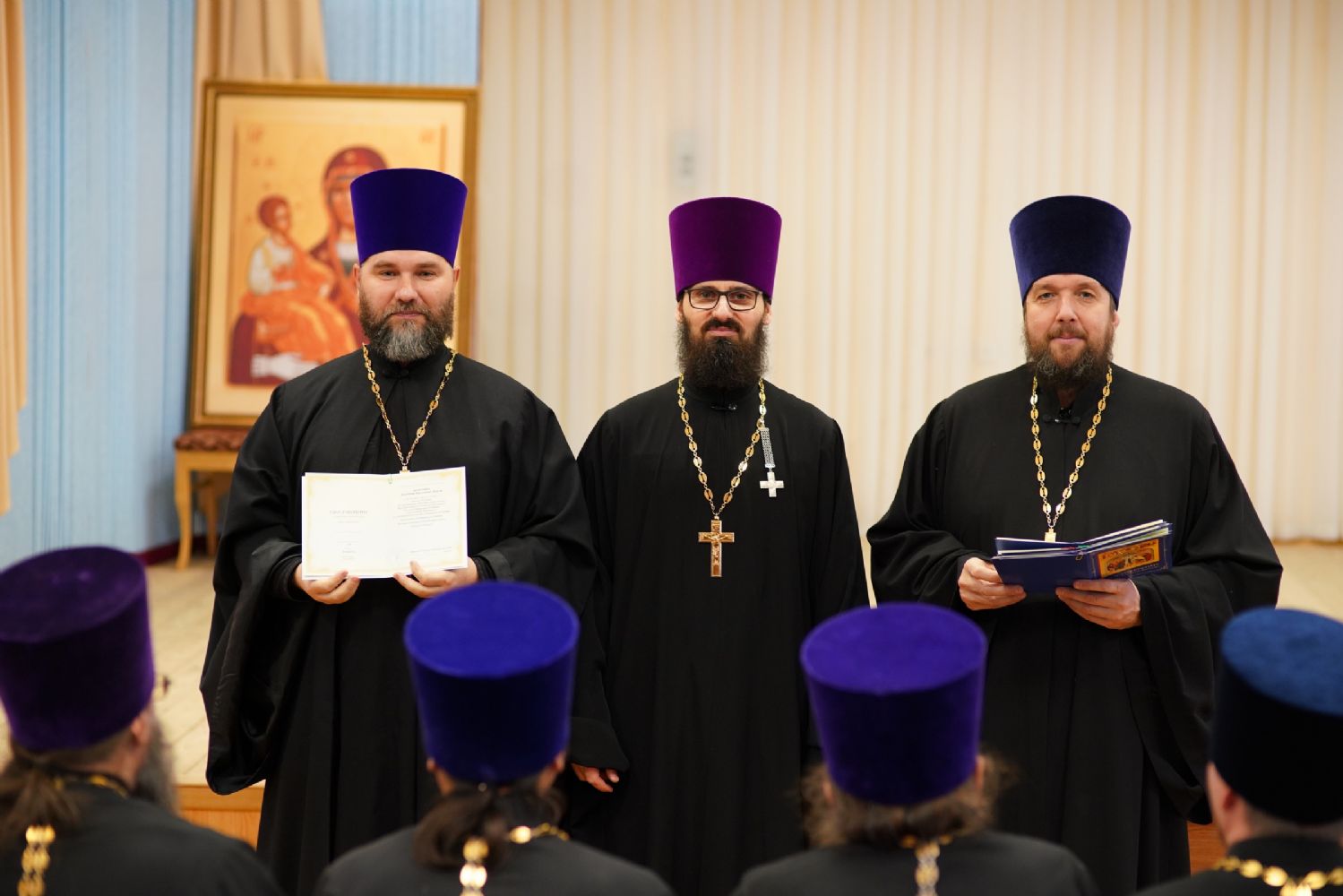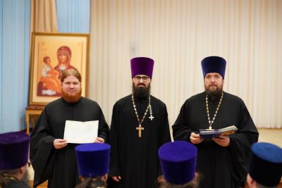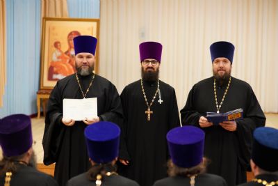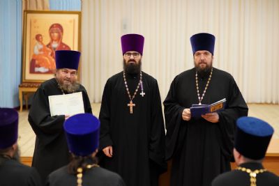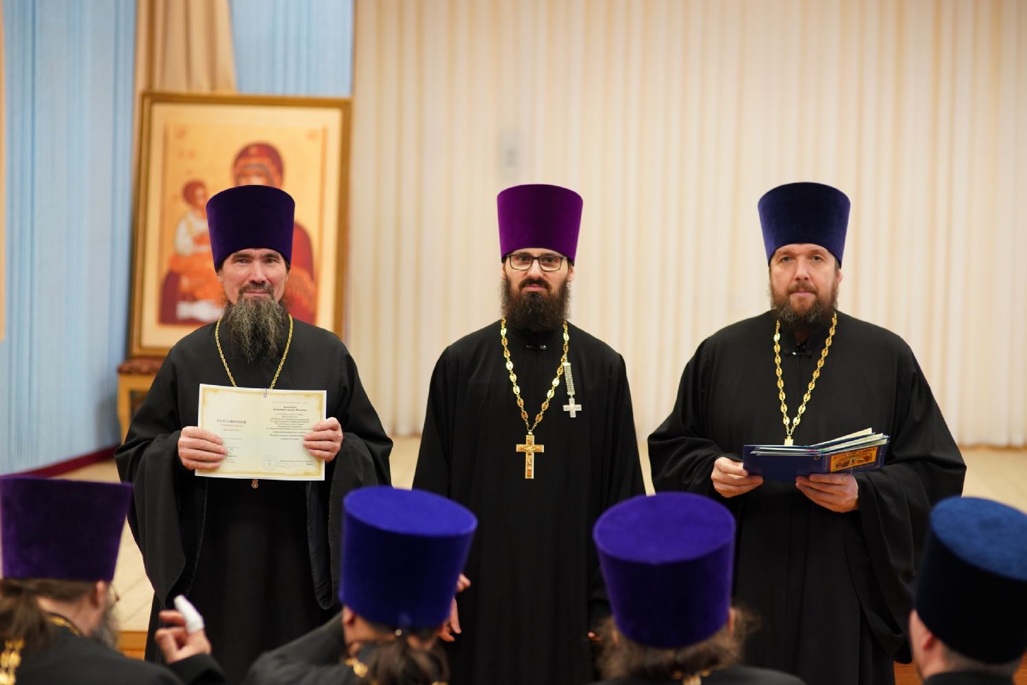 Далее в актовом зале Православного центра протоиерей Андрей Норкин вручил всем окончившим курсы клирикам свидетельства о повышении квалификации.