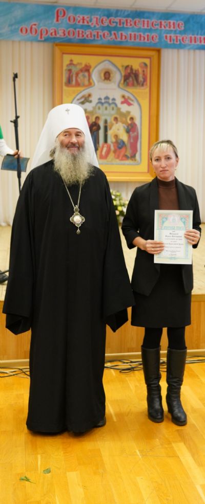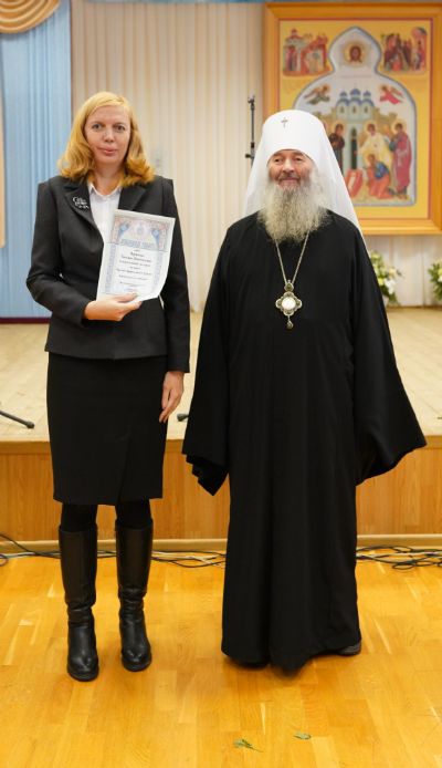 Также митрополит Иоанн вручил награды победителям регионального этапа XVII ежегодного Всероссийского конкурса «За нравственный подвиг учителя»: Чалдышкиной Наталье Николаевне, доценту кафедры методологий и управления образовательными системами Психолого-педагогического факультета МарГУ; Петровой Светлане Геннадьевне, директору Воскресной школы прихода храма святого пророка Илии пгт. Килимары и Томцевой Людмиле Алексеевне, заместителю директора по воспитательной работе Большепаратской СОШ.