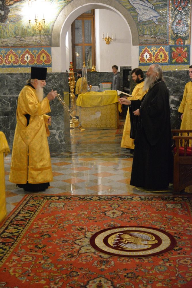Накануне вечером митрополит Иоанн совершил в Благовещенском соборе всенощное бдение.