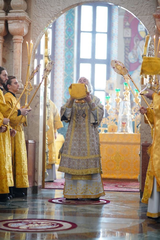 За Литургией архипастырям сослужили секретарь Йошкар-Олинского епархиального управления иеромонах Серафим (Пасанаев), ключарь кафедрального собора протоиерей Сергий Поглазов, клирики собора и протодиакон Михаил Козловский.