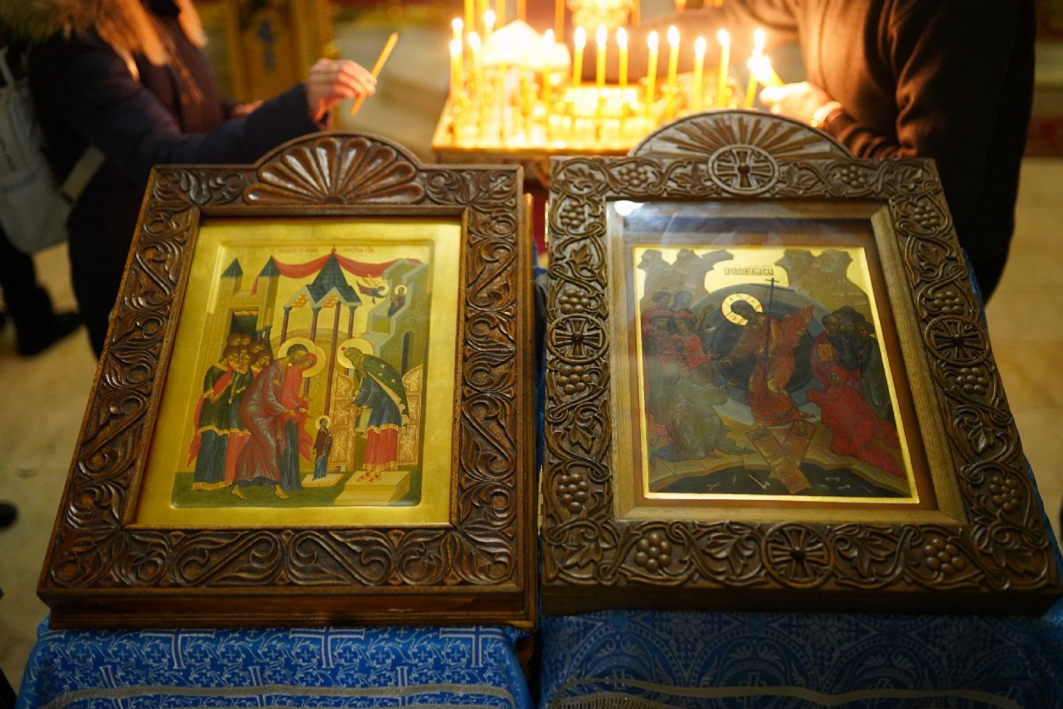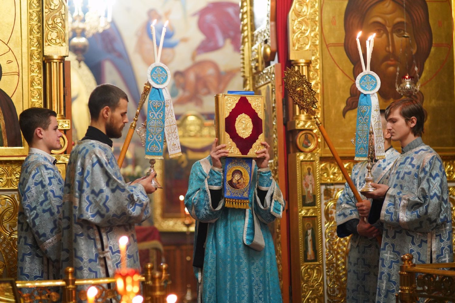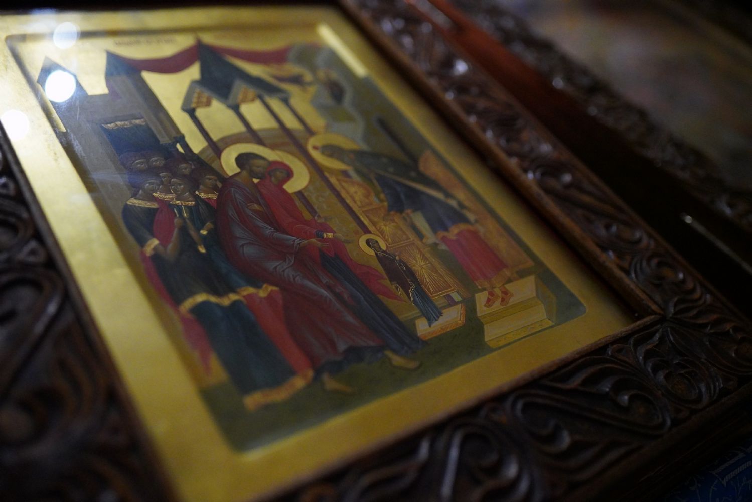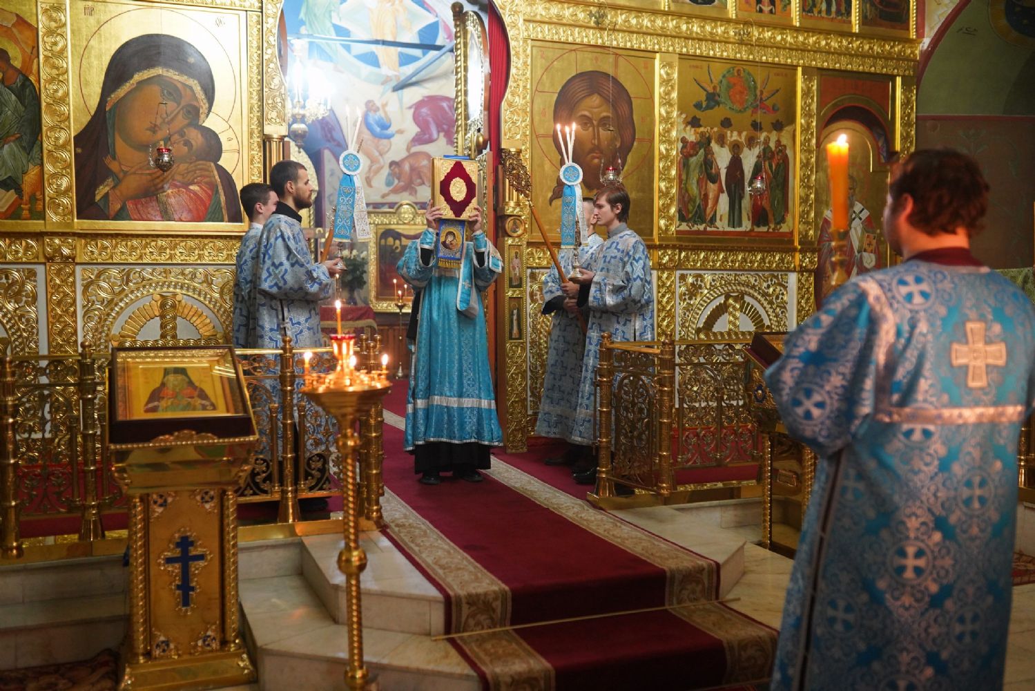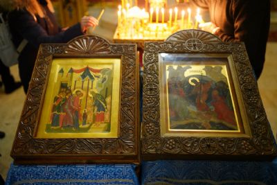 По случаю праздника за богослужением читались ветхозаветные паримии из книг Исхода, 3-й Царств и пророка Иезекииля о скинии, исполненной славы Господней и о ковчеге завета. Одушевленным Ковчегом завета Господня явилась впоследствии Пресвятая Богородица, Которую по наитию Святого Духа первосвященник Захария ввел во Святая Святых храма.
