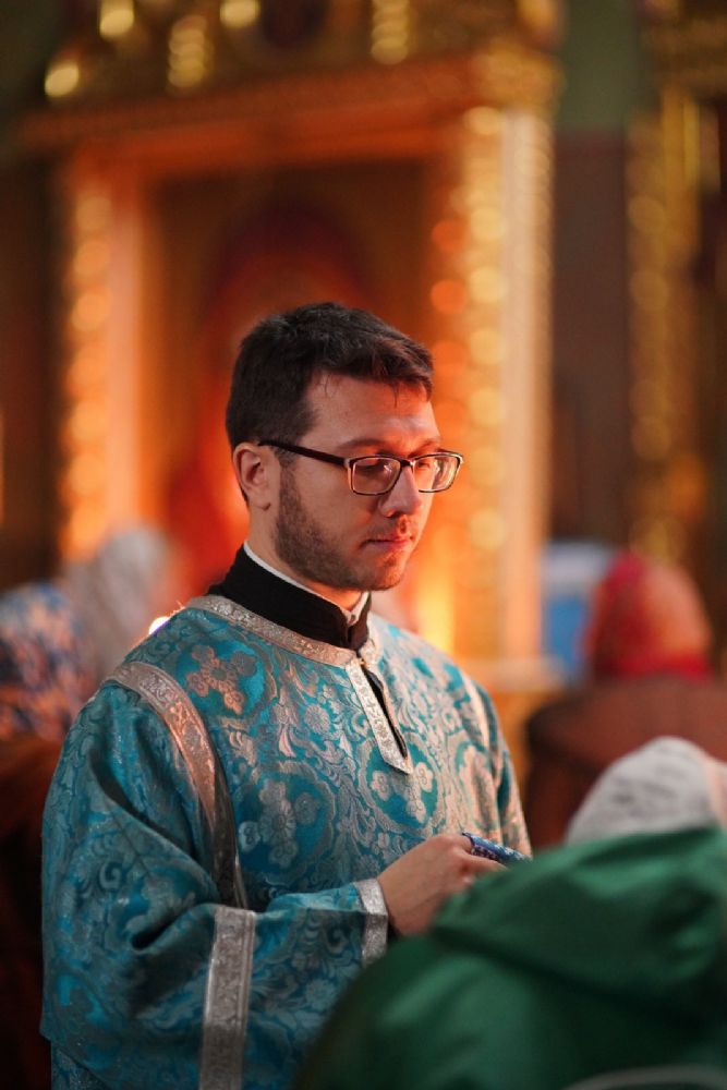 Архипастырю сослужили секретарь Йошкар-Олинского епархиального управления иеромонах Серафим (Пасанаев), настоятель собора протоиерей Евгений Кутырев, благочинный Йошкар-Олинского церковного округа протоиерей Андрей Норкин, клирики собора и протодиакон Михаил Козловский. Песнопения исполнял хор собора под управлением Ангелины Бабиной.