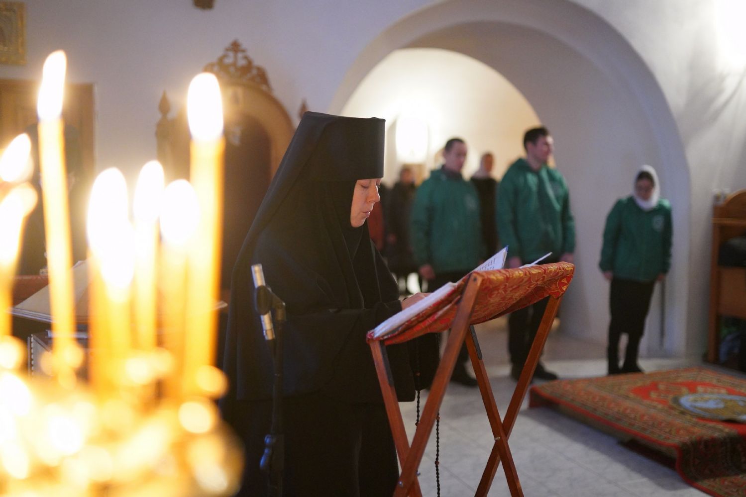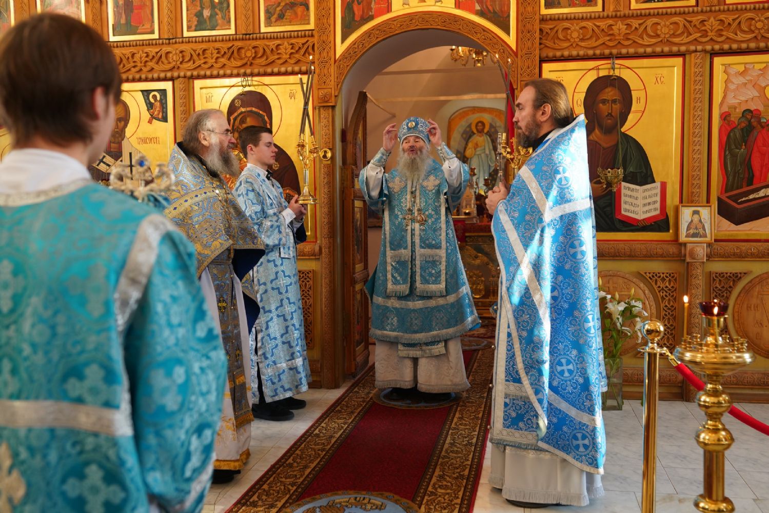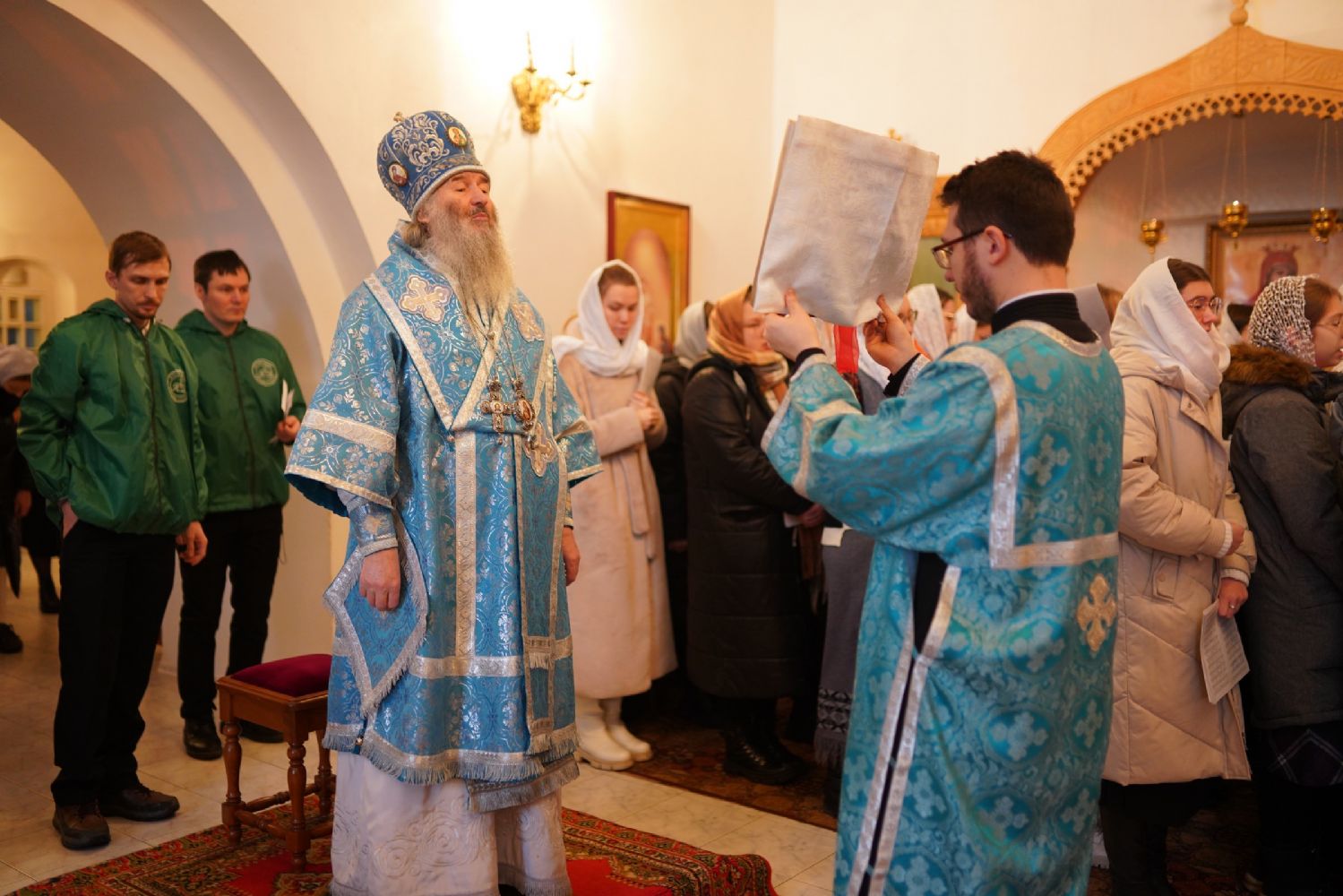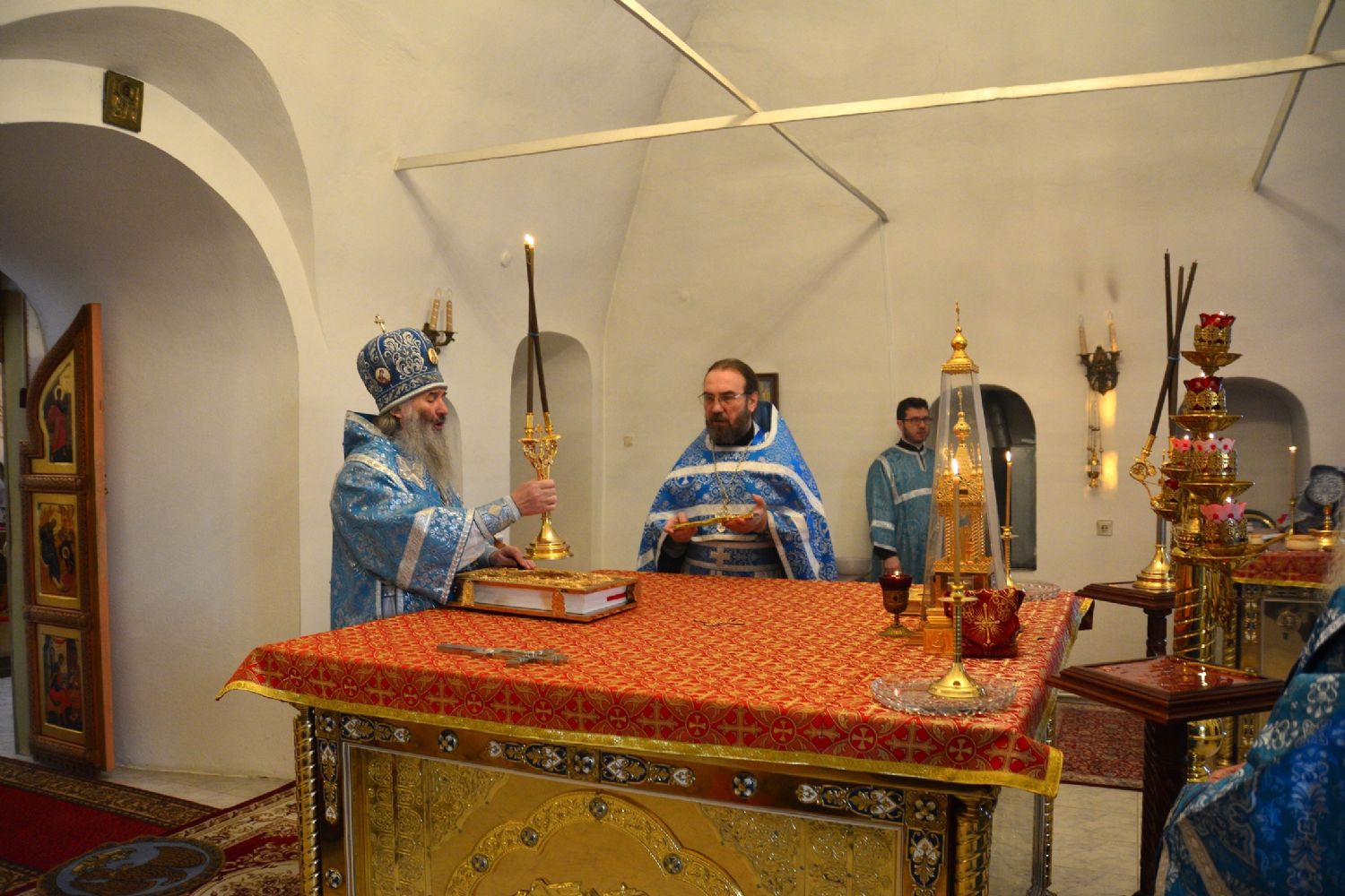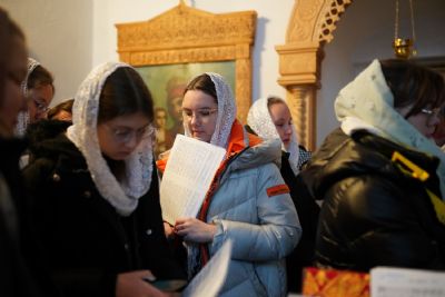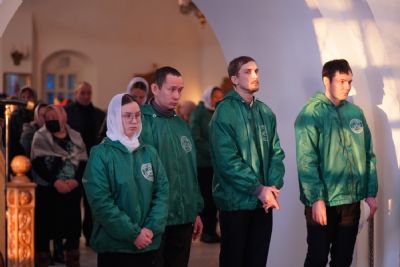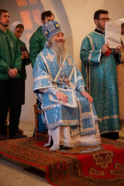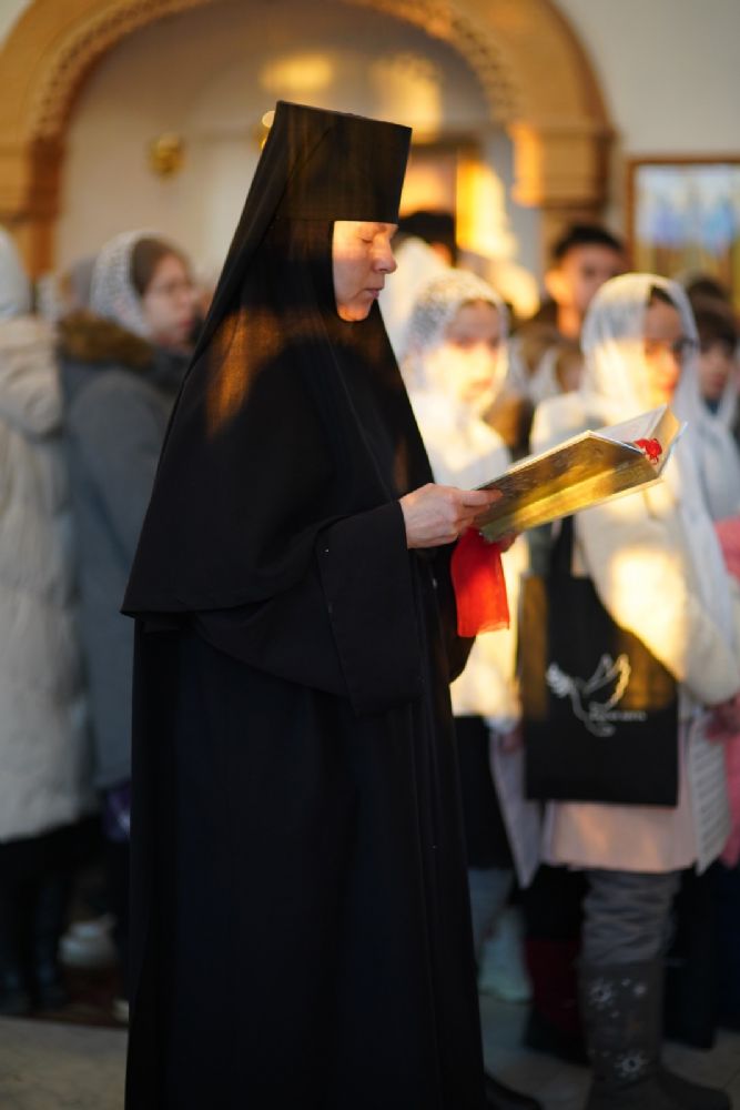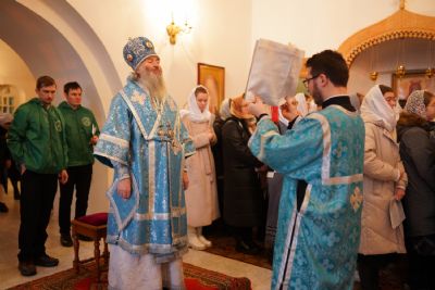 Архипастырю сослужили секретарь Йошкар-Олинского епархиального управления иеромонах Серафим (Пасанаев), клирик монастыря иерей Михаил Лежнин и протодиакон Михаил Козловский. Песнопения исполняли старший и младший составы детско-юношеского хора «Благовест» под руководством регентов Татьяны Черновой и Надежды Поздеевой.