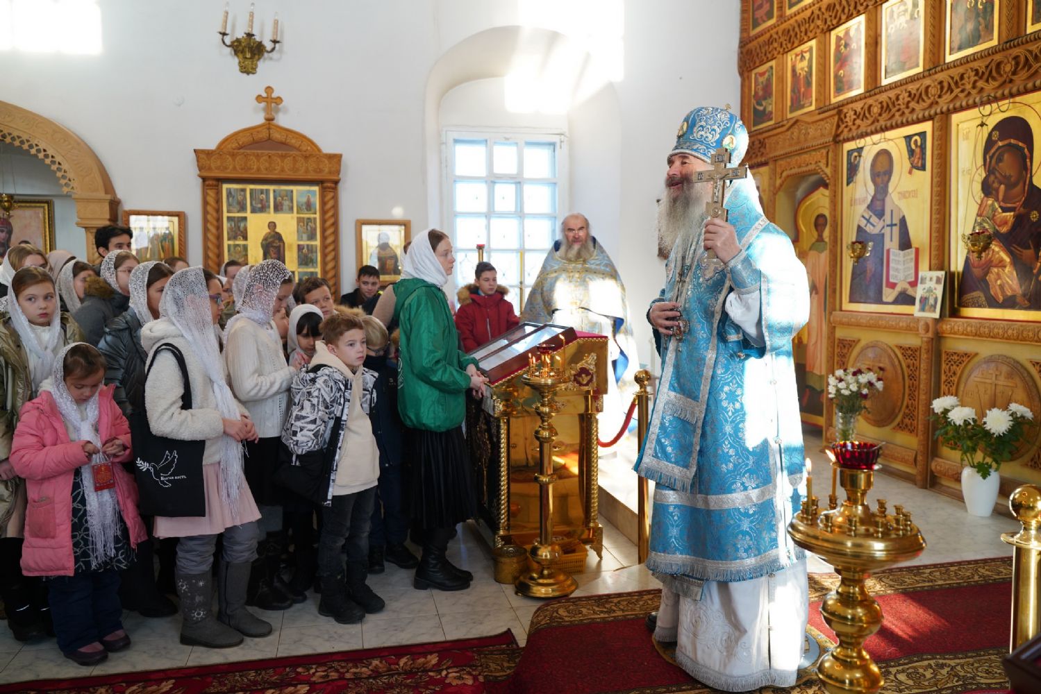 «В этот день мы собираемся в храмах Господних, являясь свидетелями этого события. Не случайно Святая Церковь вчера за всенощным бдением воспела: Христос рождается, славите… Своим вхождением в храм юница Мария открывает всему роду человеческому, что грядет Спаситель мира, – отметил владыка. – Все мы с вами для совершения таинства Крещения так же родителями были принесены в храм Божий. Мальчиков занесли во святая святых, в алтарь Господень, посвящая их на служение Богу, а девиц перед царскими вратами подняли к небу, подобно Пречистой Богородице, вручая каждую Самому Господу.