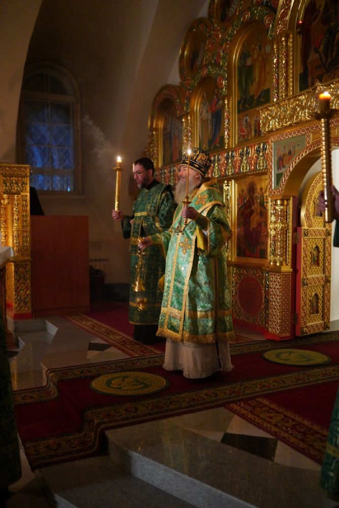 13 января вечером, в канун праздника Обрезания Господня, дня памяти святителя Василия Великого, митрополит Йошкар-Олинский и Марийский Иоанн возглавил всенощное бдение в Воскресенском соборе г. Йошкар-Олы.