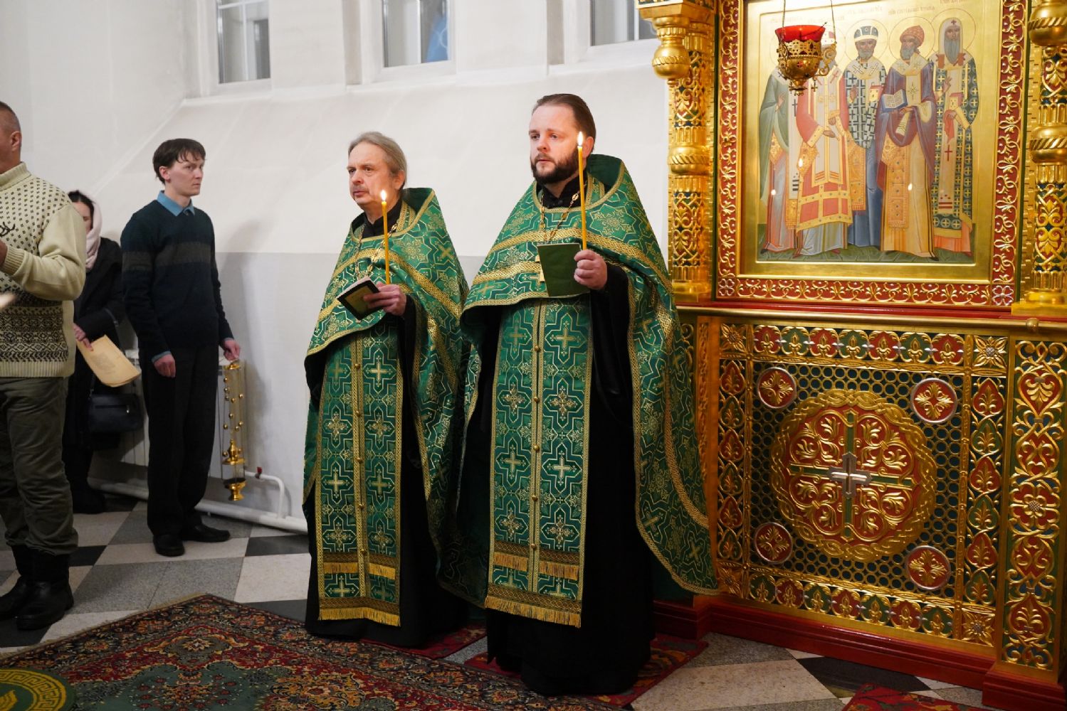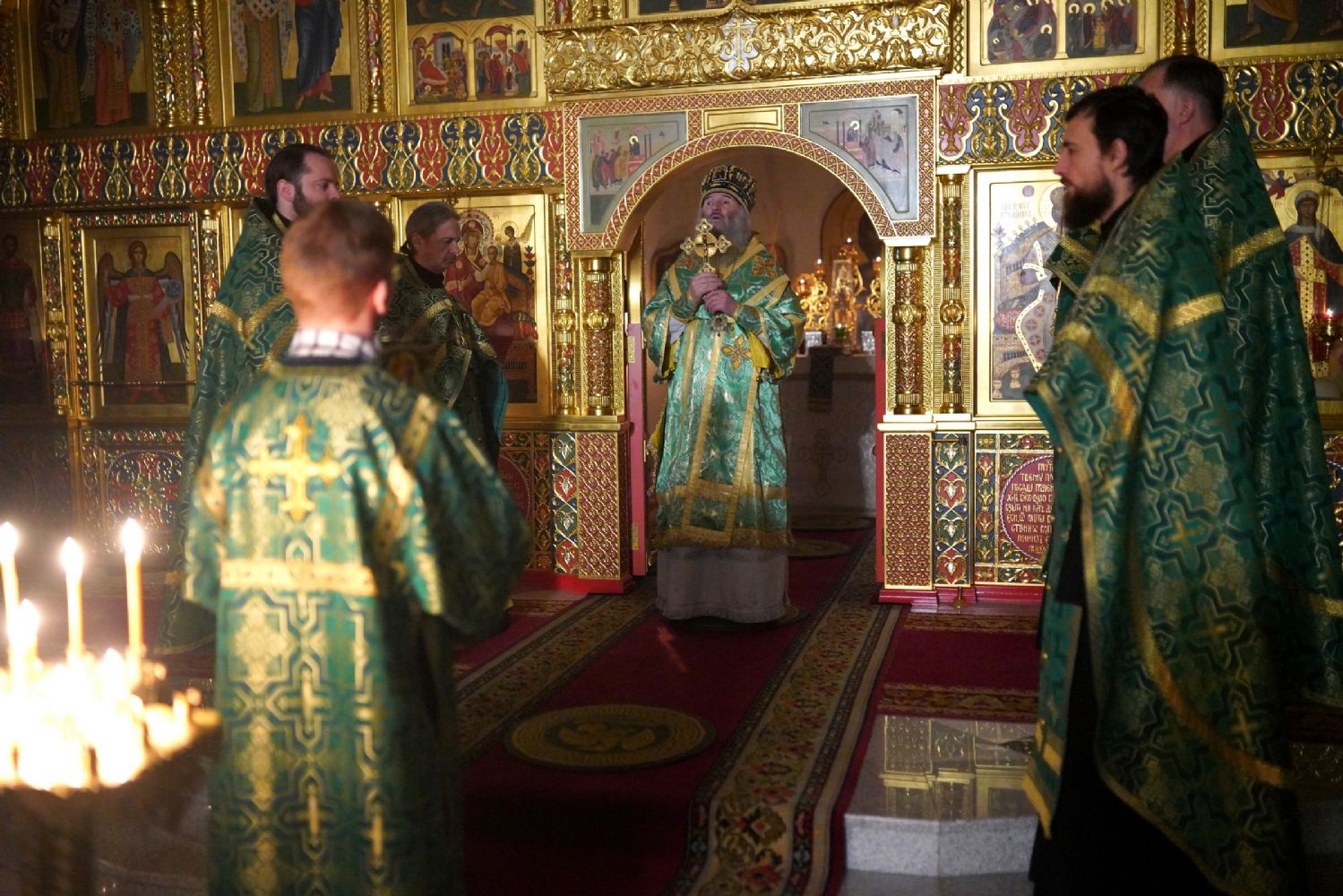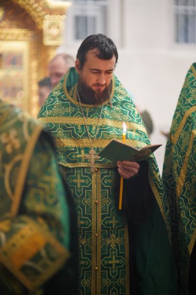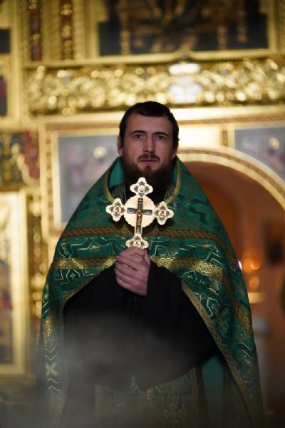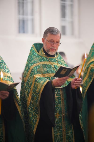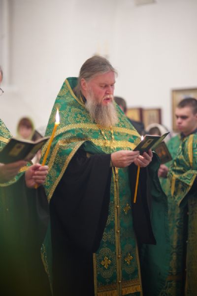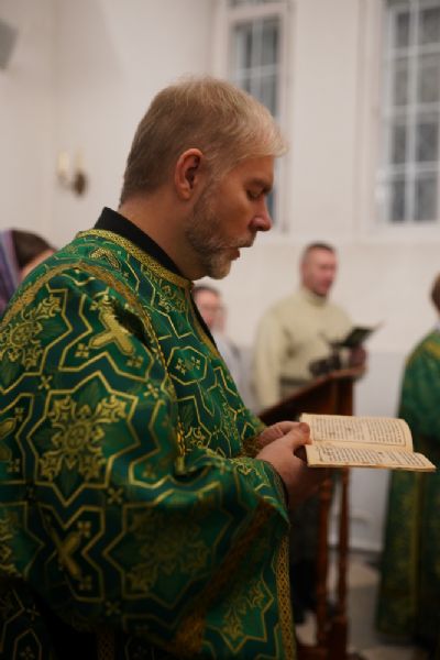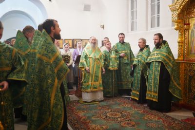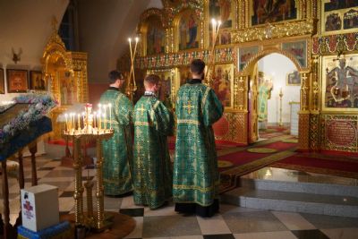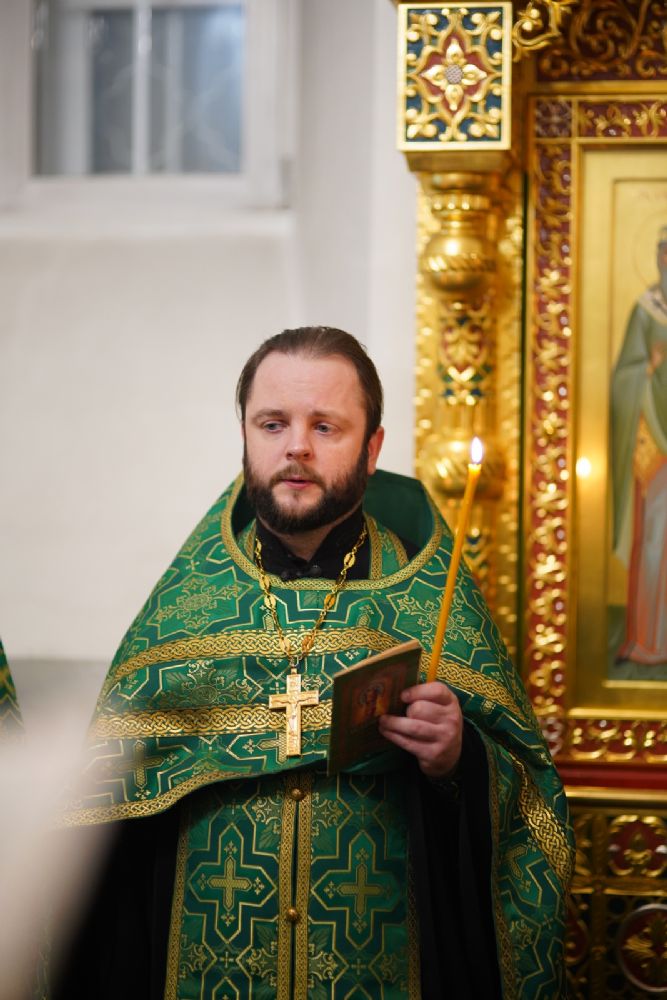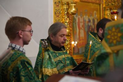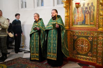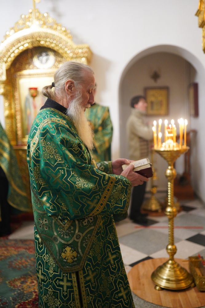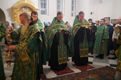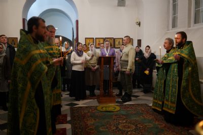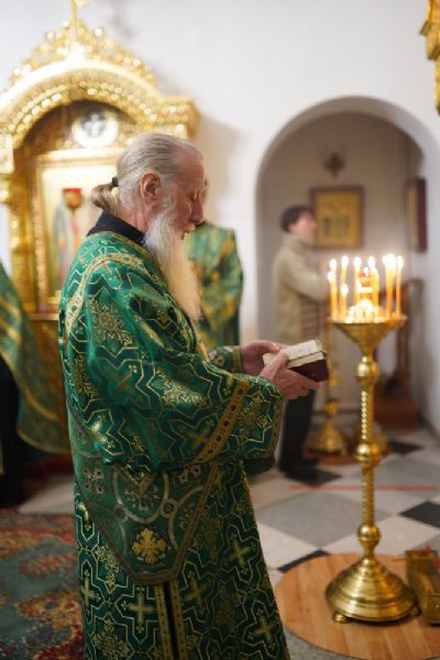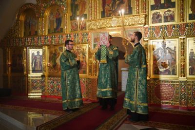 Владыке сослужили настоятель храма протоиерей Александр Бачурин, полковой священник иерей Георгий Колотов, клирики храма и протодиакон Михаил Козловский. Песнопения исполнял хор храма под управлением регента Елены Умрихиной.