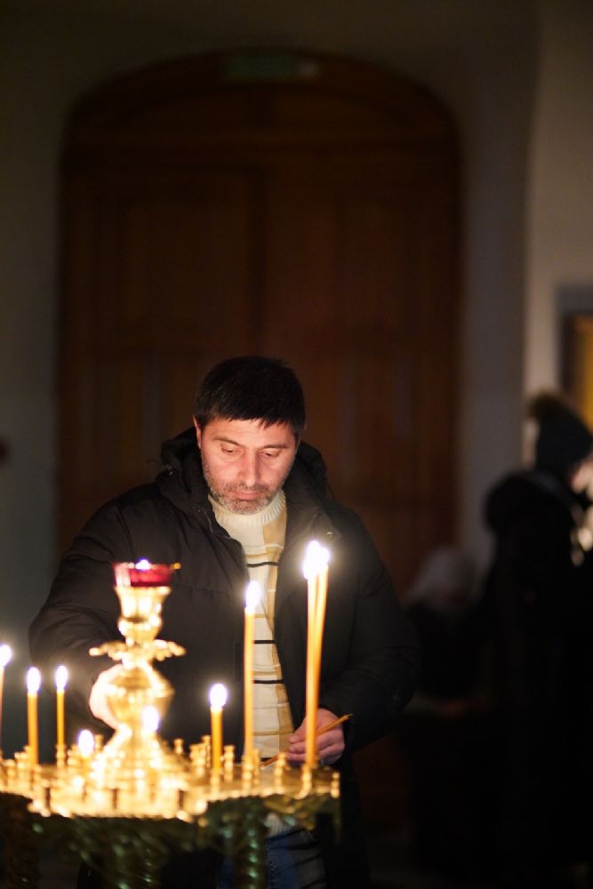 14 января в Троицком соборе Свято-Троицкого Серафимо-Дивеевского женского монастыря было совершено вечернее богослужение: малая вечерня с акафистом преподобному Серафиму Саровскому и всенощное бдение.
