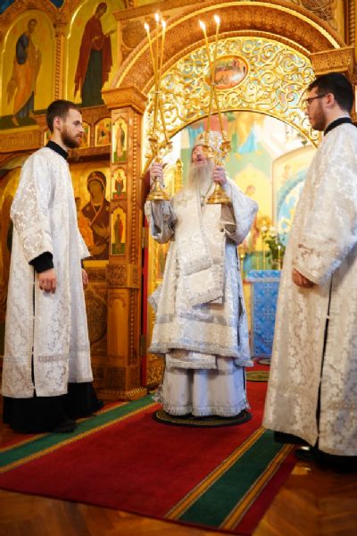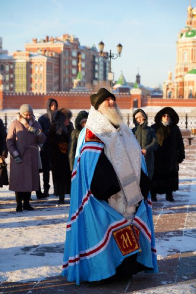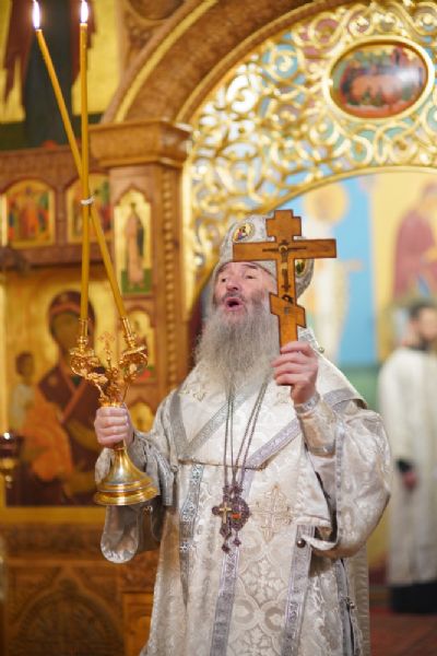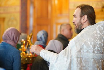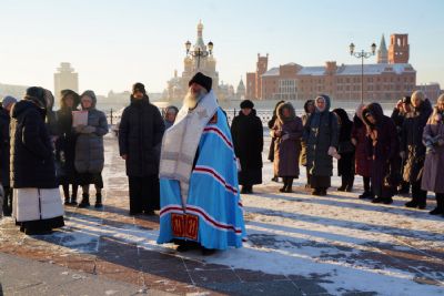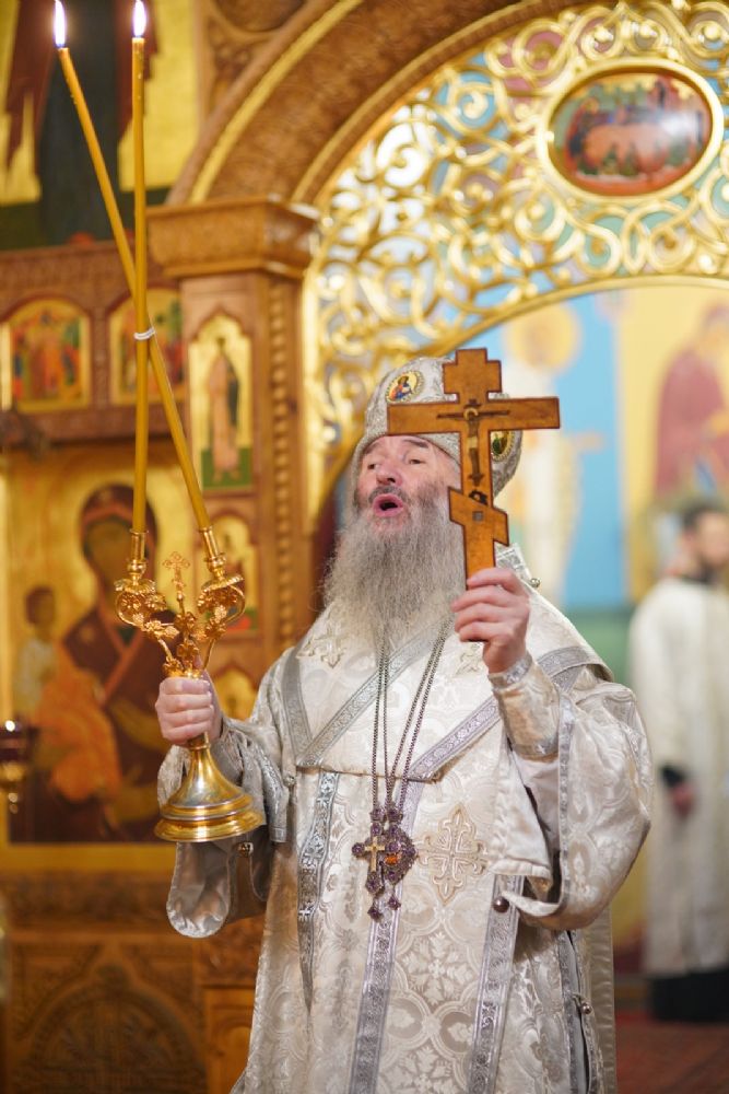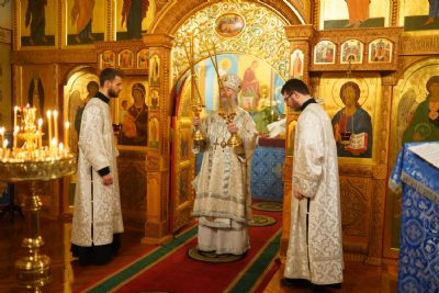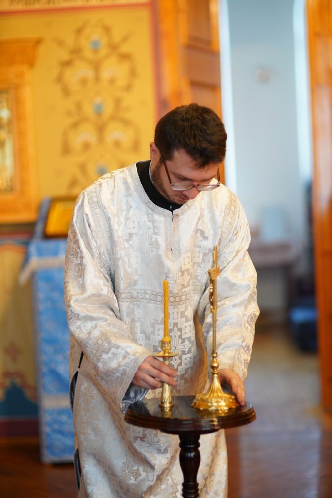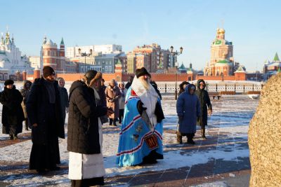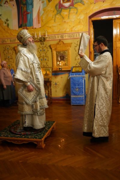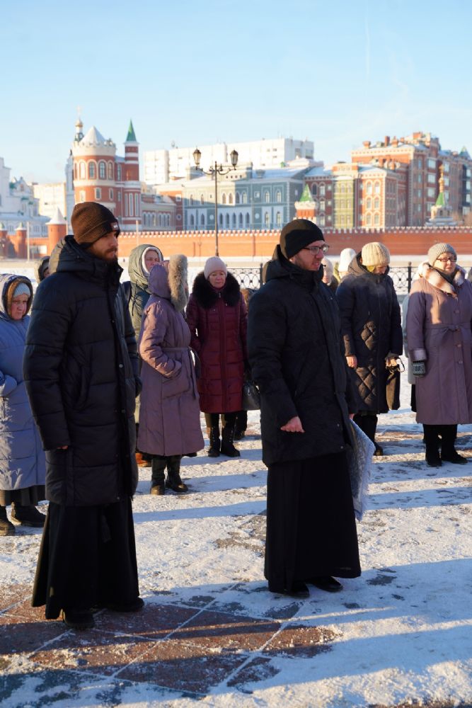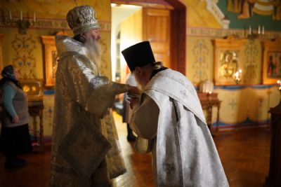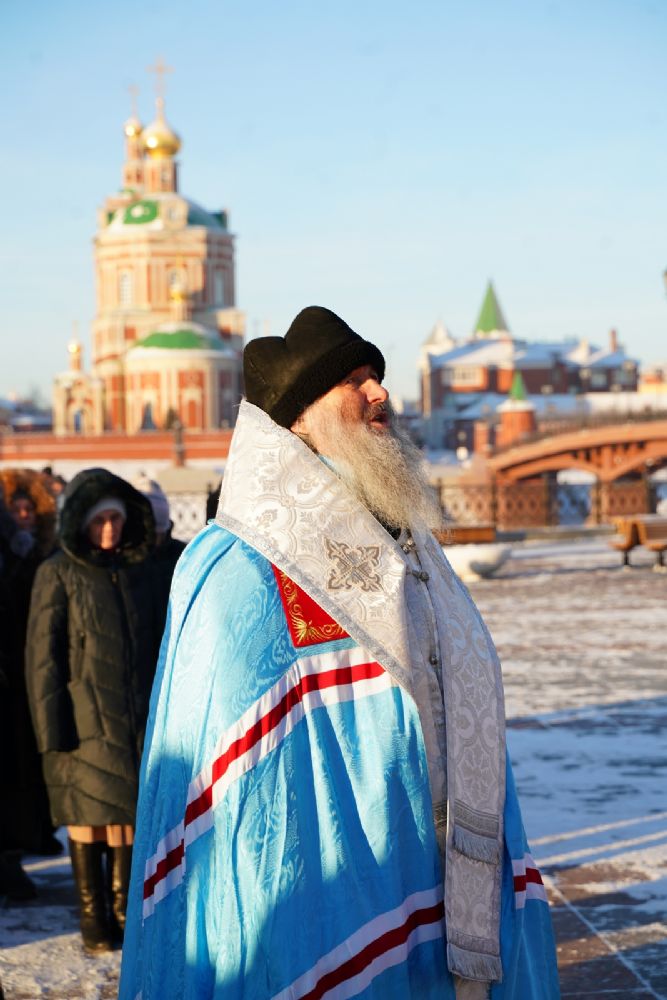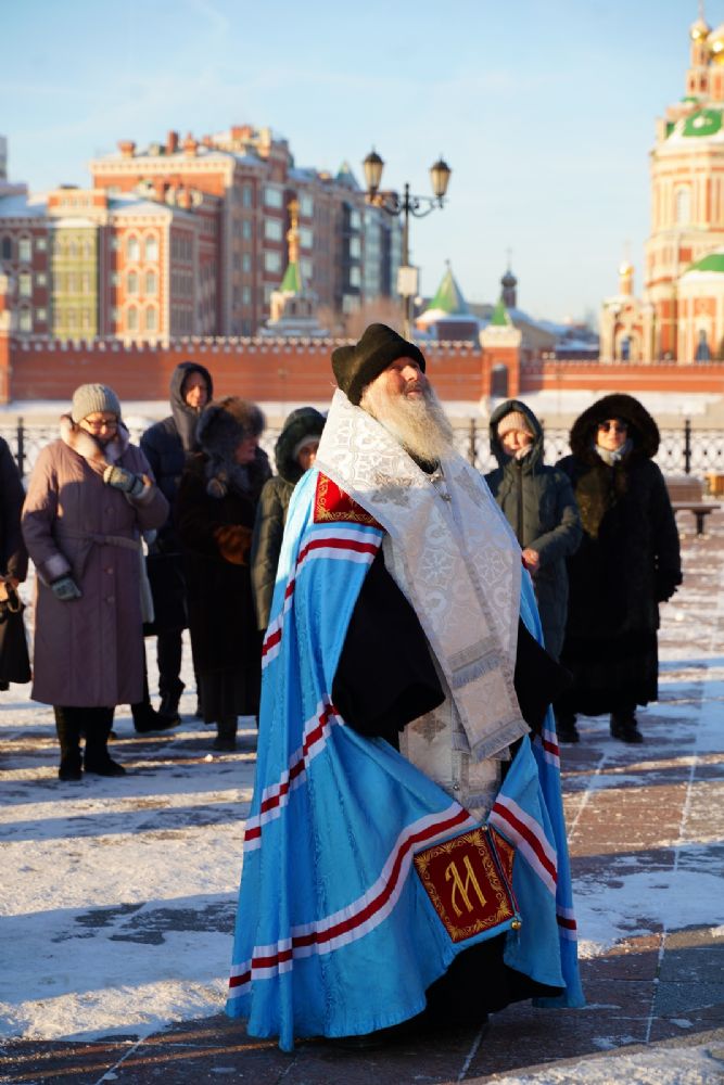 Владыке сослужили секретарь Йошкар-Олинского епархиального управления иеромонах Серафим (Пасанаев) и протодиакон Михаил Козловский.