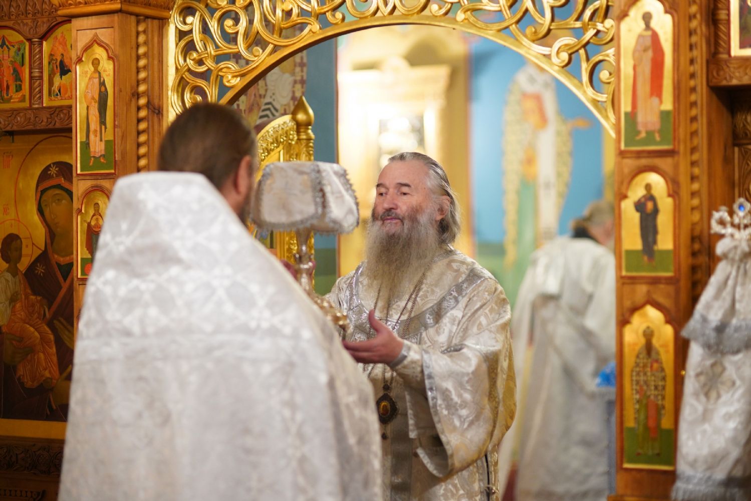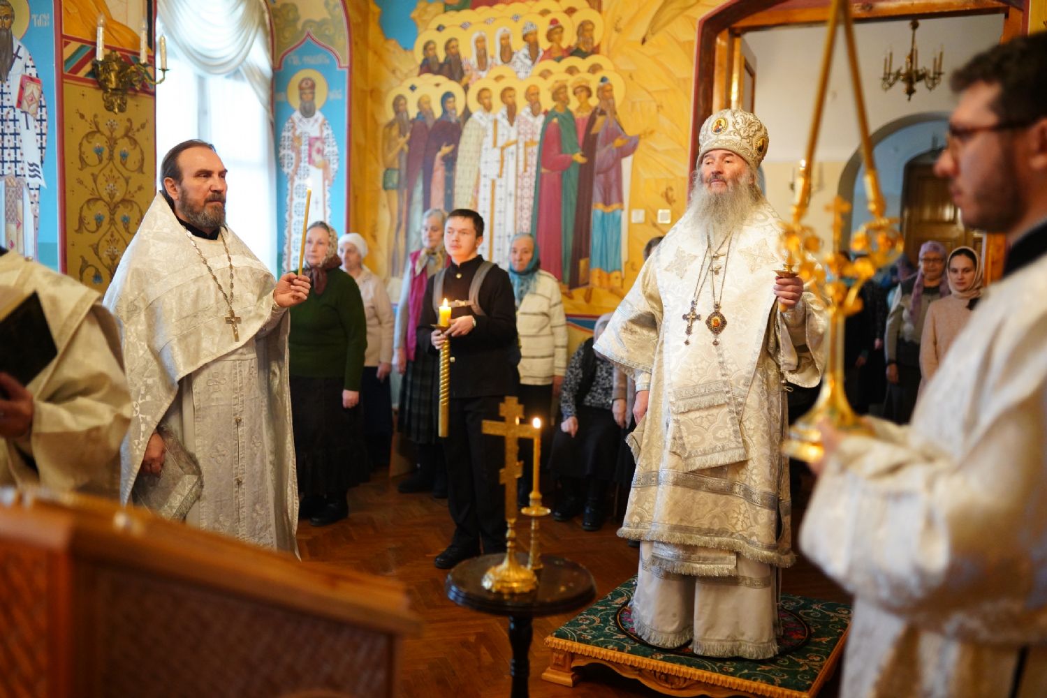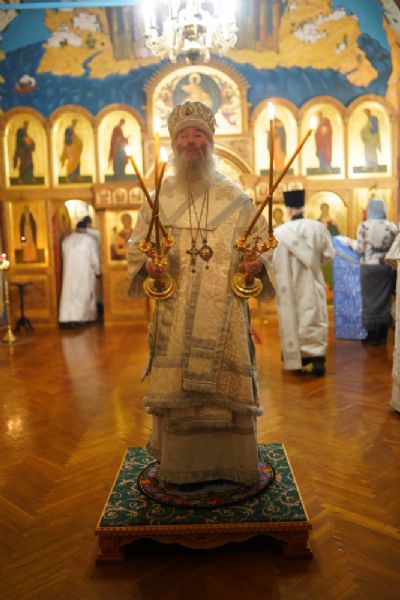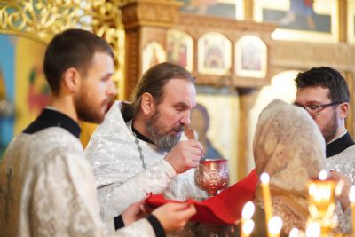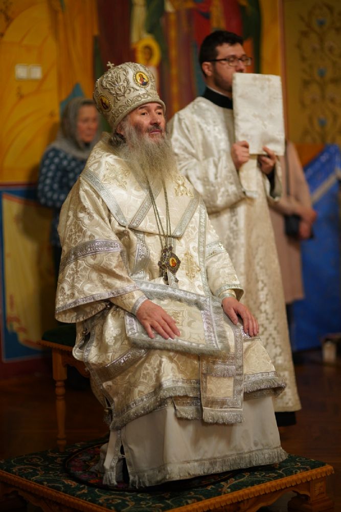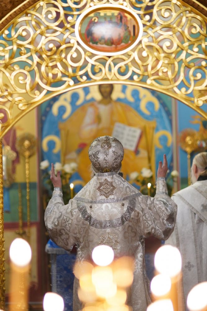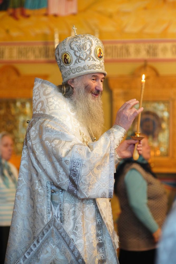 Владыке сослужили секретарь Йошкар-Олинского епархиального управления иеромонах Серафим (Пасанаев) и протодиакон Михаил Козловский.