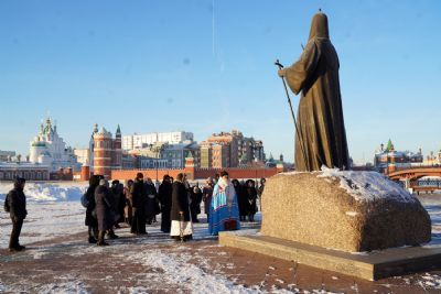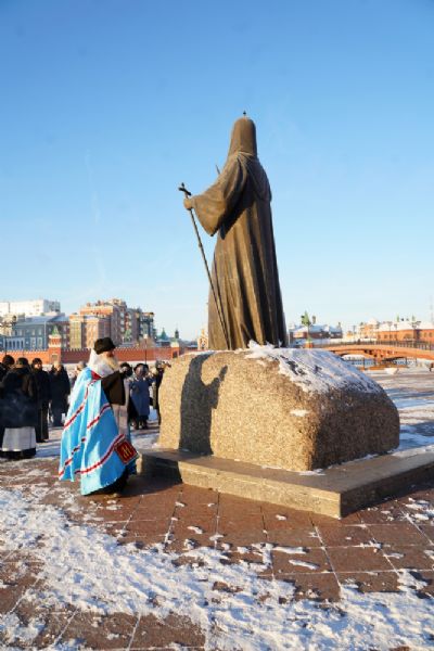 Песнопения исполнял детско-юношеский хор «Благовест» под руководством регента Татьяны Черновой. После панихиды митрополит Иоанн отслужил заупокойную литию на Патриаршей площади у памятника Святейшему Патриарху Алексию II и возложил цветы.