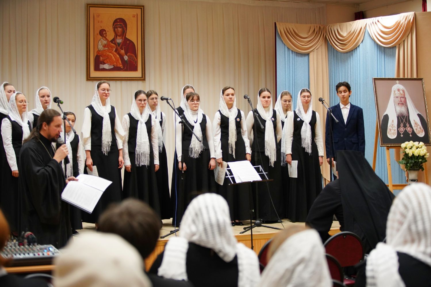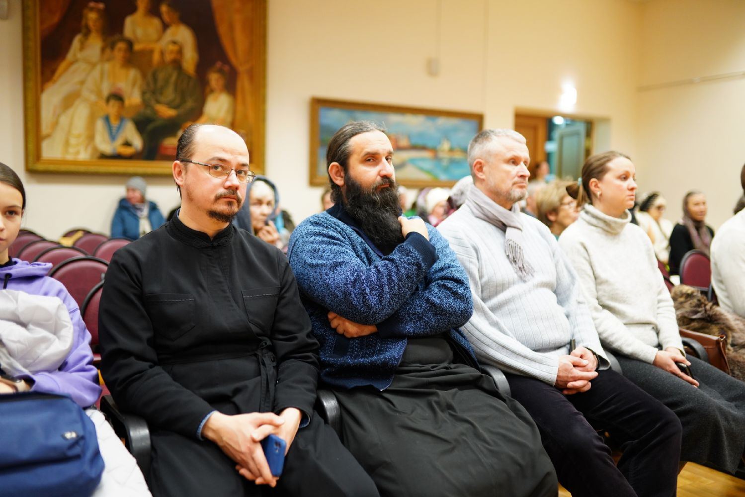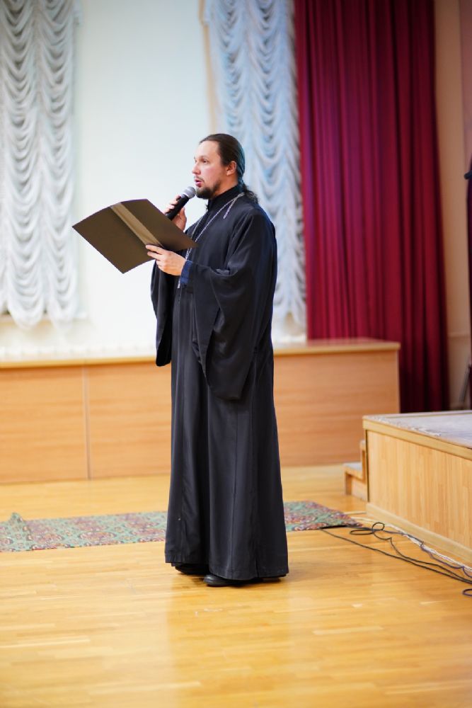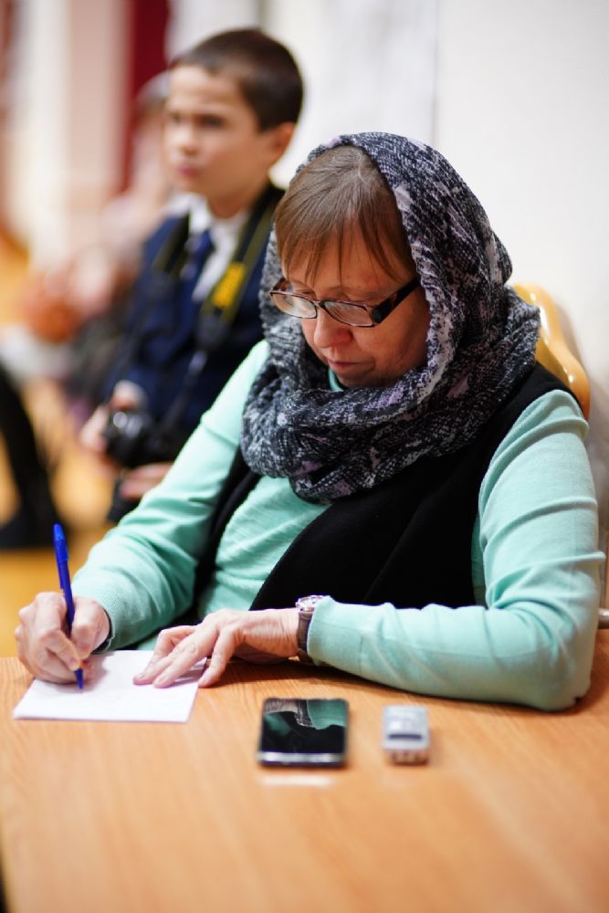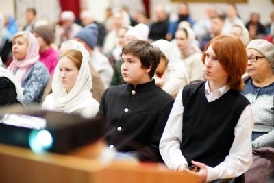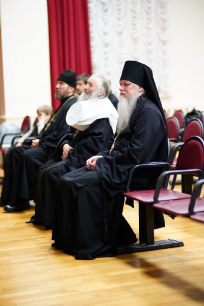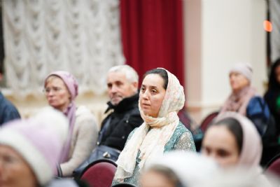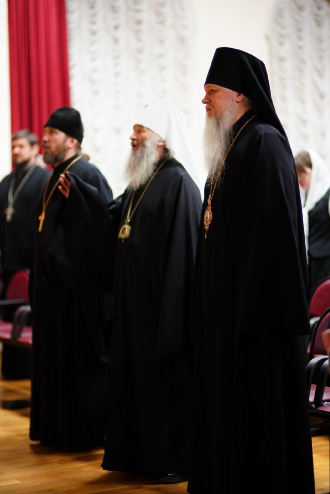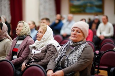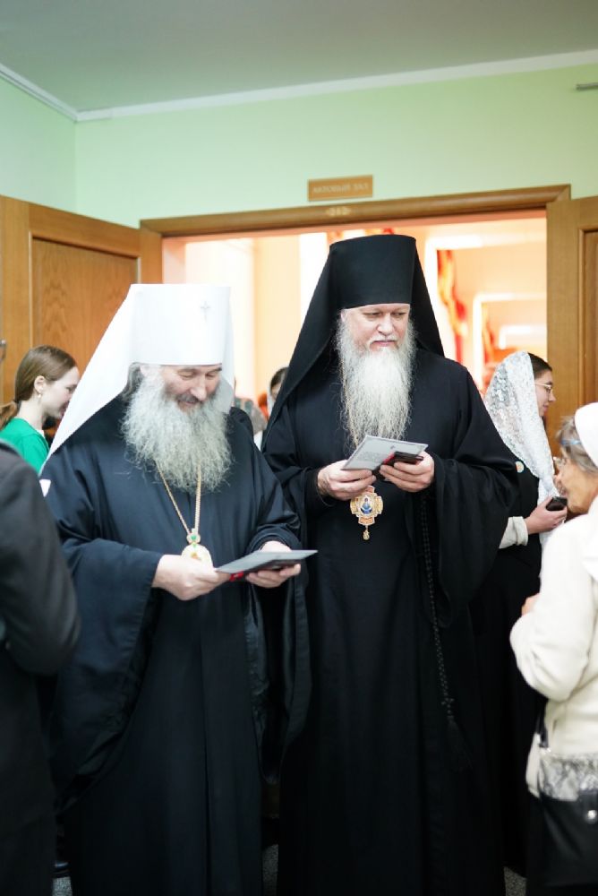 В актовом зале собрались священнослужители, прихожане, сестры милосердия, православные добровольцы. Почтить память Патриарха Алексия пришли митрополит Йошкар-Олинский и Марийский Иоанн и епископ Волжский и Сернурский Феофан.