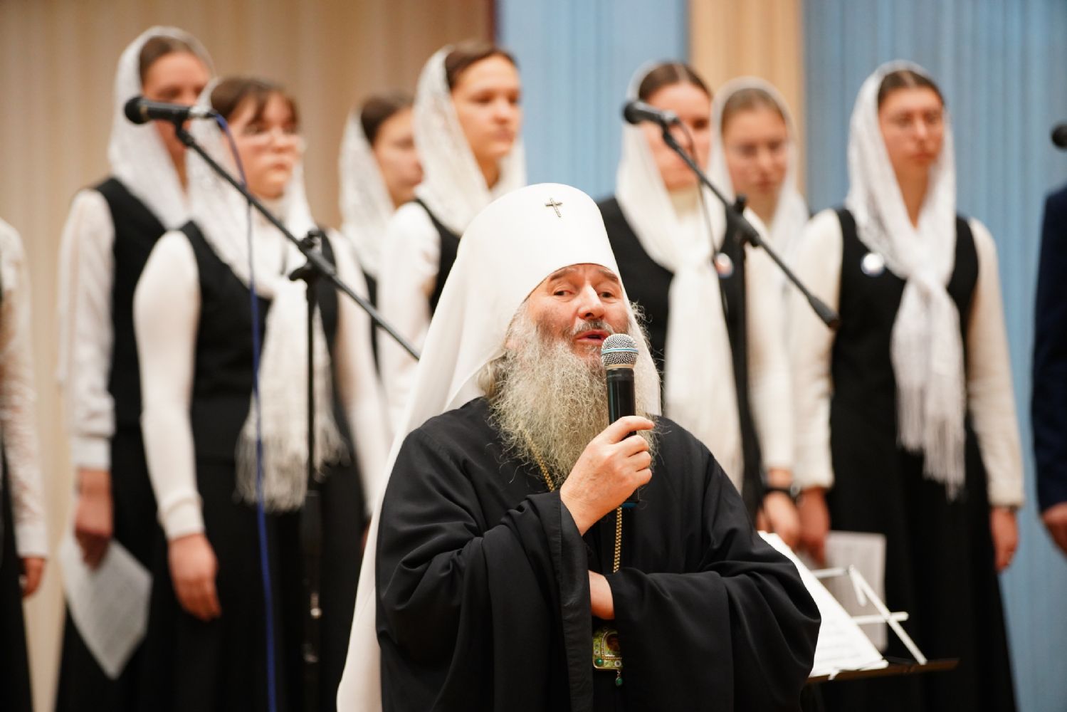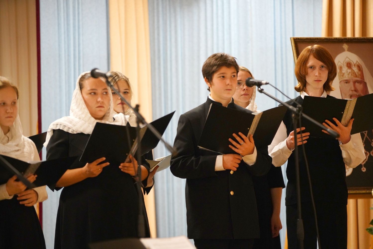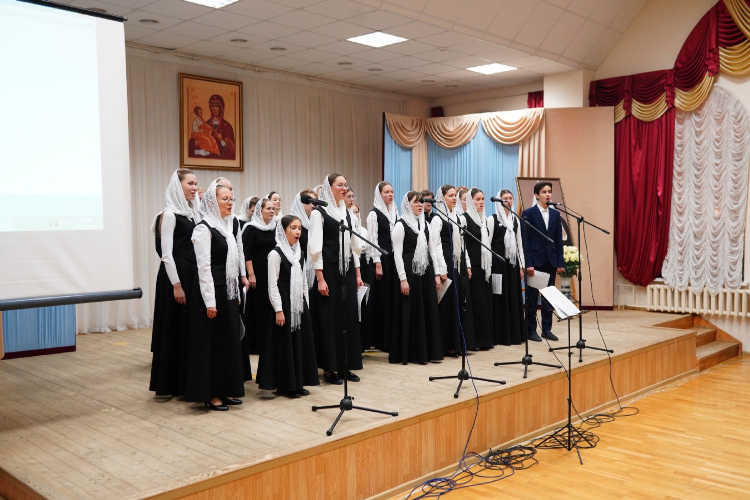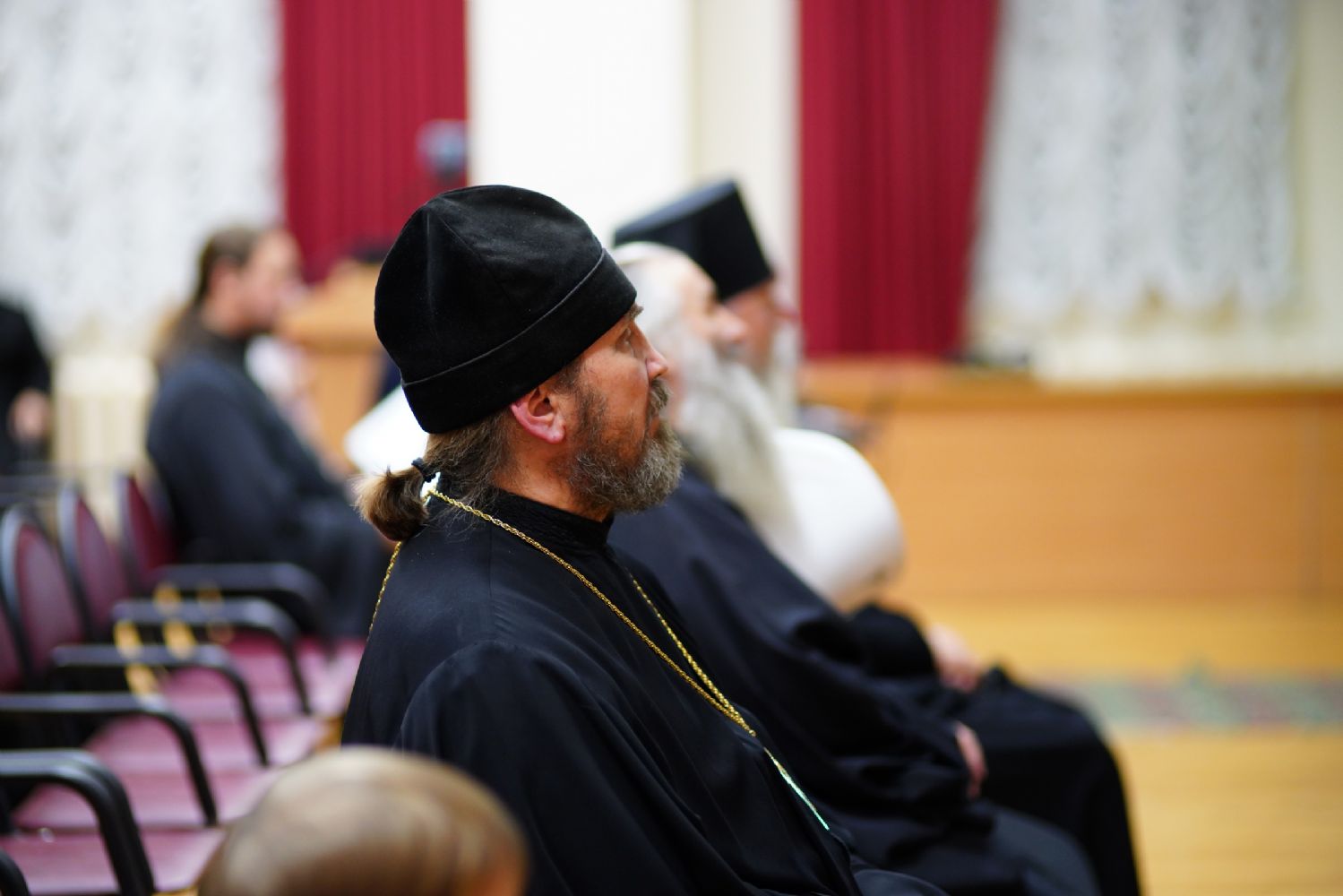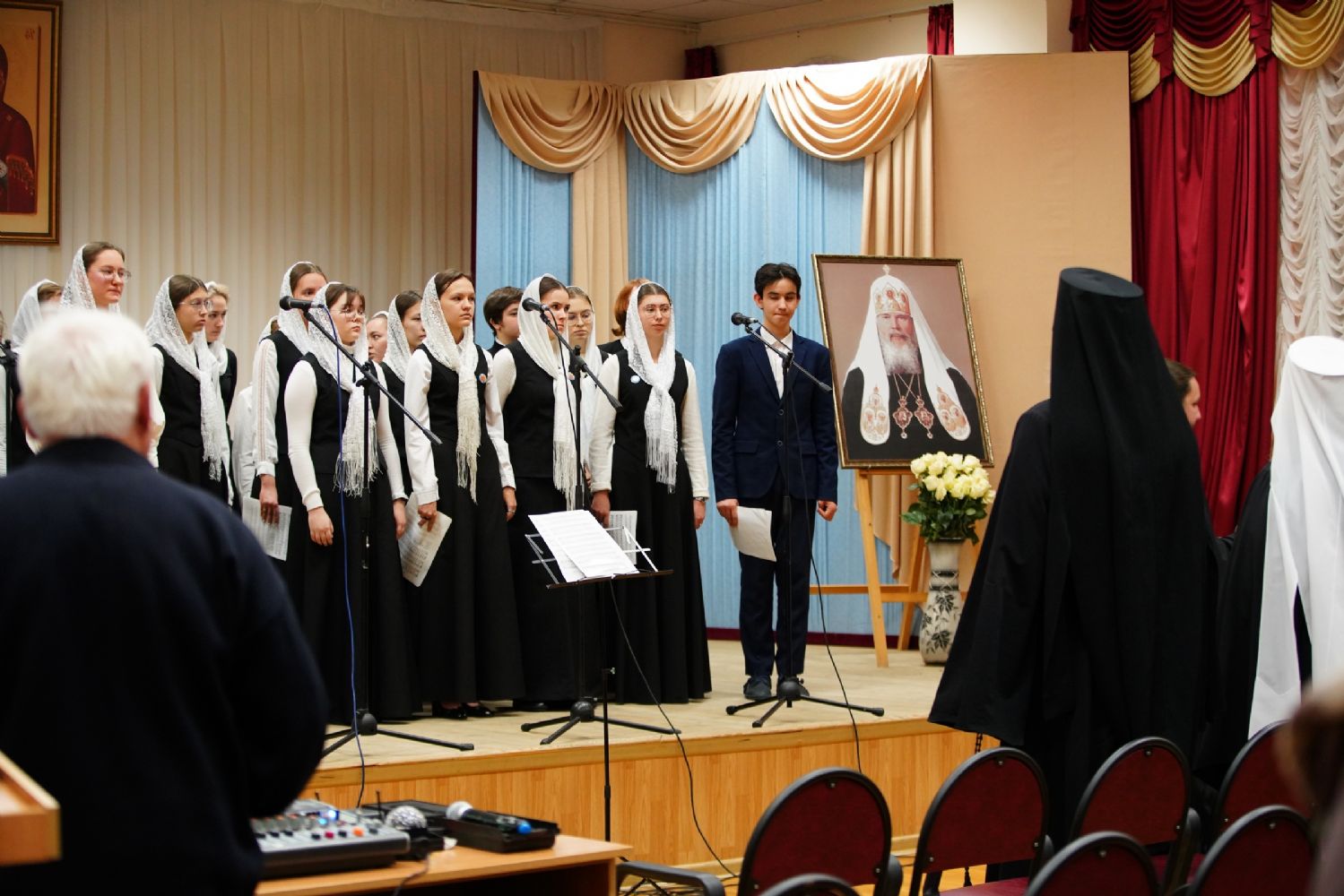 В актовом зале собрались священнослужители, прихожане, сестры милосердия, православные добровольцы. Почтить память Патриарха Алексия пришли митрополит Йошкар-Олинский и Марийский Иоанн и епископ Волжский и Сернурский Феофан.