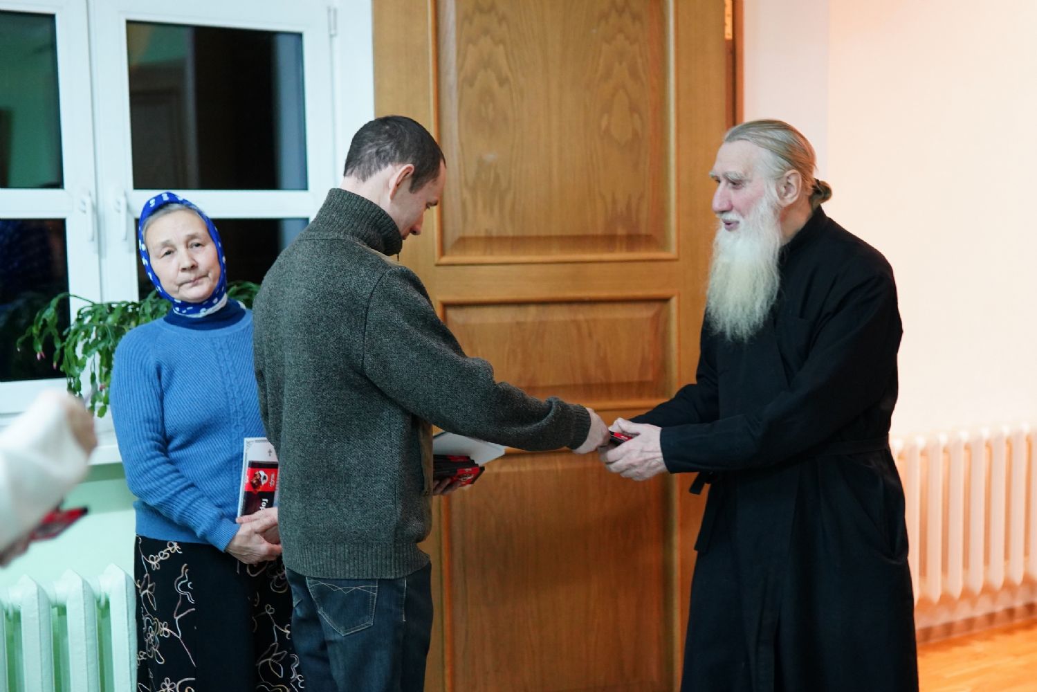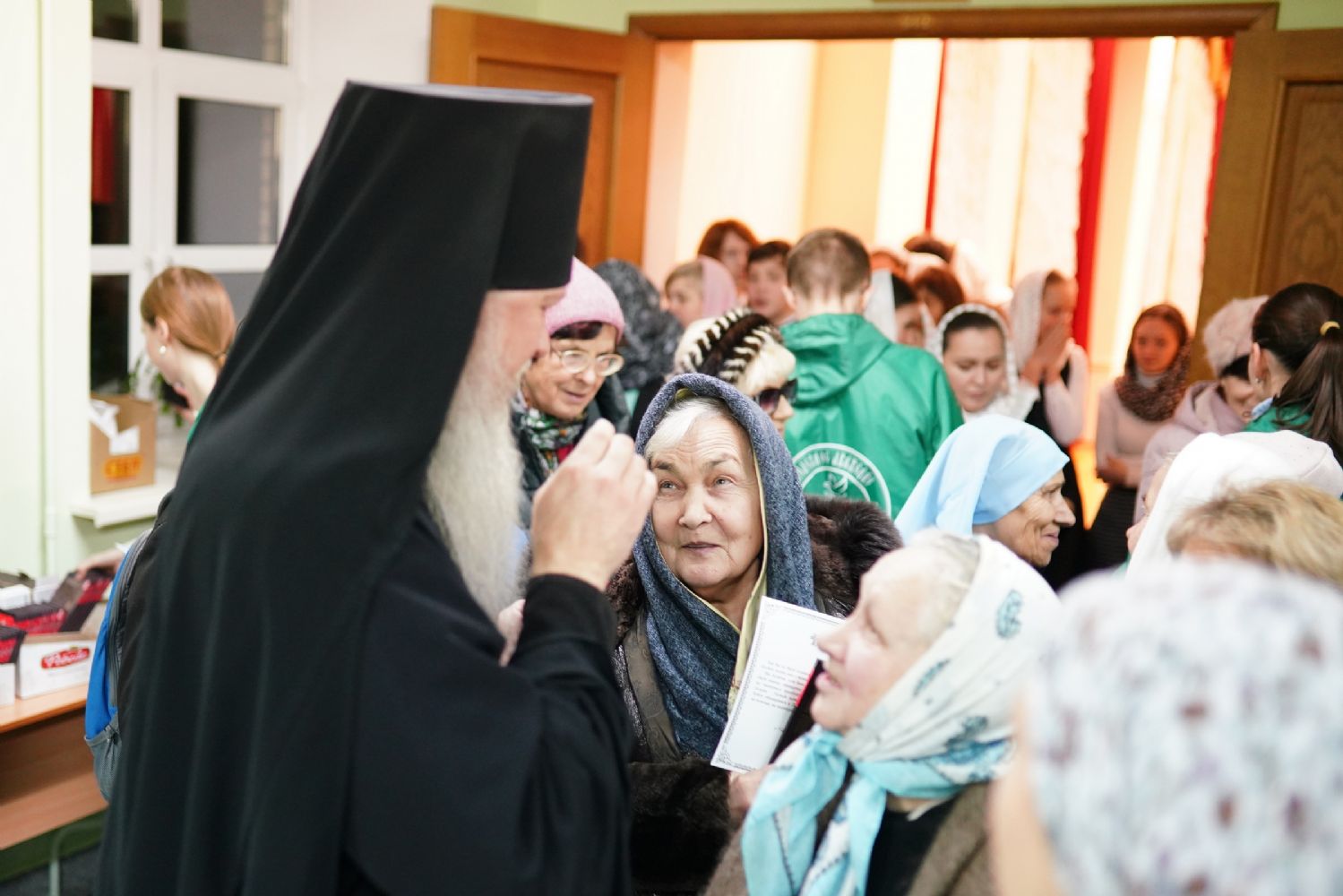 На молитвенную память всем раздали фотографии с выдержкой из проповеди Святейшего, а также шоколадки.