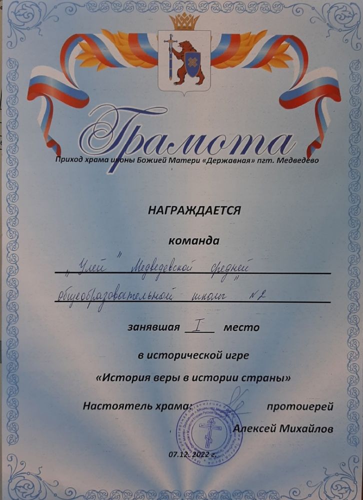 7 декабря в Медведевской средней общеобразовательной школе №2 прошла конкурсная викторина «История веры в истории страны» для учащихся школ поселка Медведево.