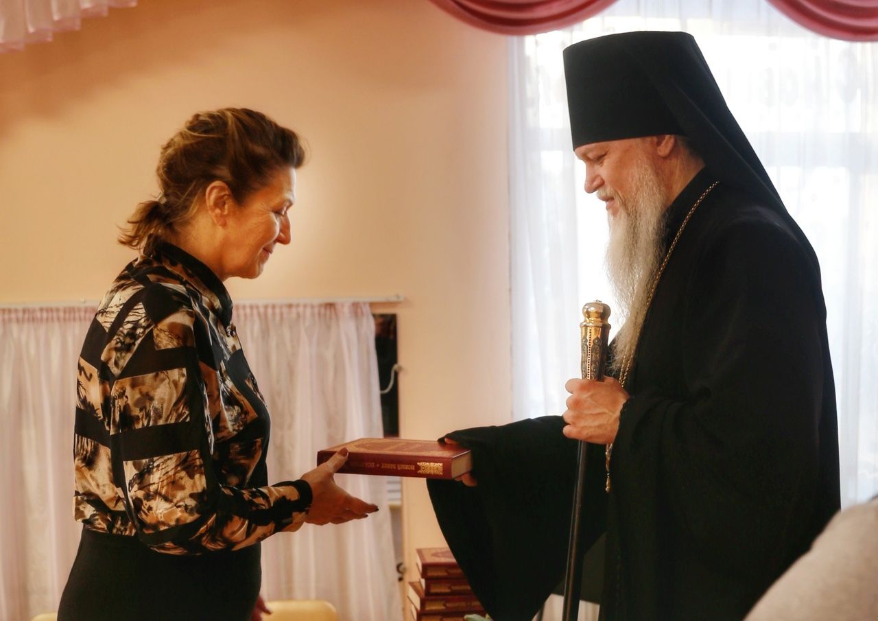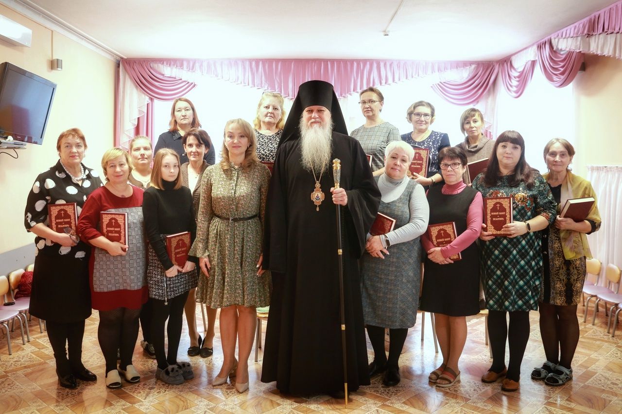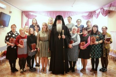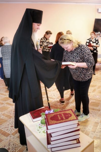 «Пусть православная вера сеет в душах людей бескорыстную доброту, сострадательную любовь, деятельную веру», - пожелал всем владыка и подарил каждому книгу «Новый Завет. Псалтирь», выразив надежду, что педагоги будут изучать её, так как она способствует духовно-нравственному становлению человека.