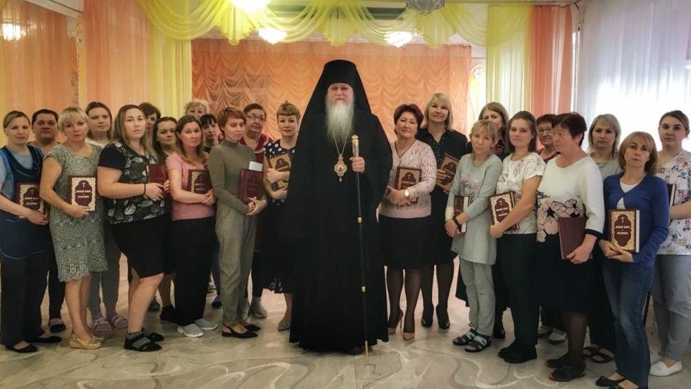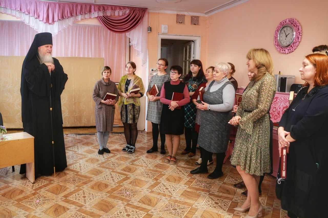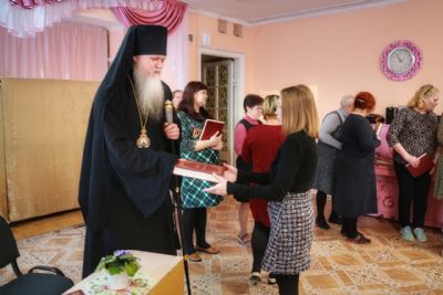 На следующий день, 8 декабря глава епархии встретился с сотрудниками городского детского сада №1. Обращаясь к ним, епископ Феофан подчеркнул: «Миссия любого педагога – нести свет Христов тем детям, которых доверяют вам их родители, чтобы и ваша лепта воспитания была вложена в то, чтобы впоследствии эти дети стали не только достойными гражданами нашего Отечества, но чтобы они стали святыми людьми Божиими. Призываю на всех вас Божие благословение и желаю, чтобы ваш труд всегда приносил духовную пользу тем, кто пришел к вам в качестве воспитанника. И из стен всех наших учебных заведений выходили не только образованные в земном смысле люди, но получали бы и духовное образование. Чтобы эти люди были достойными гражданами России – Святой Руси, трудились на ее благо, принося добрые плоды, чтобы впоследствии предстать пред Богом с добрым ответом».