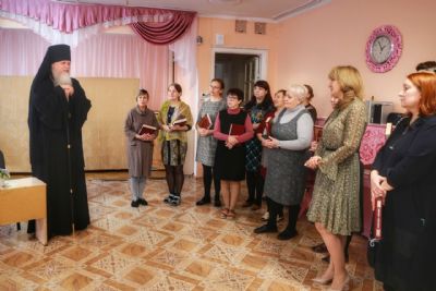 7 декабря состоялась встреча с сотрудниками детского сада № 29. Общаясь с собравшимися, владыка Феофан рассказал об истории написания Священного Писания и значимости его для людей всего мира. Архипастырь отметил, что христианин счастлив тогда, когда свободная воля человека совпадает с волей Творца.