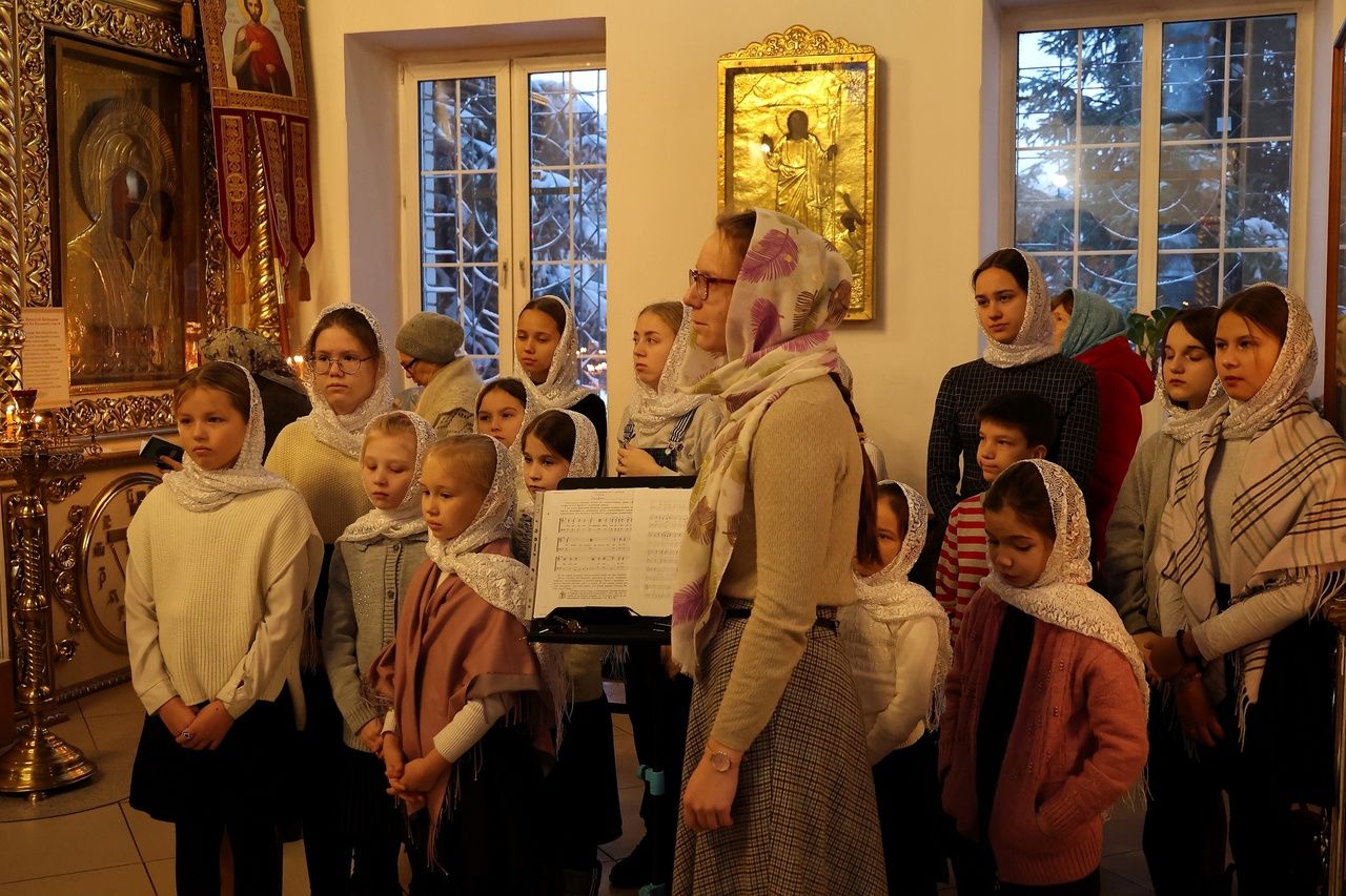 Его Преосвященству сослужили клирики собора иеромонах Авель Крашенинников, иерей Владимир Тимофеев, диакон Иоанн Захаров и диакон Герман Михайлов. Песнопения исполняли два хора: архиерейский (регент Любовь Михеева) и детско-юношеский (регент Мария Захарова).