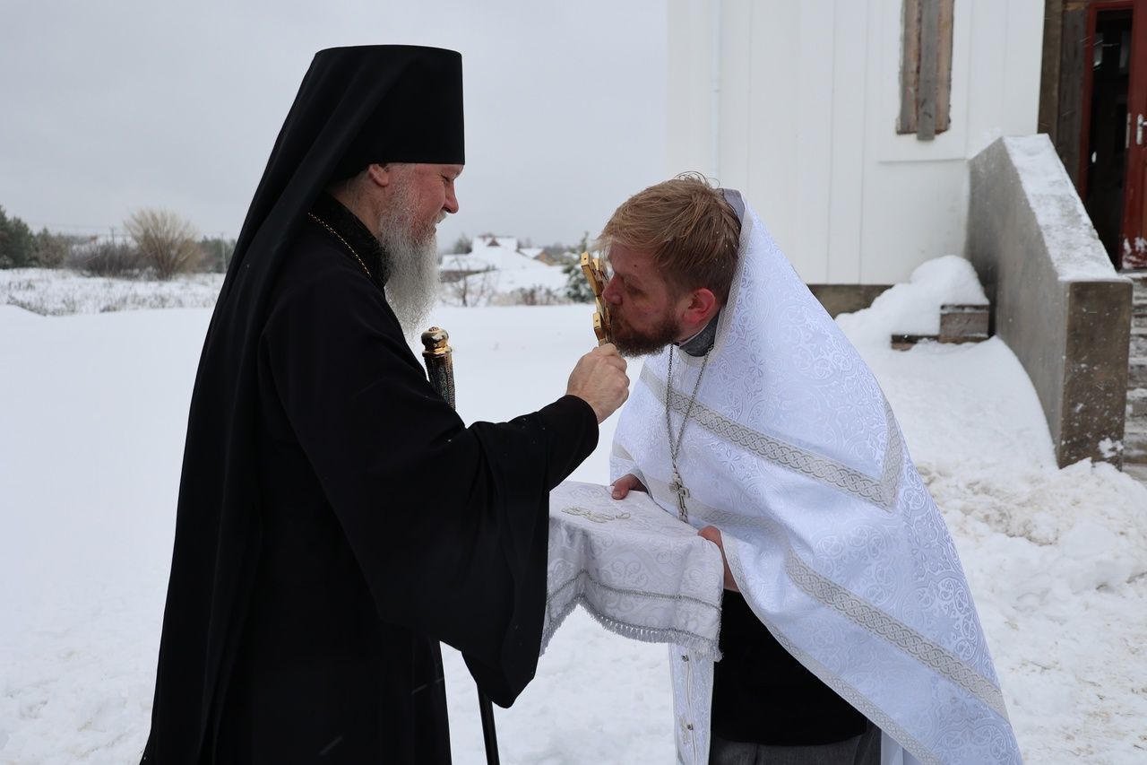 11 декабря епископ Волжский и Сернурский Феофан посетил строящийся храм в честь Пресвятой Троицы в микрорайоне Русская Луговая г. Волжска.