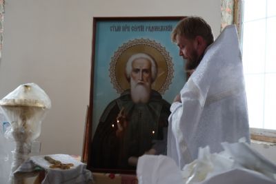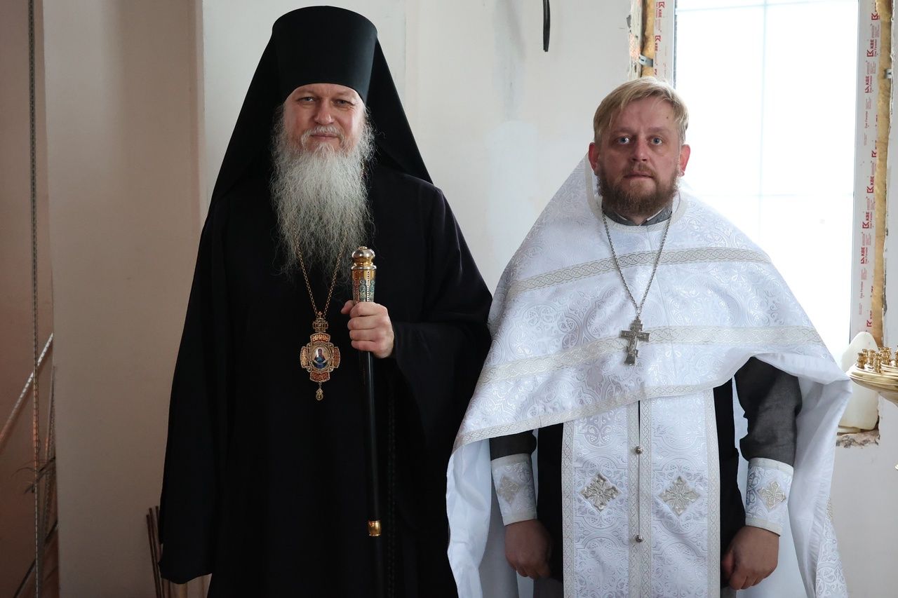 Иерей Димитрий Карпетченко, окормляющий приход, ознакомил владыку с ходом работ. Глава епархии передал в дар храму четыре иконы – Господа Вседержителя, образ Божией Матери «Казанская», преподобного Сергия Радонежского и святителя Николая Чудотворца, а также подсвечник.