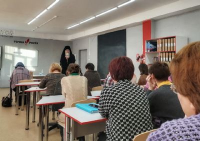 Далее состоялась беседа с педагогами школы. Архипастырь рассказал, как грех вошёл в мир, повредил Божье творение и принес горе и страдание человечеству. Владыка Феофан осветил также святоотеческий опыт воспитания и пожелал, чтобы в сердце у каждого был душевный мир, ибо это самое главное духовное сокровище в нашей жизни.