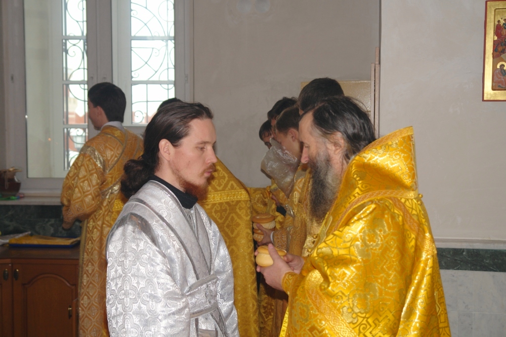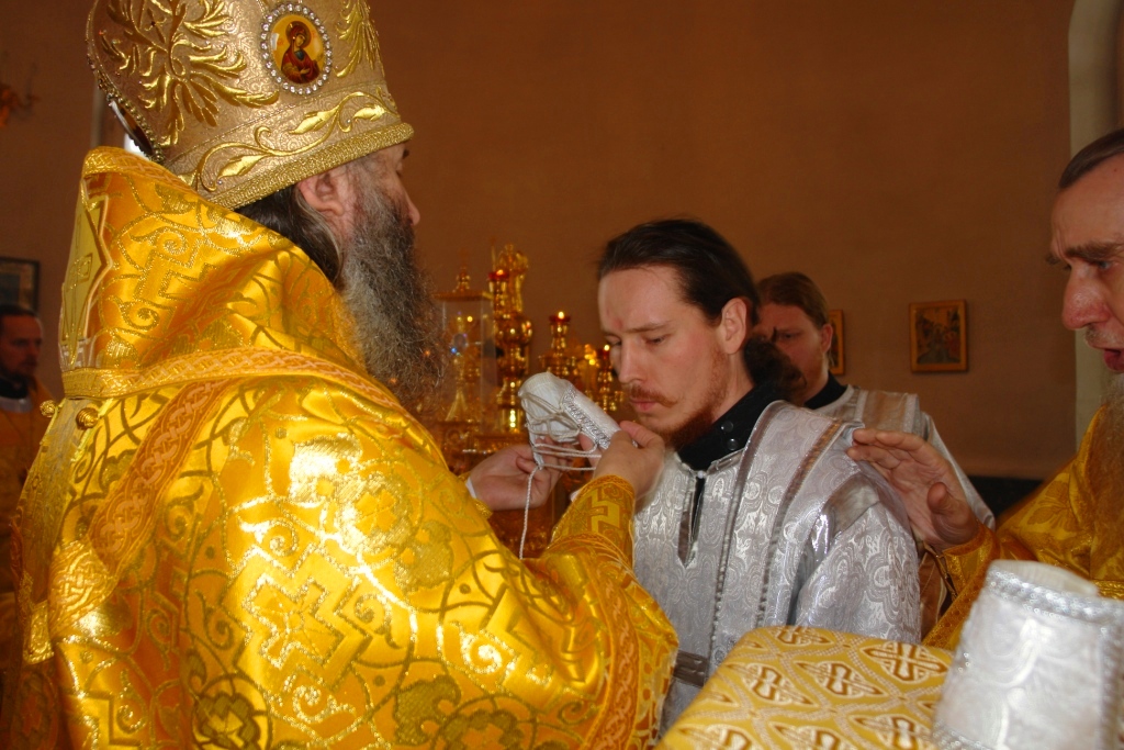 За Божественной службой была совершена хиротония в диаконскую степень священства Иванова Дмитрия Евгеньевича, проходившего ставленническую подготовку в храме Рождества Пресвятой Богородицы с. Семеновки. Свой диаконский сорокоуст диакон Дмитрий будет проходить в том же храме с. Семеновки.