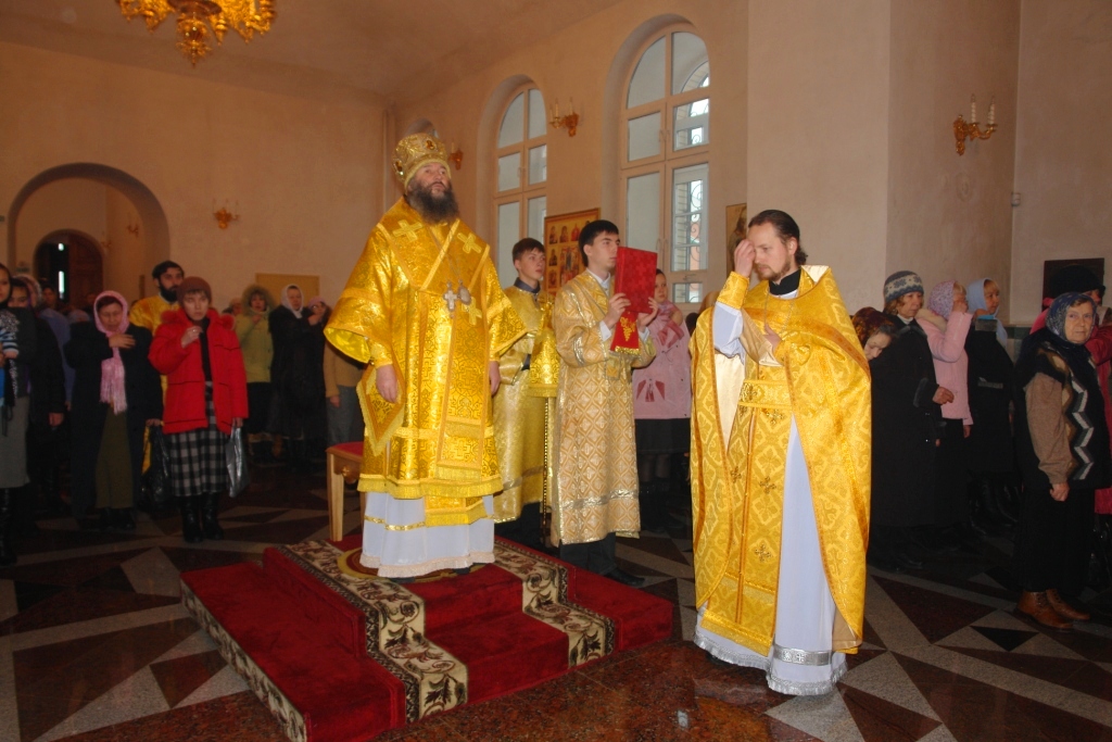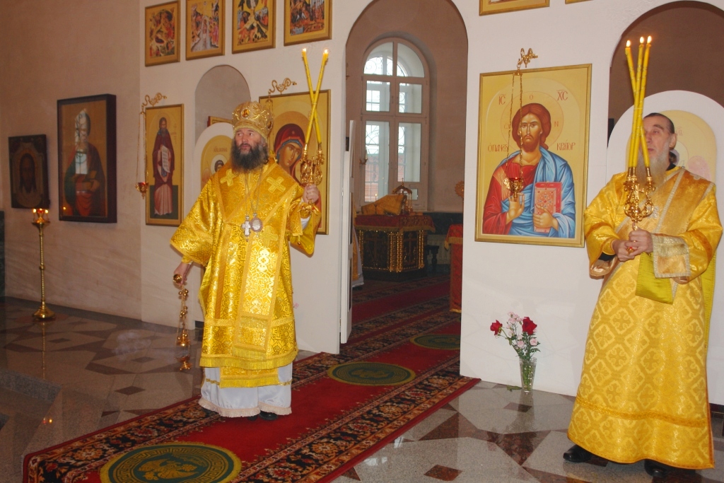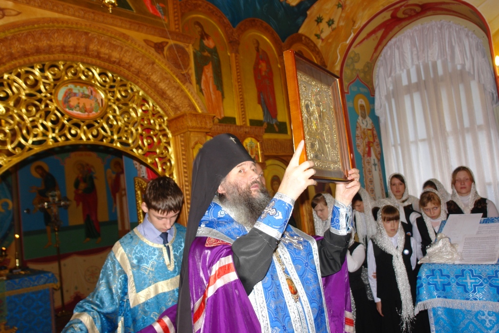 После службы в 14 часов в епархиальном храме «Троеручицы», по традиции в этот день, Владыкой был отслужен молебен с акафистом иконе Божией Матери Троеручица. Поздравить с праздником хор Благовест прибыли из г. Казани давние друзья – детский хор храма преподобного Сергия Радонежского. Они вместе с хором храма великомученицы Татианы г. Йошкар-Олы антифонно спели на распев акафист Божией Матери.