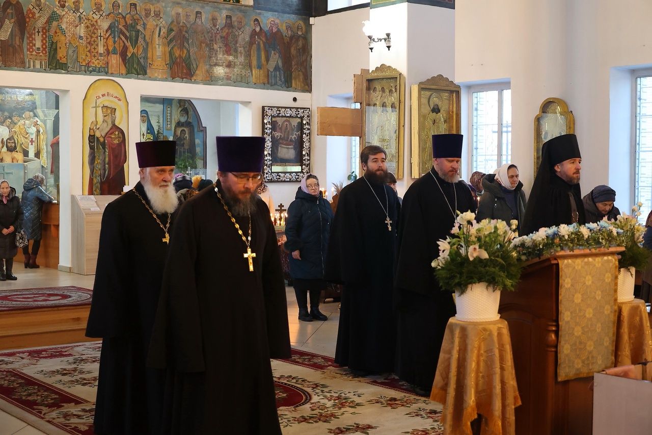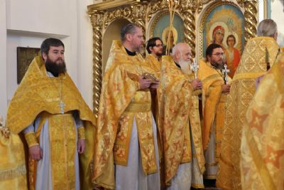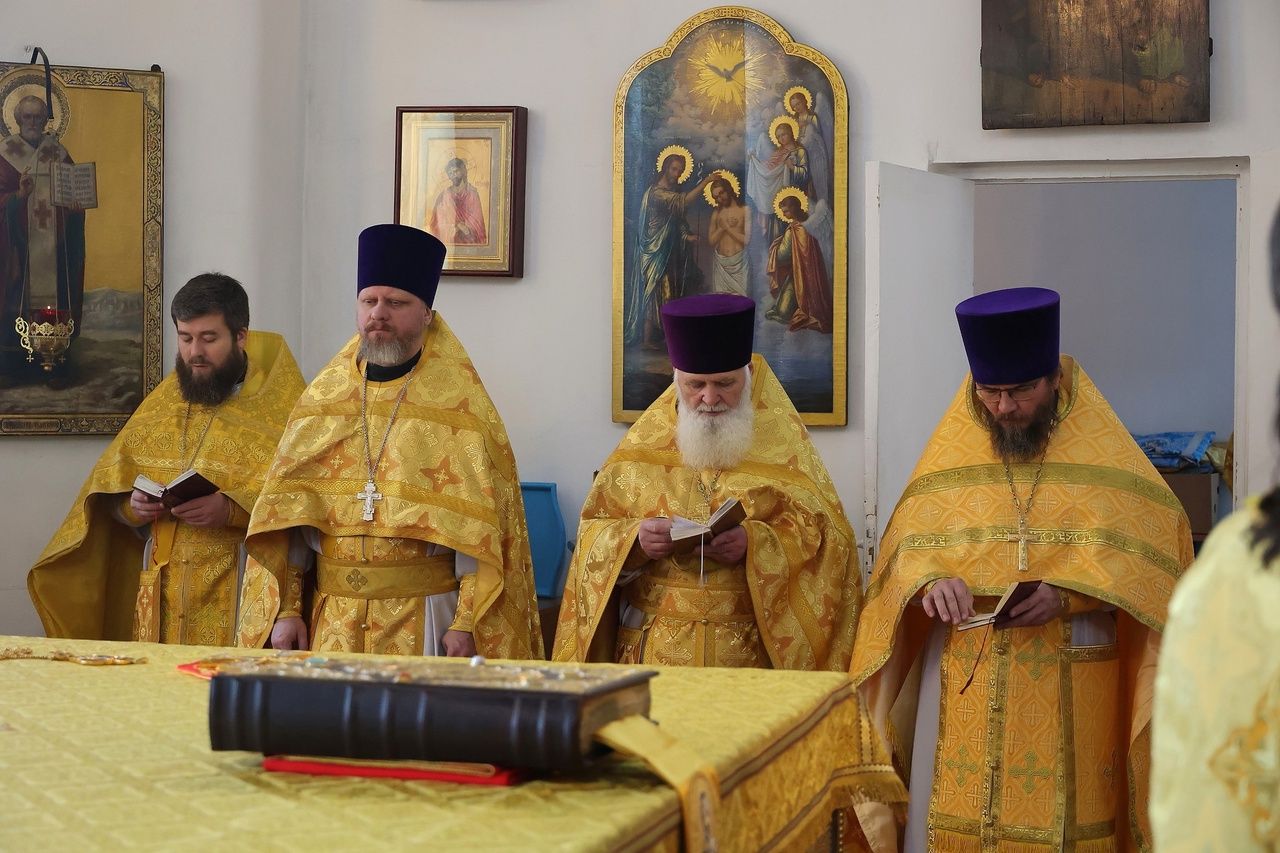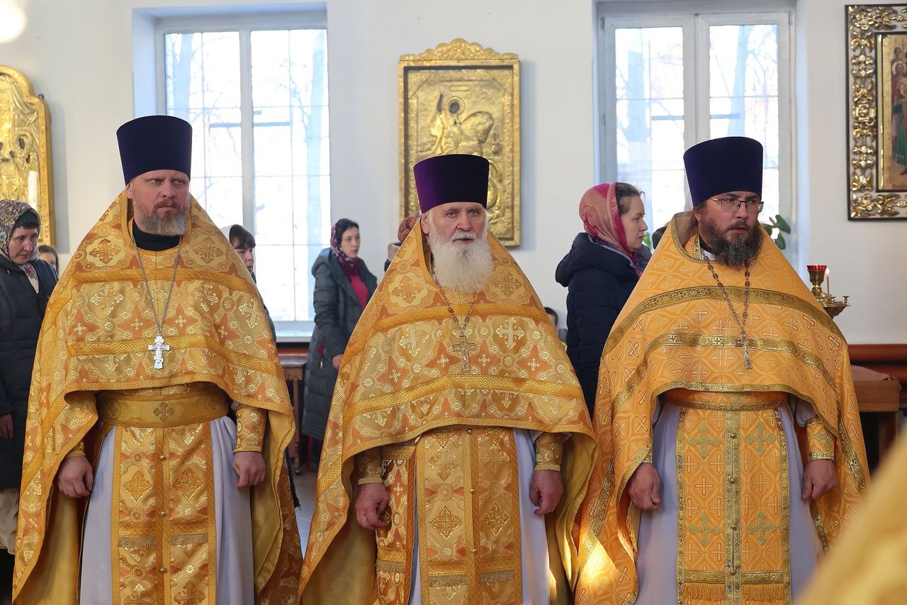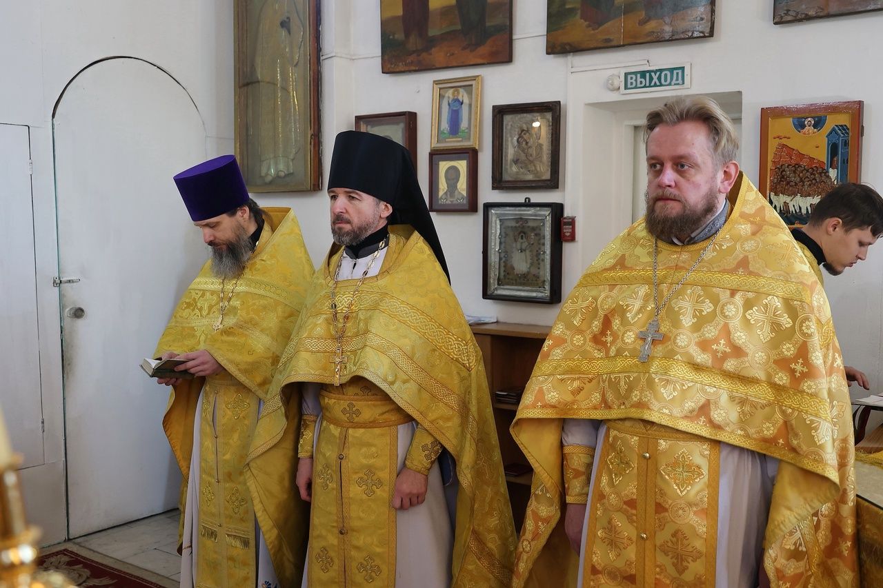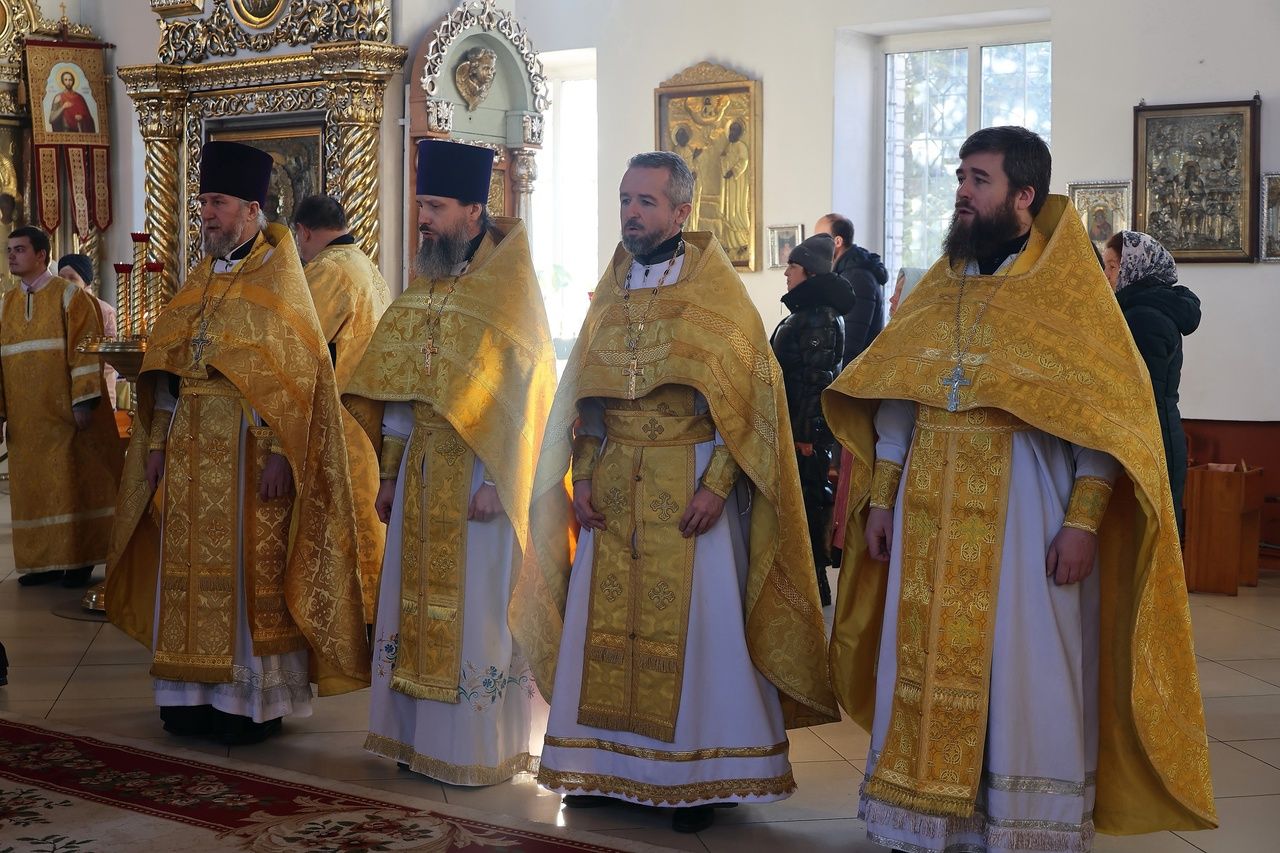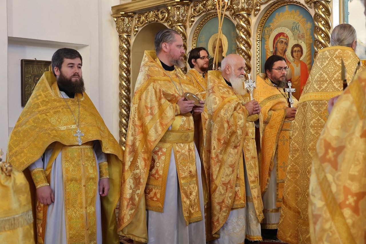 Архипастырю сослужили: настоятель храма преподобномученика Андрея Критского с. Елембаево протоиерей Сергий Бажанов, настоятель Богоявленского храма п. Морки протоиерей Леонтий Очетов, клирик храма святого праведного Иоанна Кронштадтского г. Волжска иерей Алексий Скрябин, клирик храма Новомучеников и исповедников Российских г. Волжска иерей Андрей Легостаев, клирики Никольского кафедрального собора иерей Владимир Тимофеев, иеромонах Авель Крашенинников, иерей Сергий Першаков, иерей Димитрий Карпетченко, диакон Иоанн Захаров, диакон Герман Михайлов. Песнопения исполнял архиерейский хор под управлением Любови Михеевой.