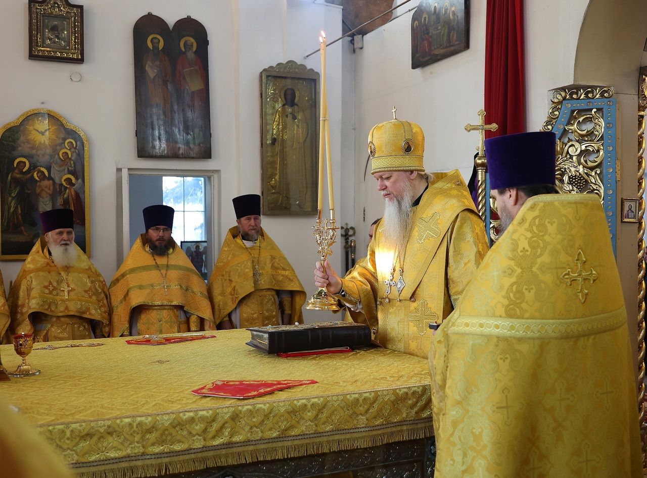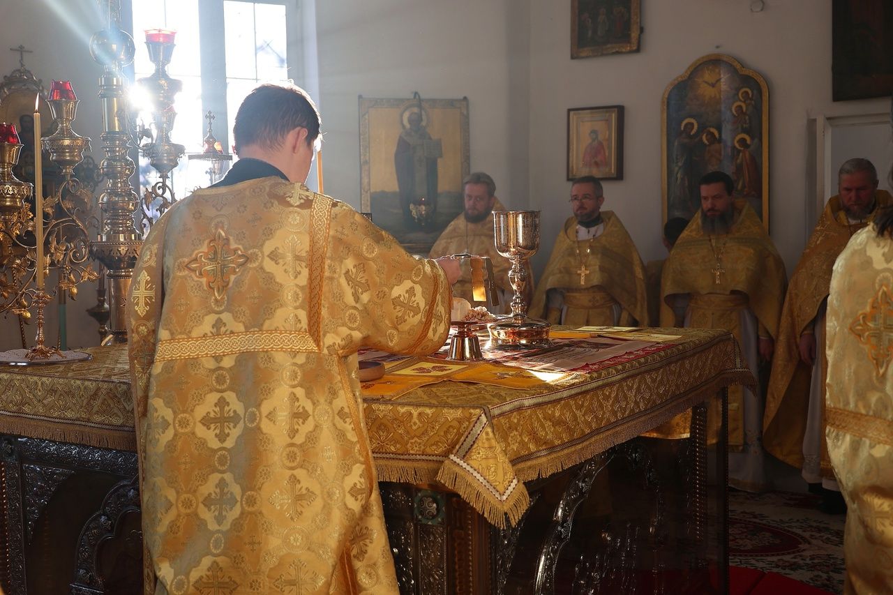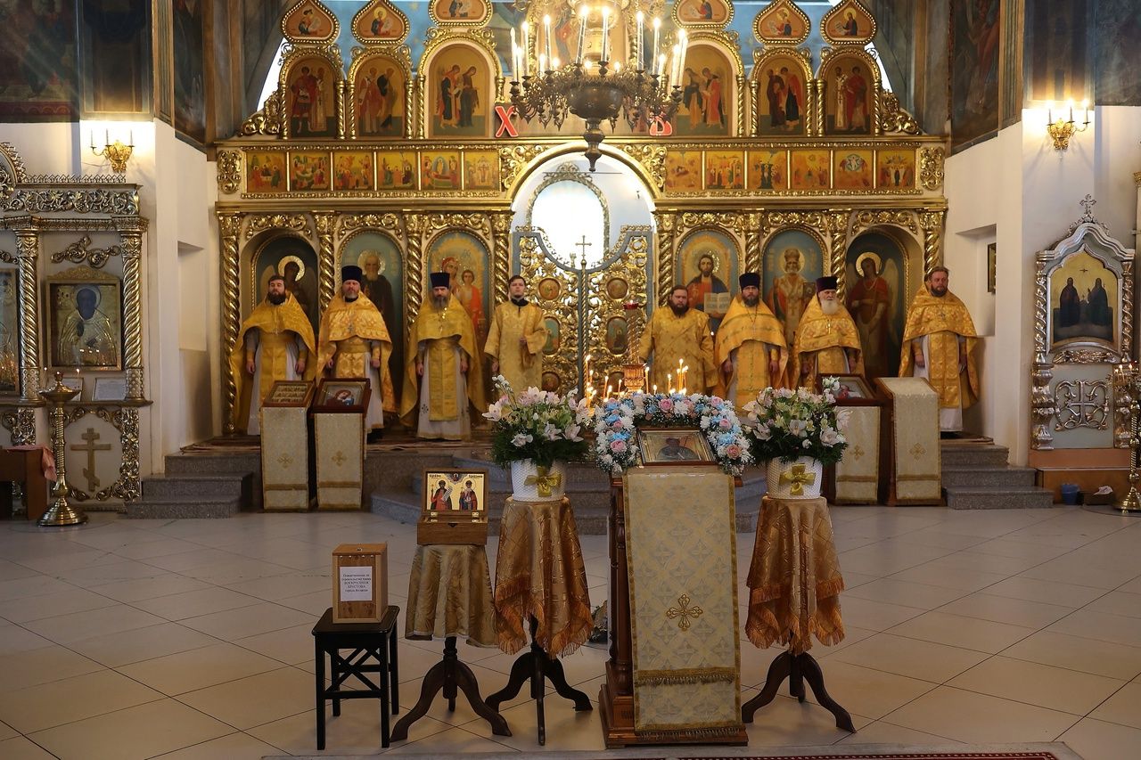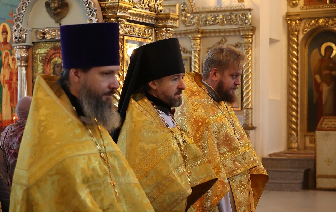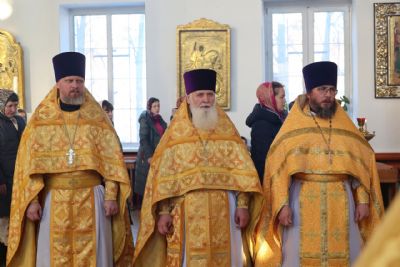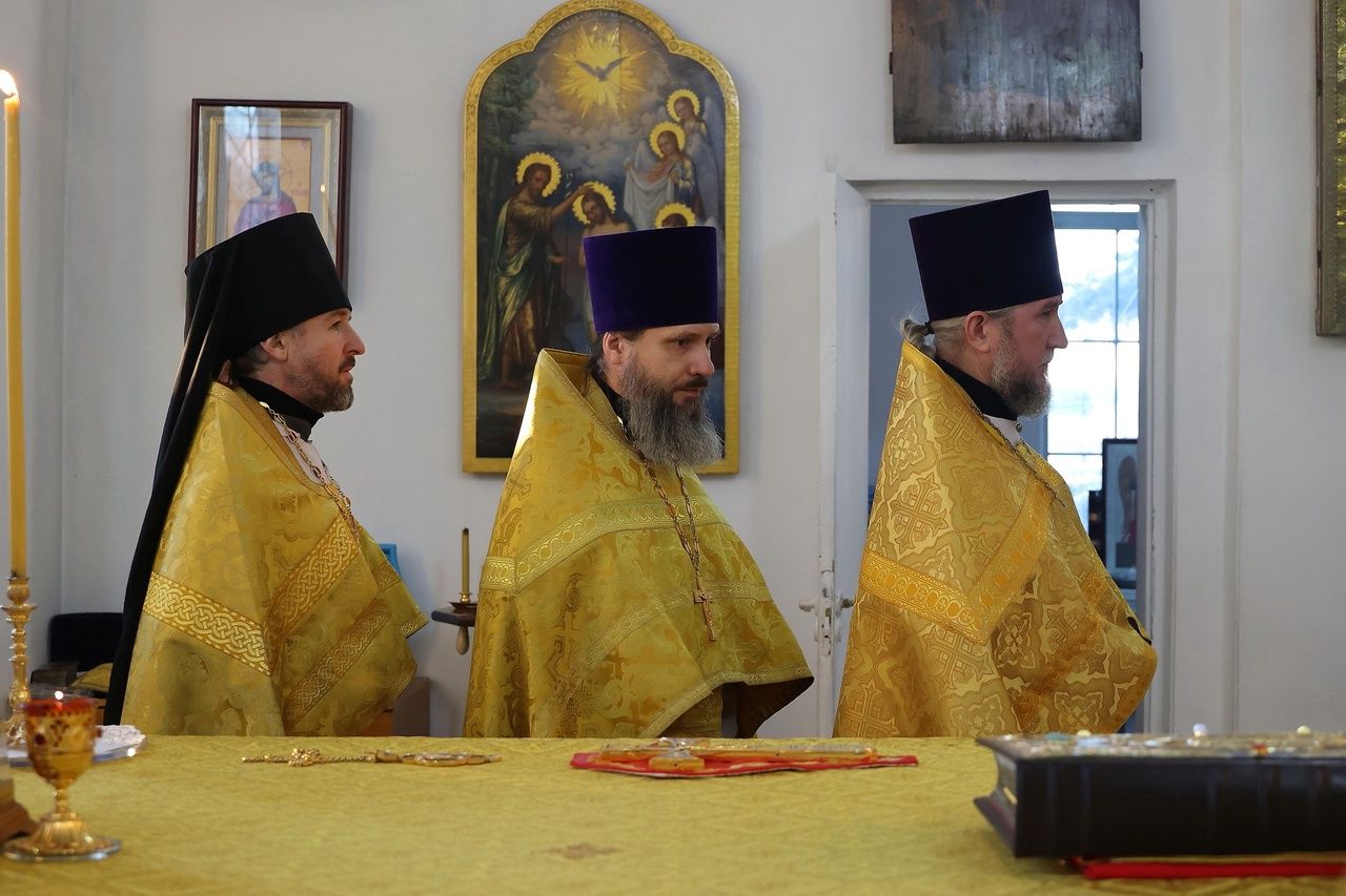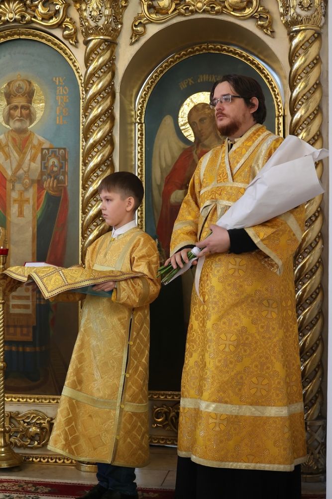 Архипастырю сослужили: настоятель храма преподобномученика Андрея Критского с. Елембаево протоиерей Сергий Бажанов, настоятель Богоявленского храма п. Морки протоиерей Леонтий Очетов, клирик храма святого праведного Иоанна Кронштадтского г. Волжска иерей Алексий Скрябин, клирик храма Новомучеников и исповедников Российских г. Волжска иерей Андрей Легостаев, клирики Никольского кафедрального собора иерей Владимир Тимофеев, иеромонах Авель Крашенинников, иерей Сергий Першаков, иерей Димитрий Карпетченко, диакон Иоанн Захаров, диакон Герман Михайлов. Песнопения исполнял архиерейский хор под управлением Любови Михеевой.