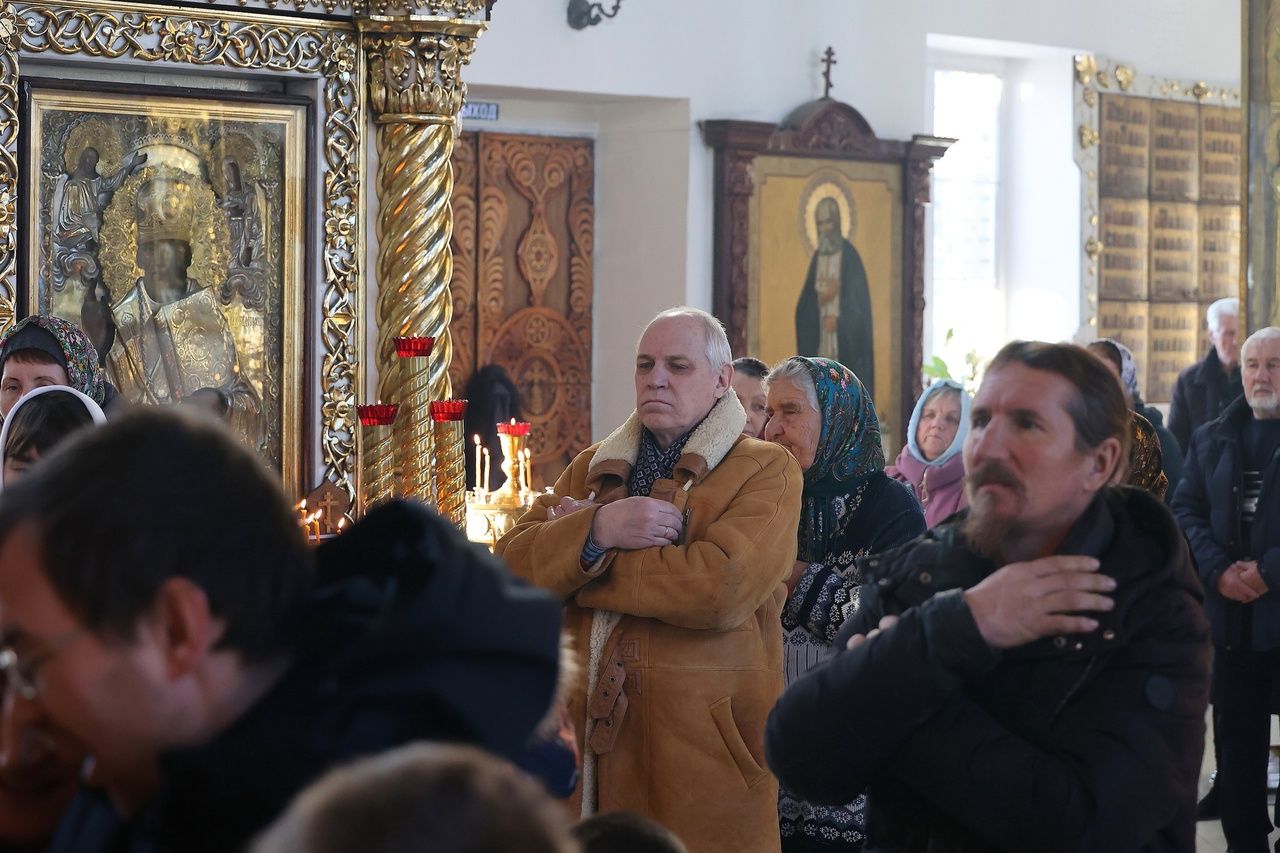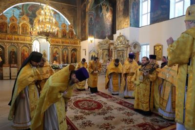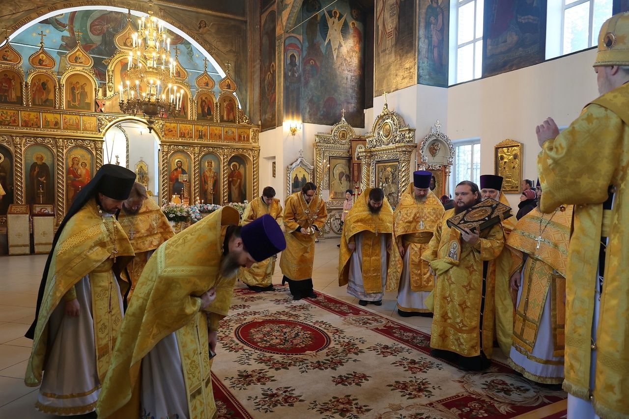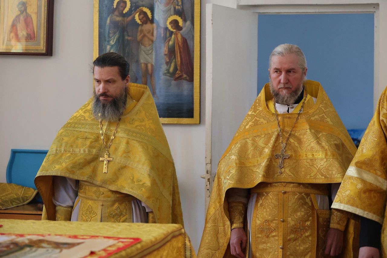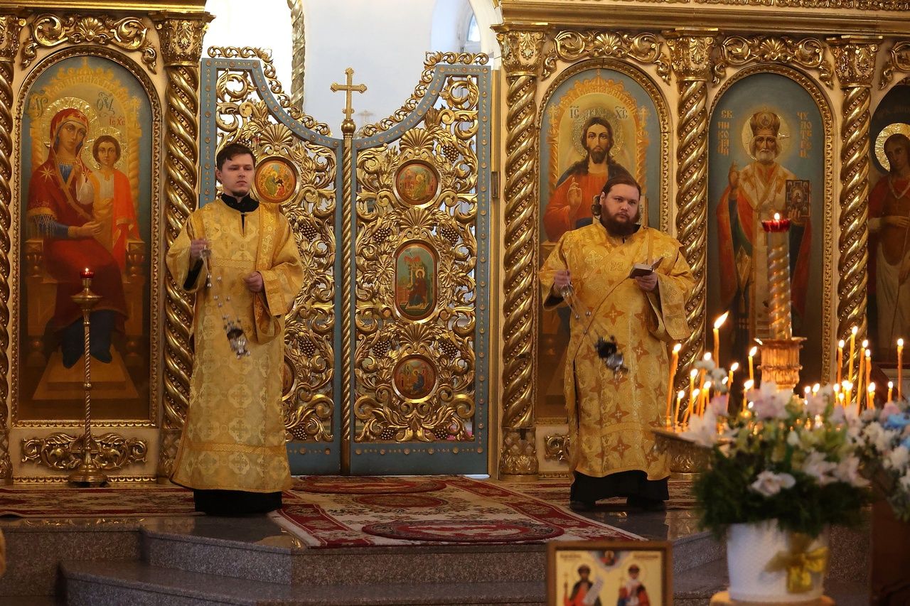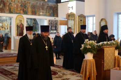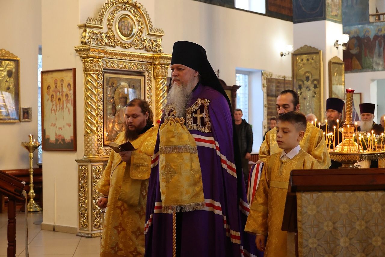 Архипастырю сослужили: настоятель храма преподобномученика Андрея Критского с. Елембаево протоиерей Сергий Бажанов, настоятель Богоявленского храма п. Морки протоиерей Леонтий Очетов, клирик храма святого праведного Иоанна Кронштадтского г. Волжска иерей Алексий Скрябин, клирик храма Новомучеников и исповедников Российских г. Волжска иерей Андрей Легостаев, клирики Никольского кафедрального собора иерей Владимир Тимофеев, иеромонах Авель Крашенинников, иерей Сергий Першаков, иерей Димитрий Карпетченко, диакон Иоанн Захаров, диакон Герман Михайлов. Песнопения исполнял архиерейский хор под управлением Любови Михеевой.