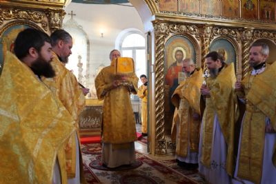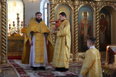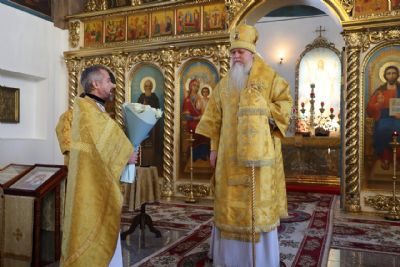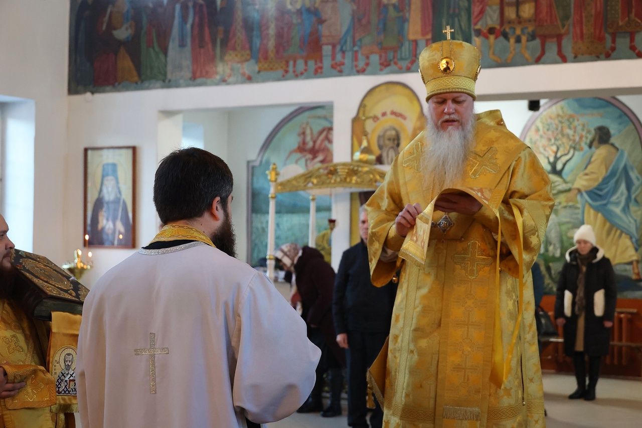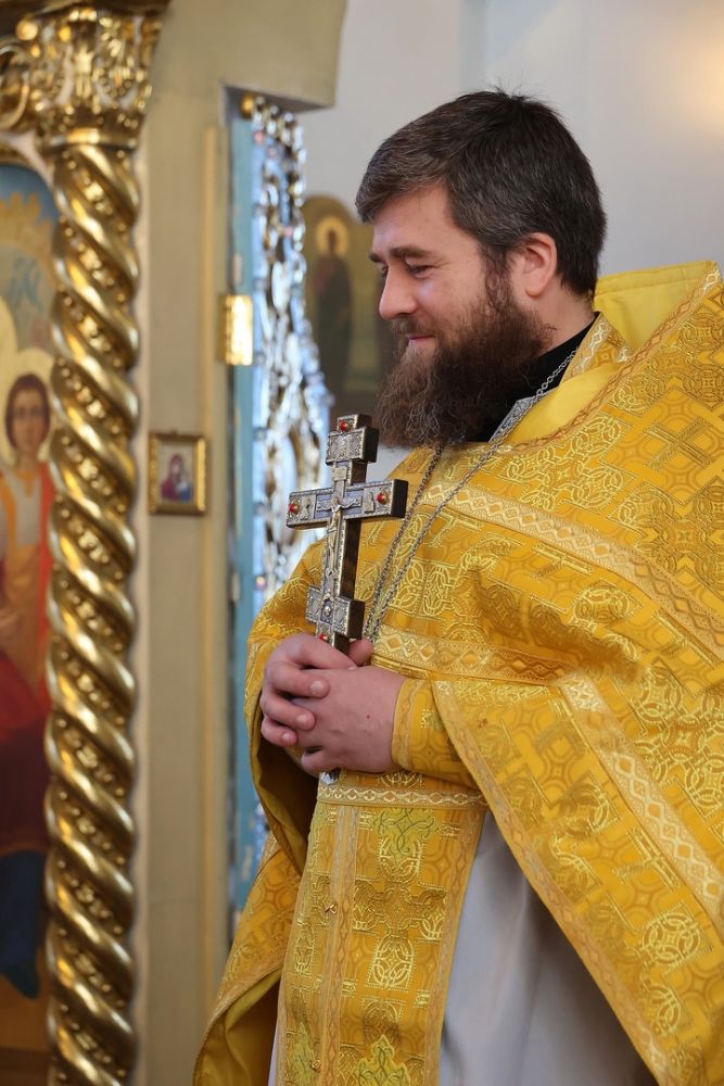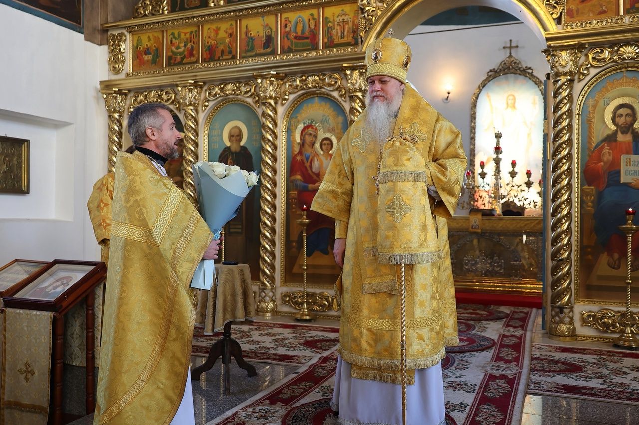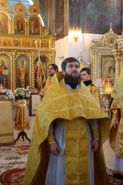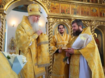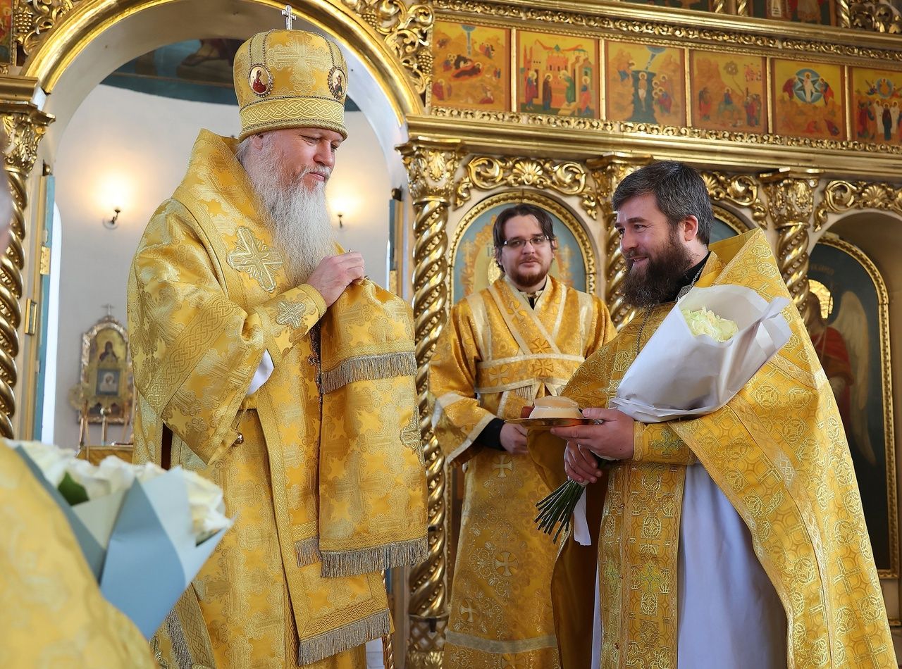 За Литургией епископ Феофан удостоил иерея Андрея Легостаева права ношения набедренника.