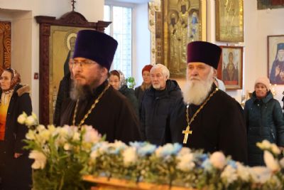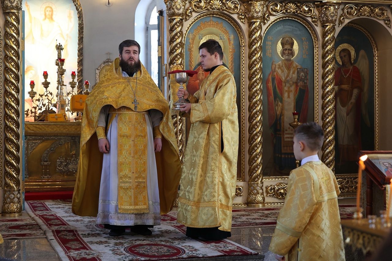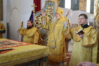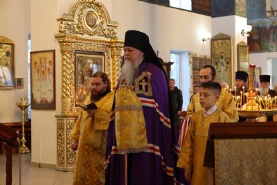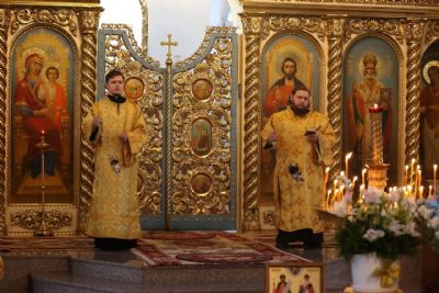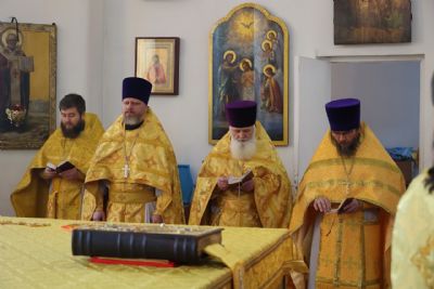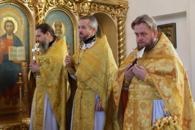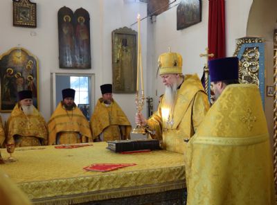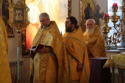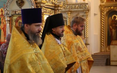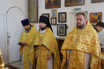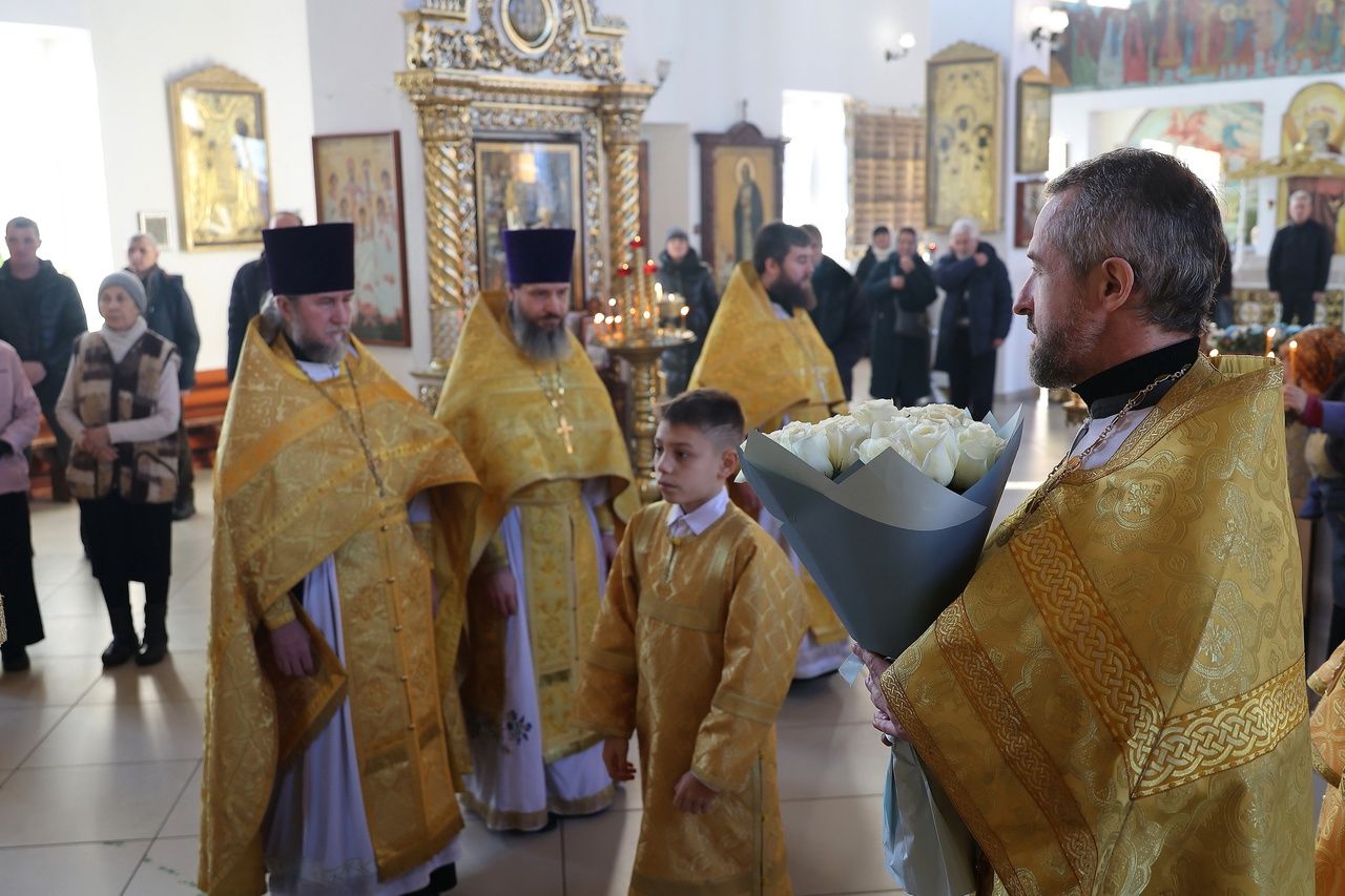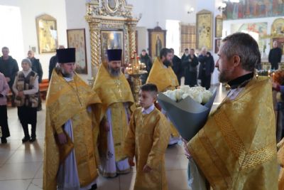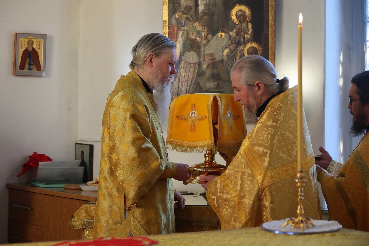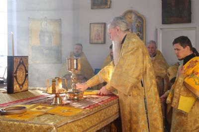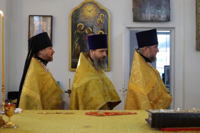 За Литургией епископ Феофан удостоил иерея Андрея Легостаева права ношения набедренника.